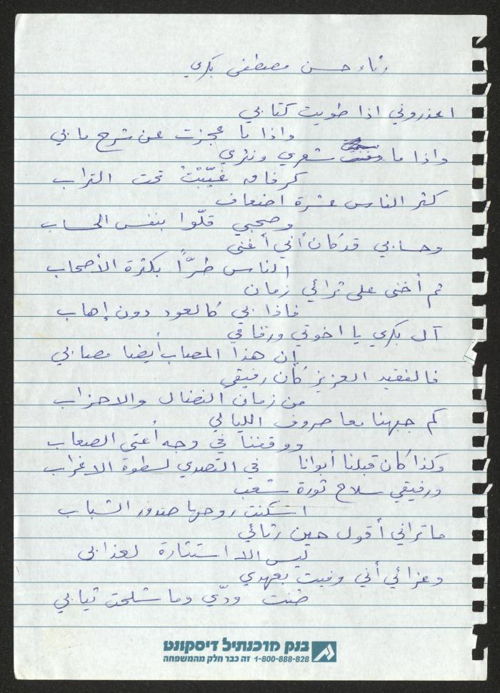 "رثاء حسن مصطفى بكري"، لحنا إبراهيم