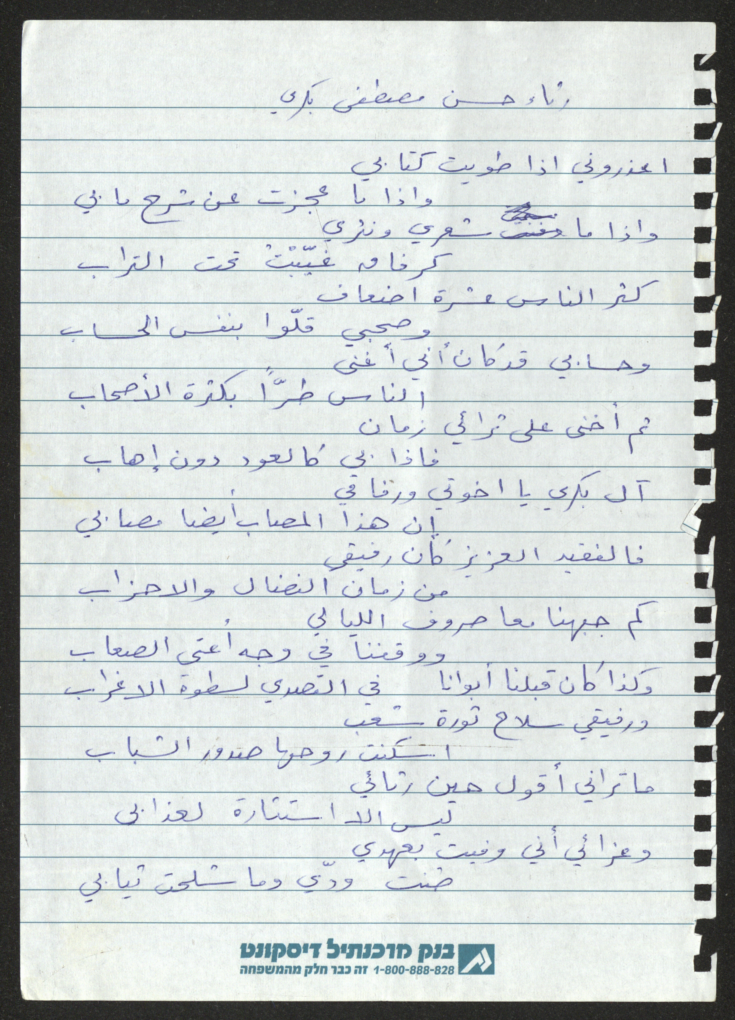 توثق هذه المادة المكتوبة بخط اليد رثاء لحنا إبراهيم كتبها لحسن مصطفى بكري والتي بدأها "اعذروني اذا طويت كتابي واذا ما عجزت عن شرح ما بي".