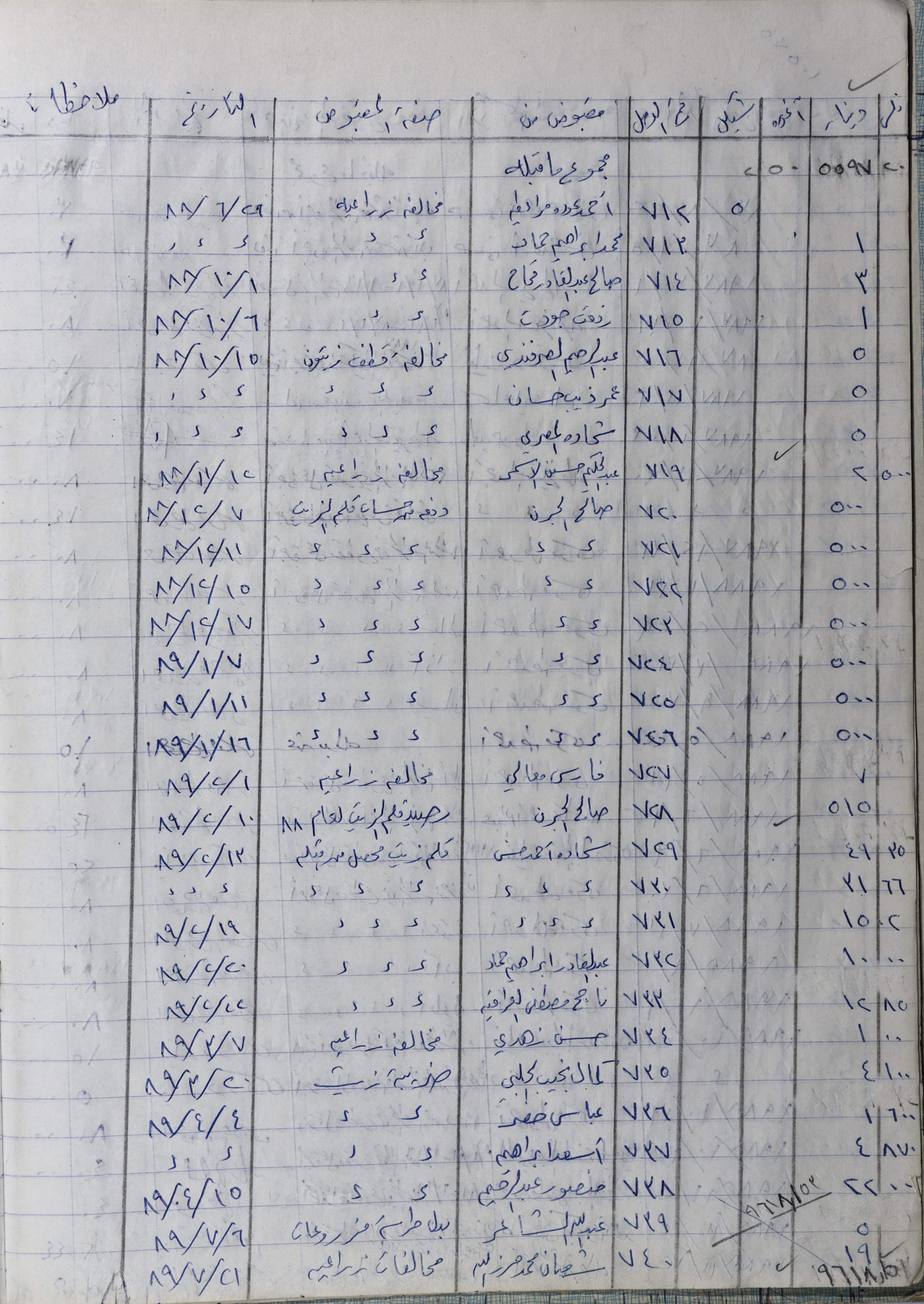 The Record of the Agricultural Committee's Receipts-Salfit 1988 -1989