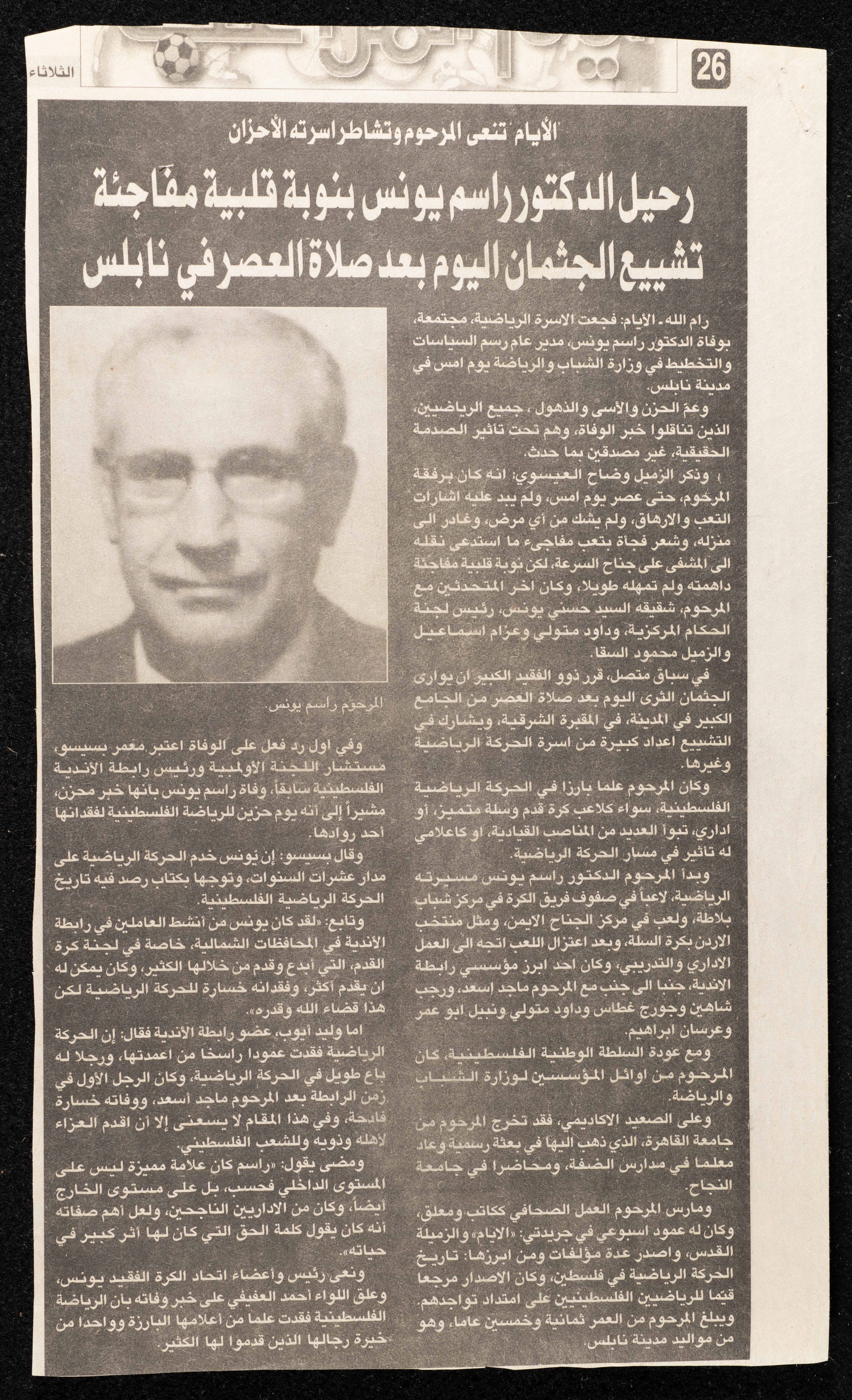 نعي راسم يونس في جريدة الأيام، تشرين الثاني 2006