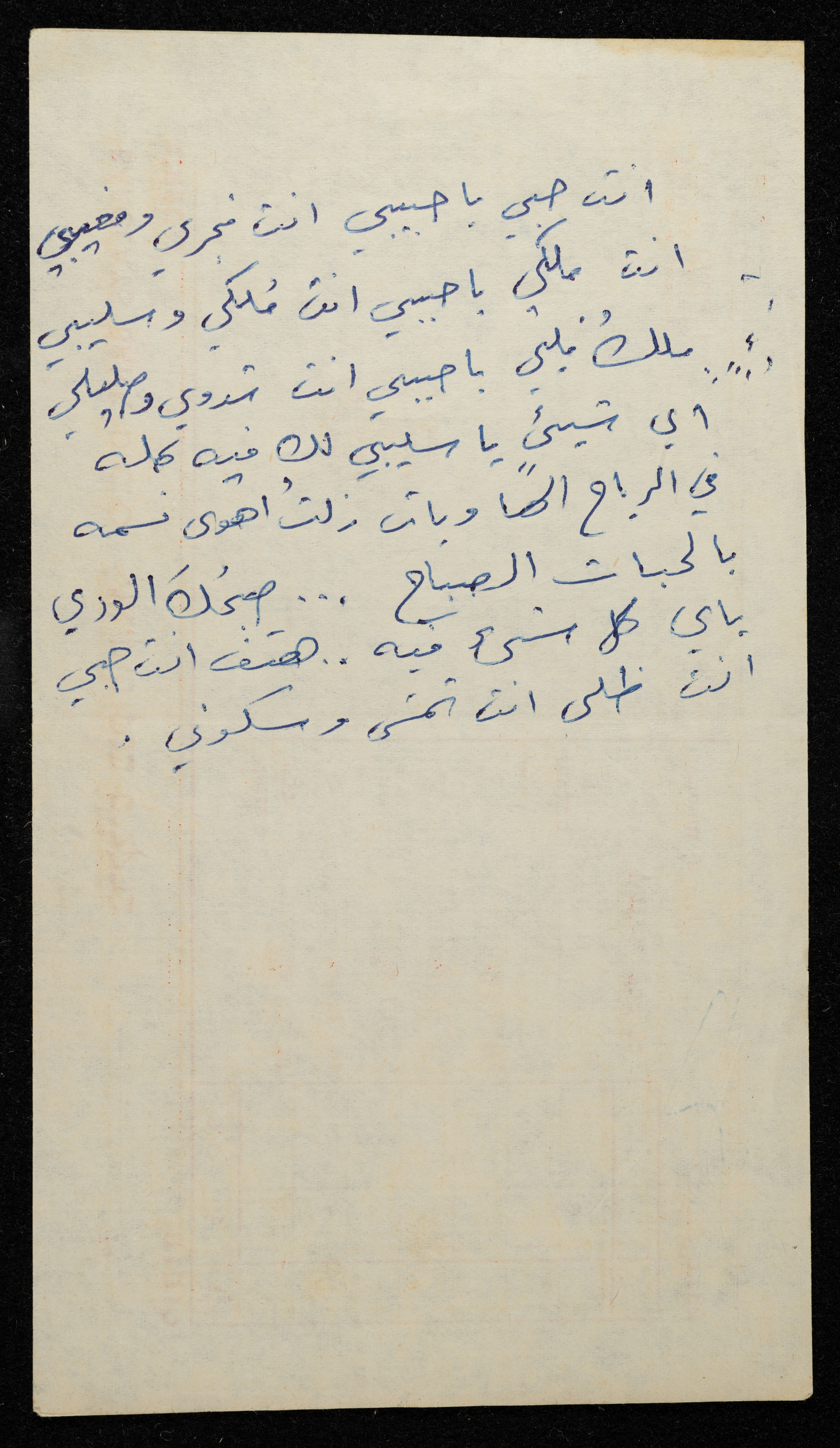 This document shows a draft of a poem written by Walid Fahoum on the back of a banknote during the 1970s.