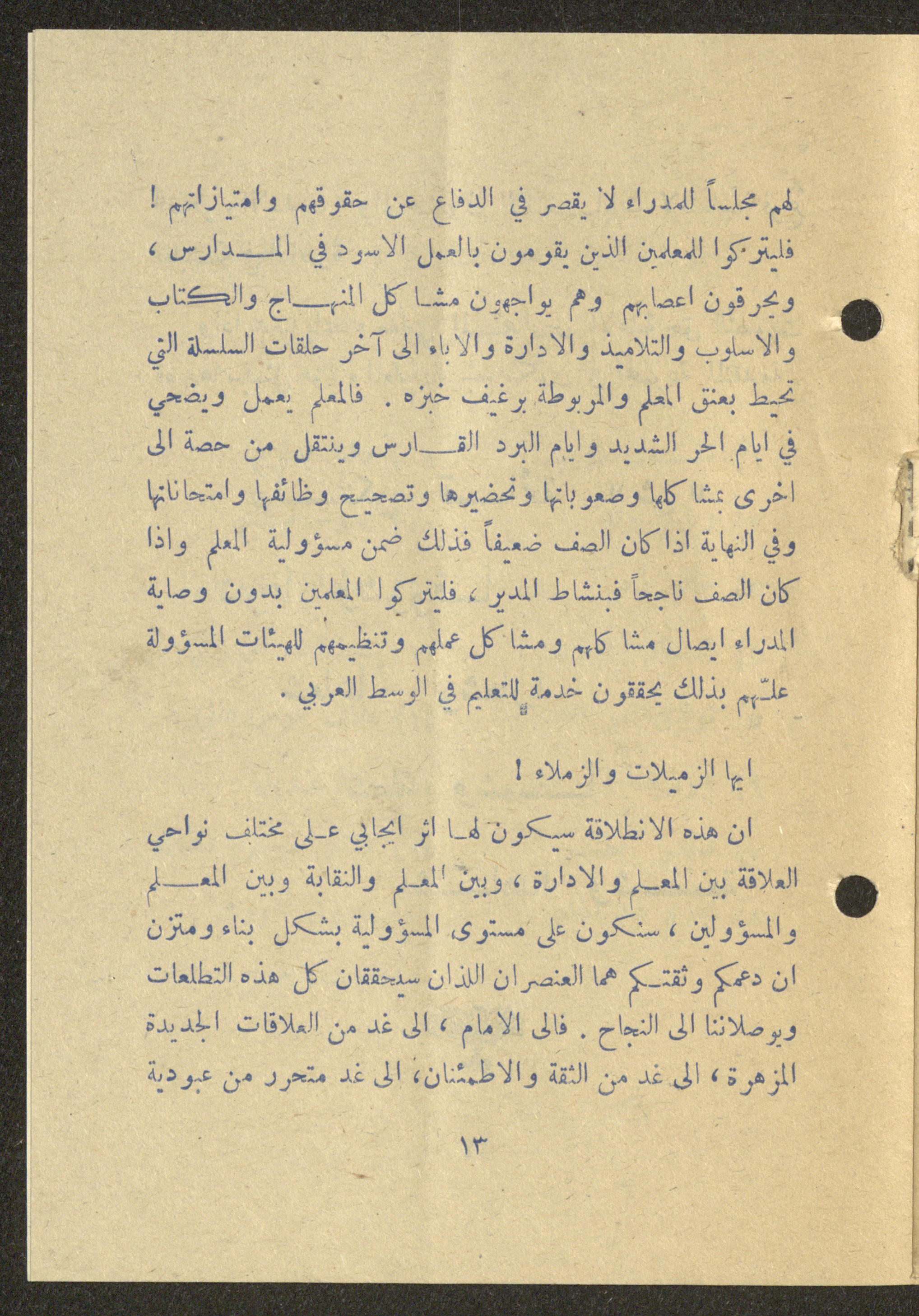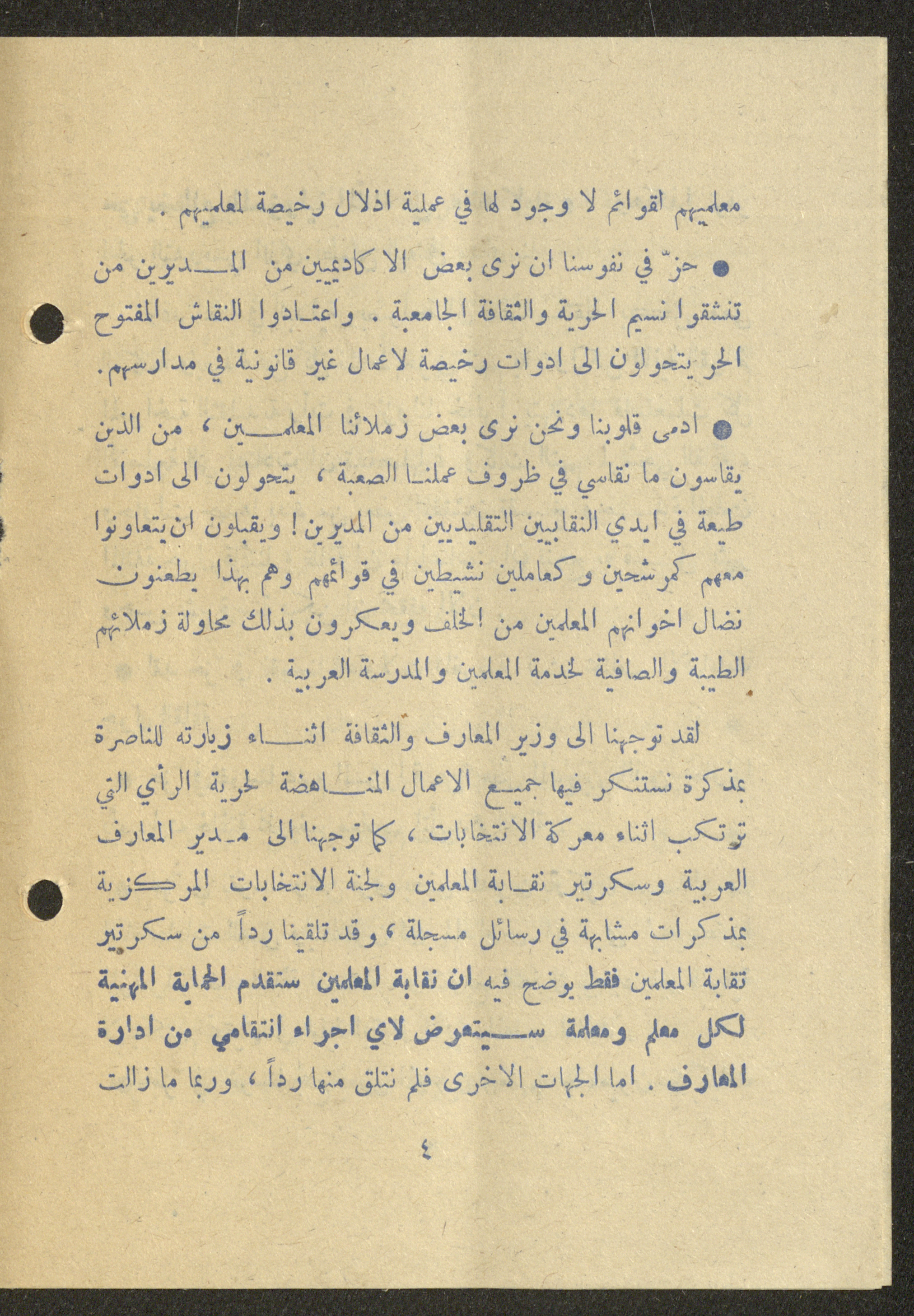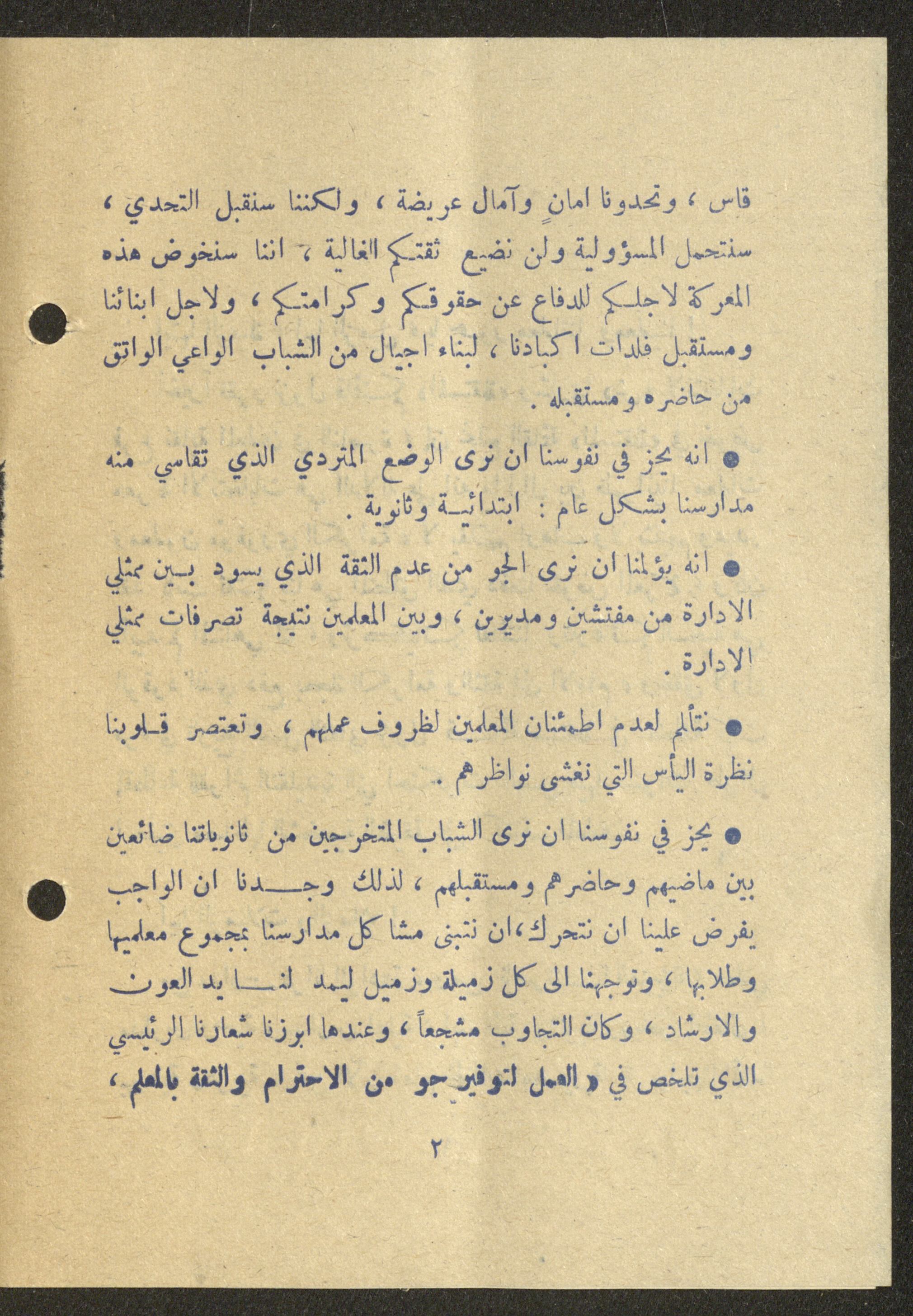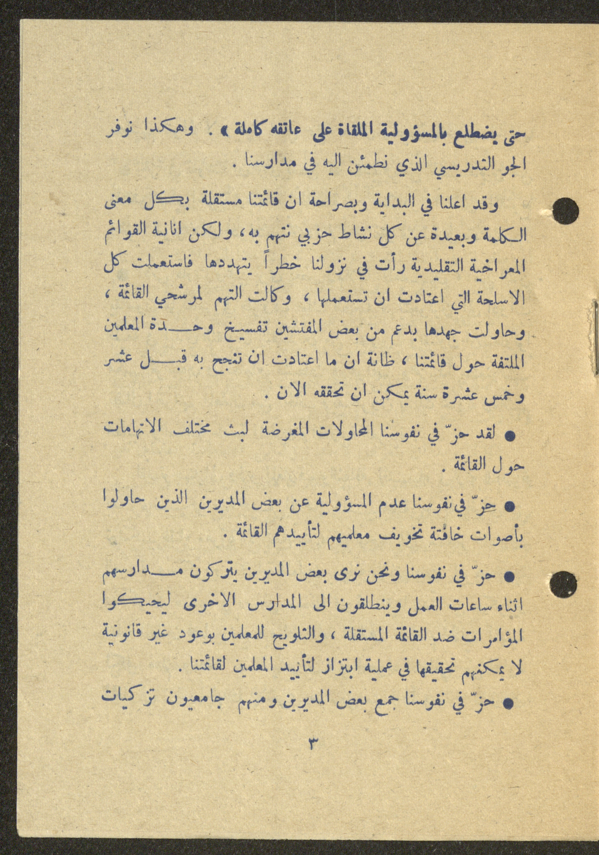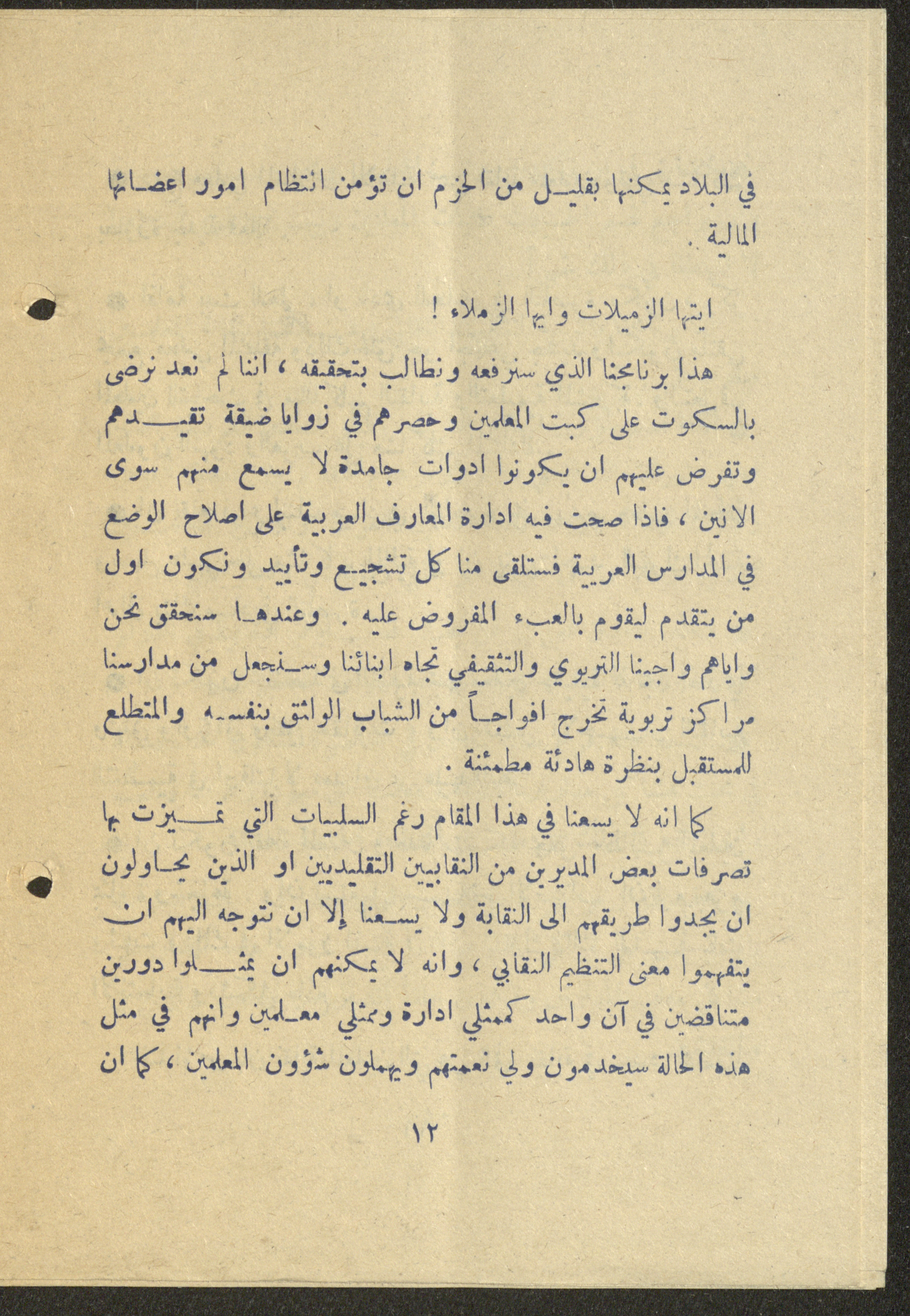 Dated 25 February 1975, this 16-page document shows the program of the independent list (Sh) for the elections of the teachers union in Nazareth.
