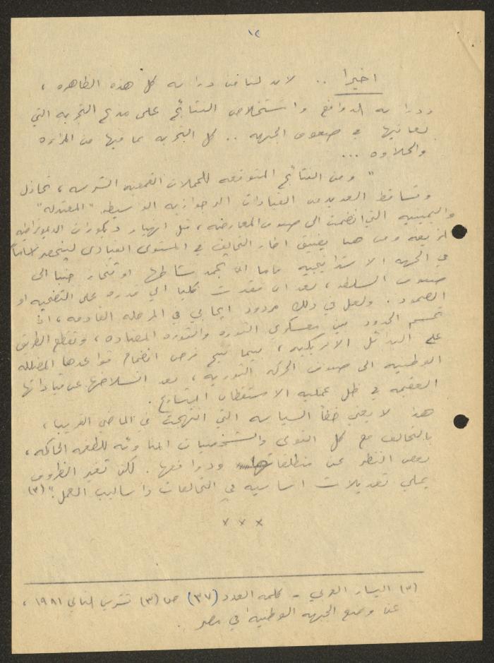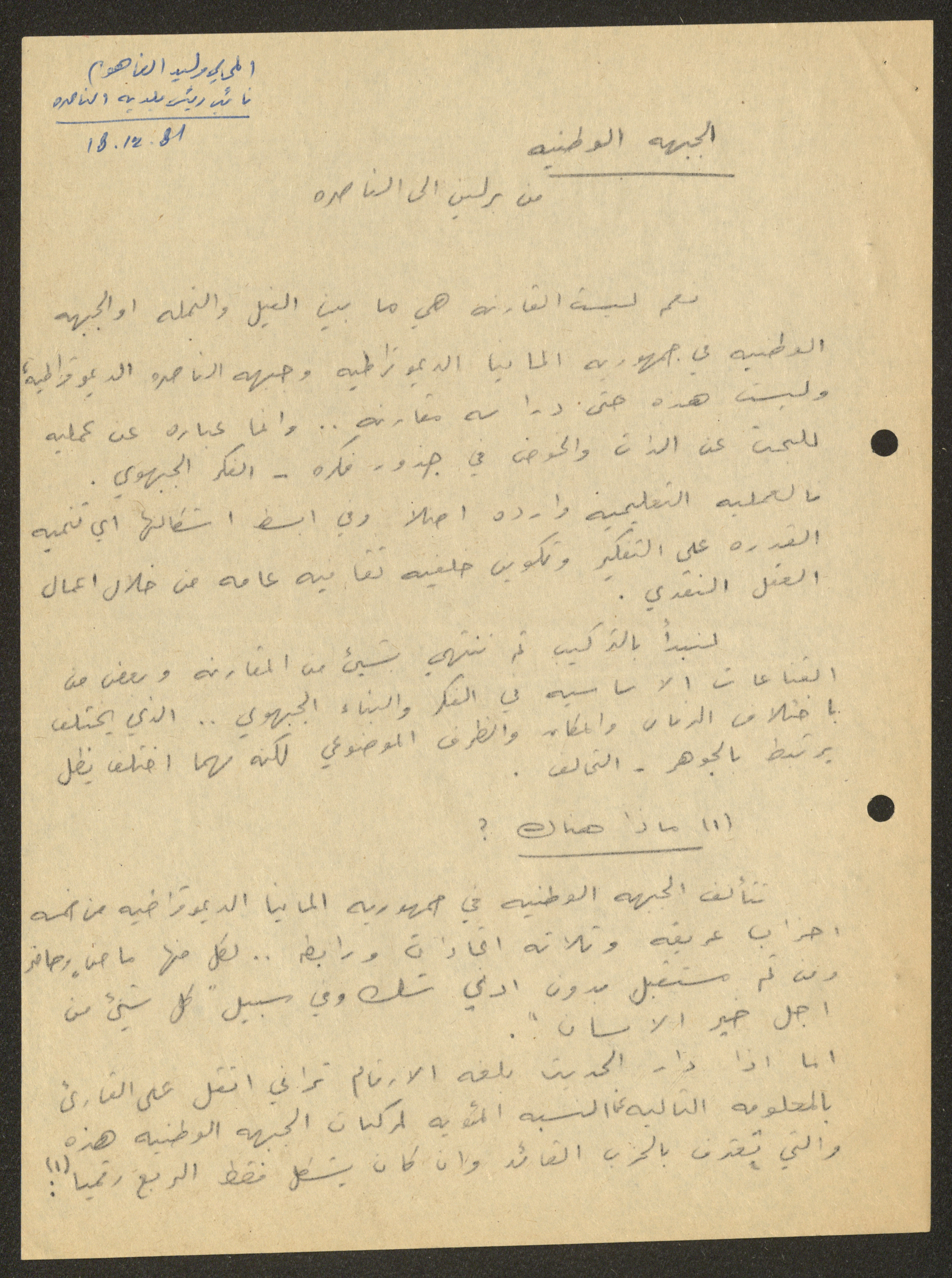 "The National Front, from Berlin to Nazareth", a Draft Article by Walid Fahoum, 18 December 1981