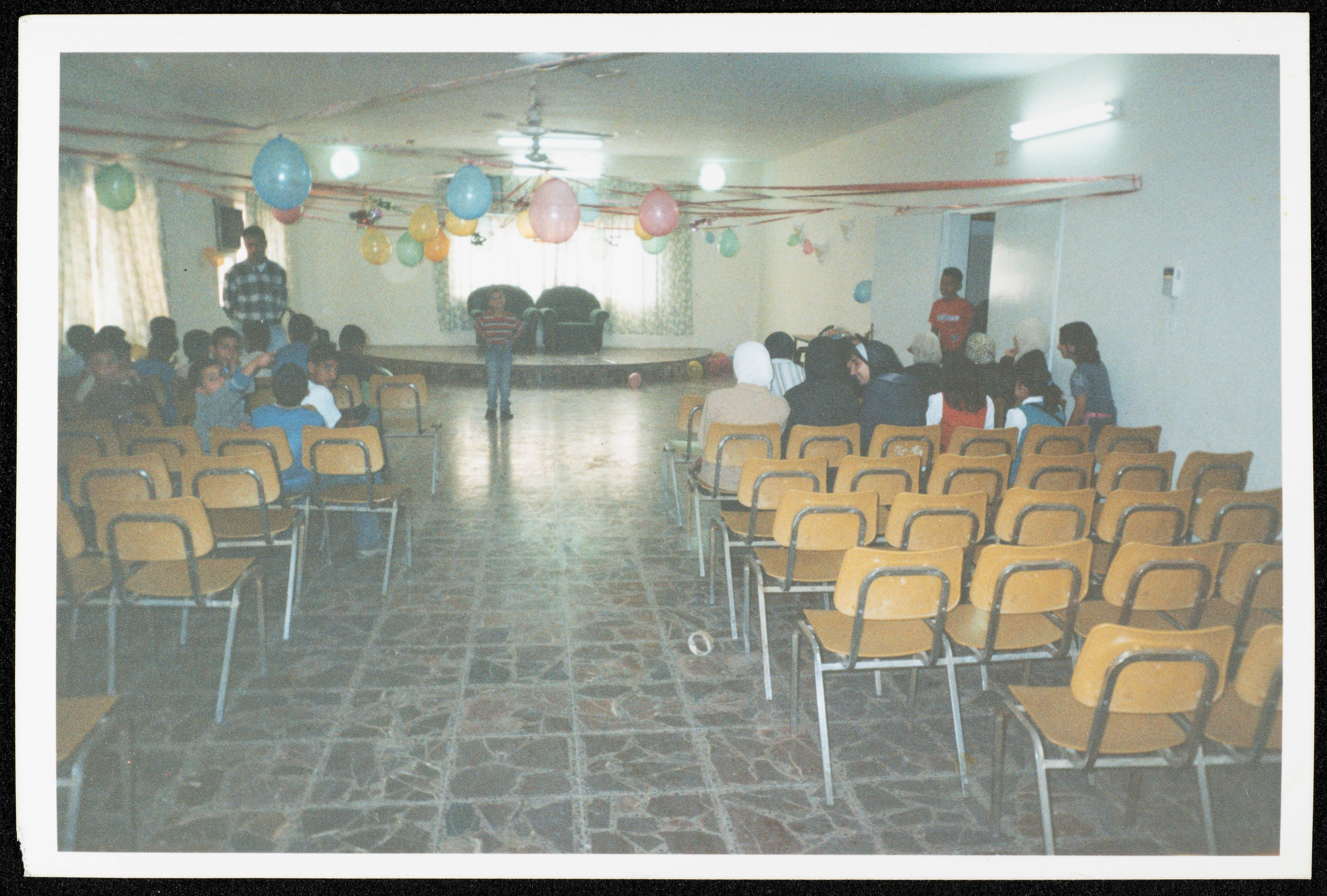 صورة التُقطت في مطلع تسعينيات القرن العشرين لقاعة جمعية دار اليتيم العربي في طولكرم.