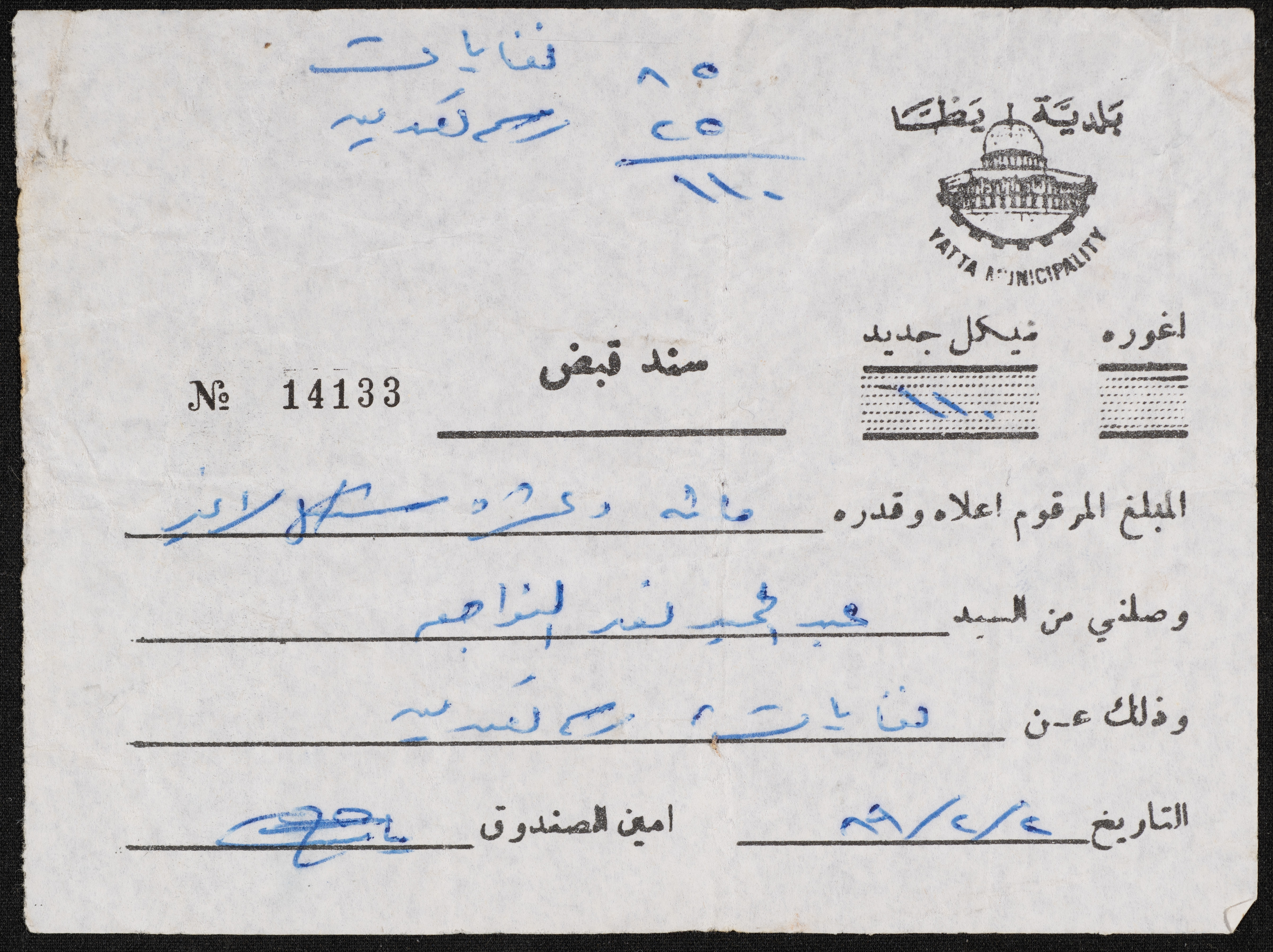 A Fee Receipt for Abdel-Hamid Nawaj'a, Yatta, 2 February 1989