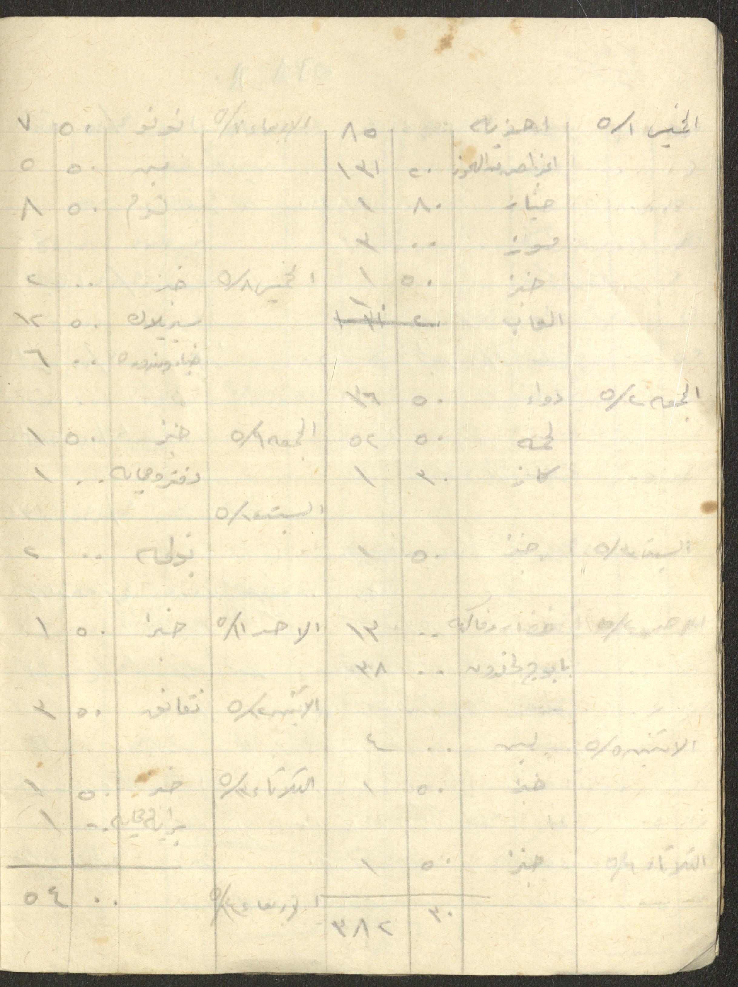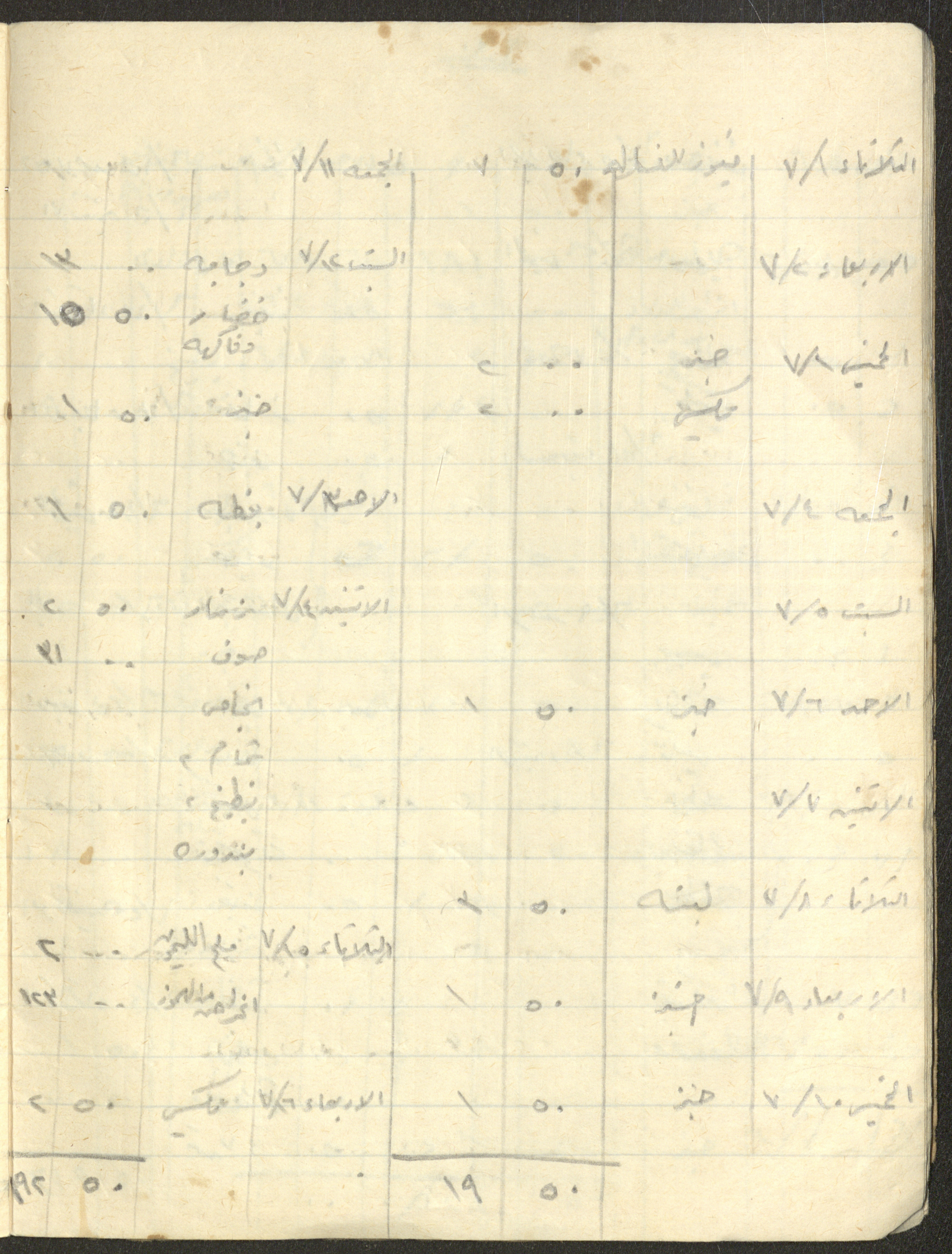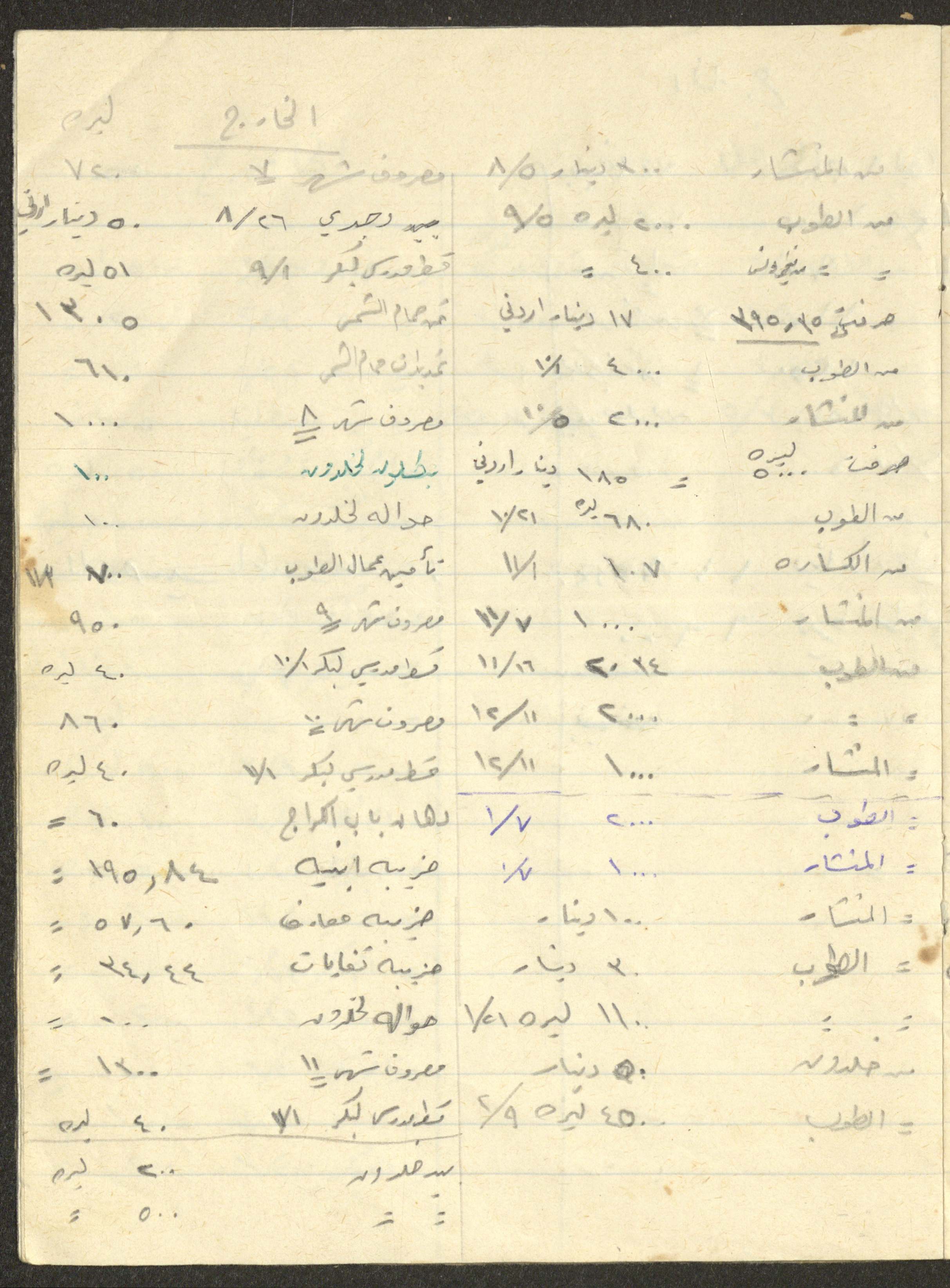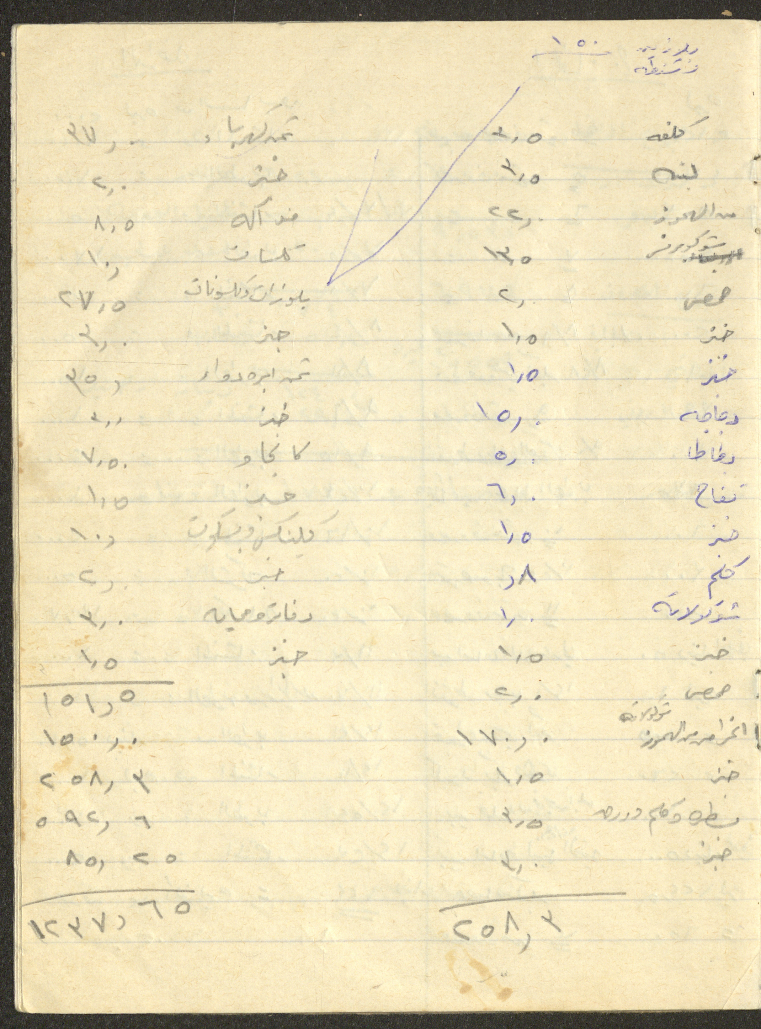 Handwritten, this 38-page document shows a notebook that belongs to Khaldoun Abdel-Haq's wife, where she wrote down all the house's expenses and accounts during the time her husband was imprisoned in 1975.