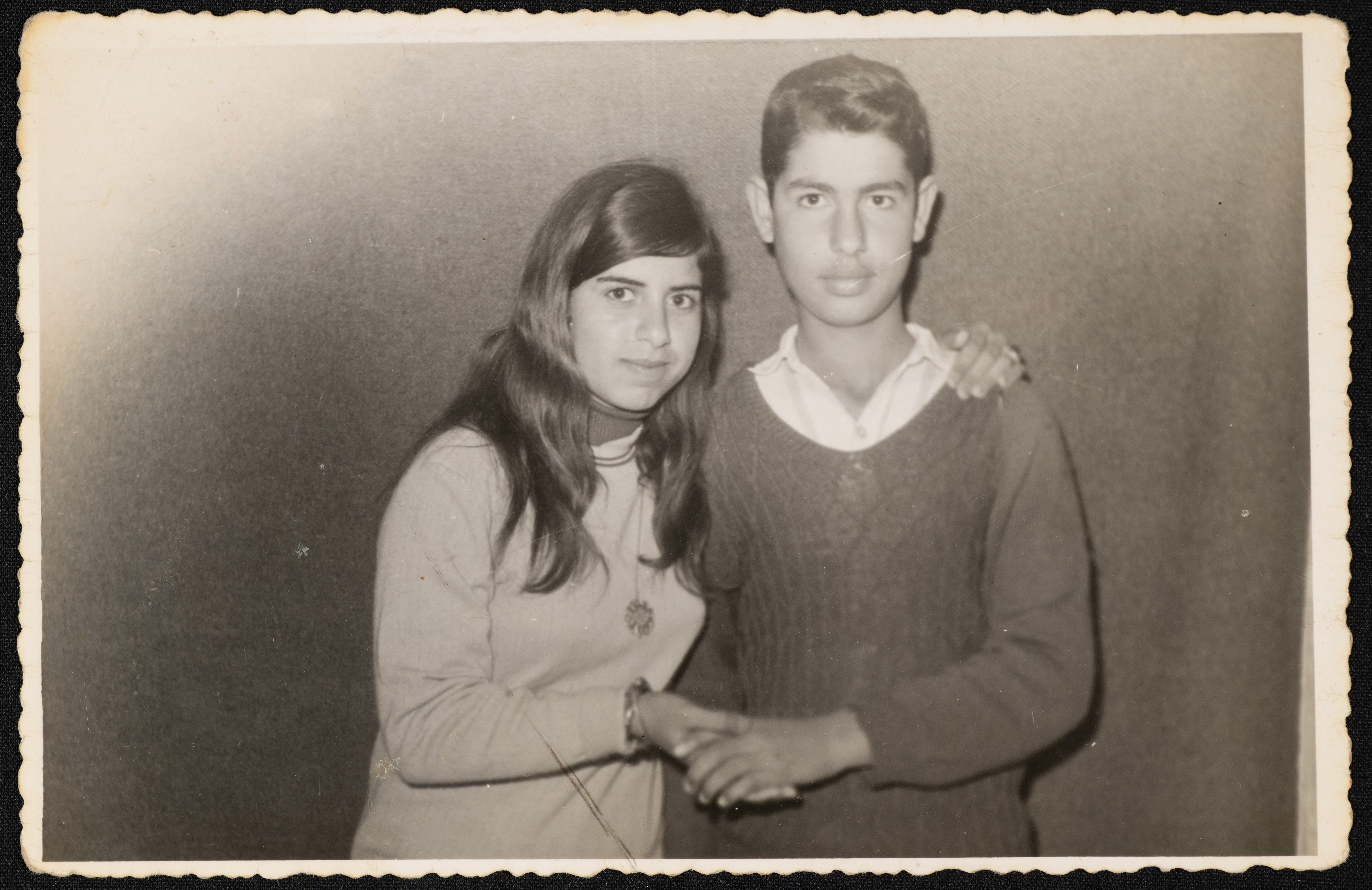 Taken in the 1970s, this photograph shows Abla Rimawi with her nephew in Beit Rima.