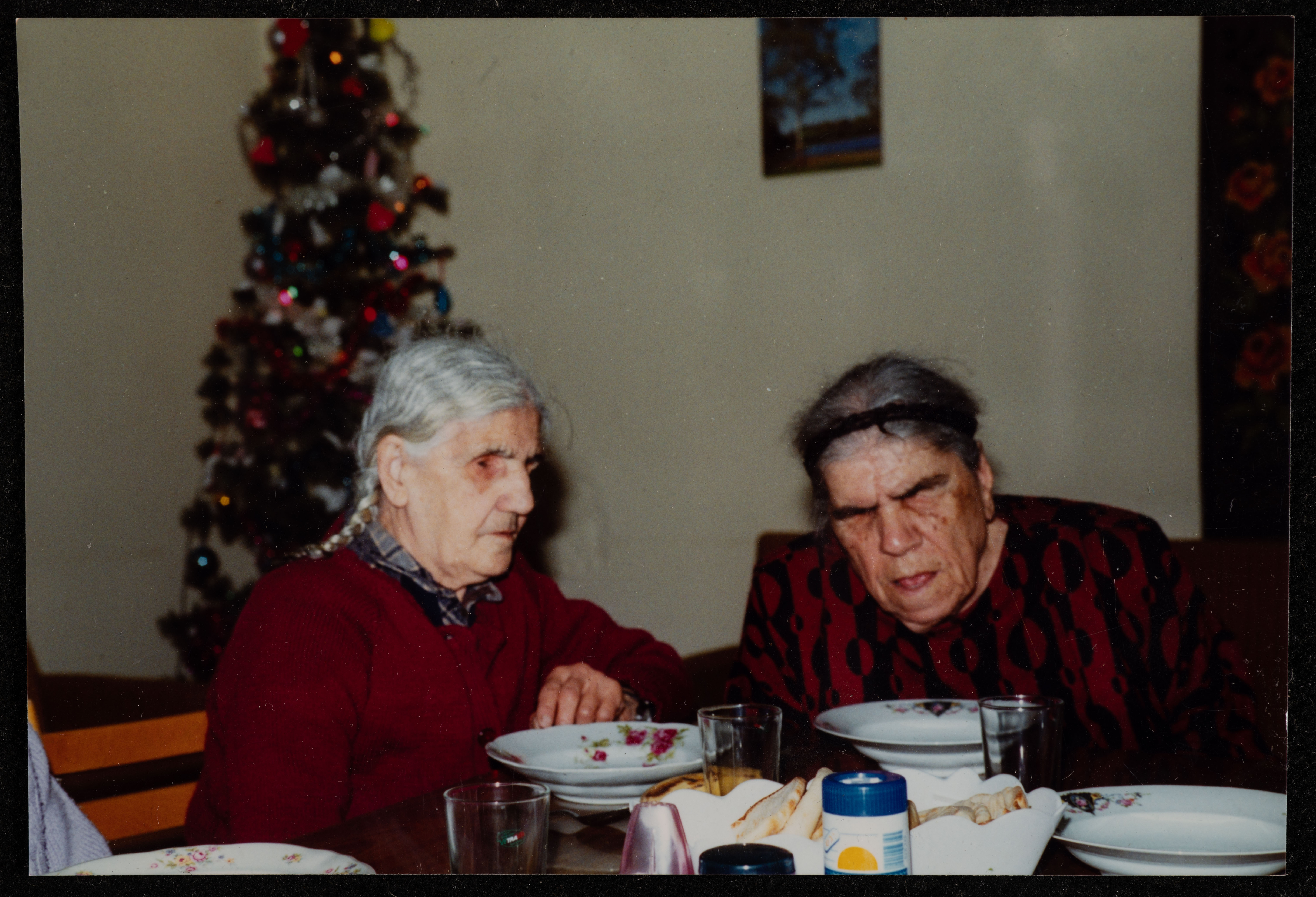 Taken in the 1990s, this photograph shows Mai Lad'a, the founder of the House of Hope Association for the Blind and Special Needs with a blind woman in Beit Sahour, who is one of the first beneficiaries and became an employee in the Association afterwards.