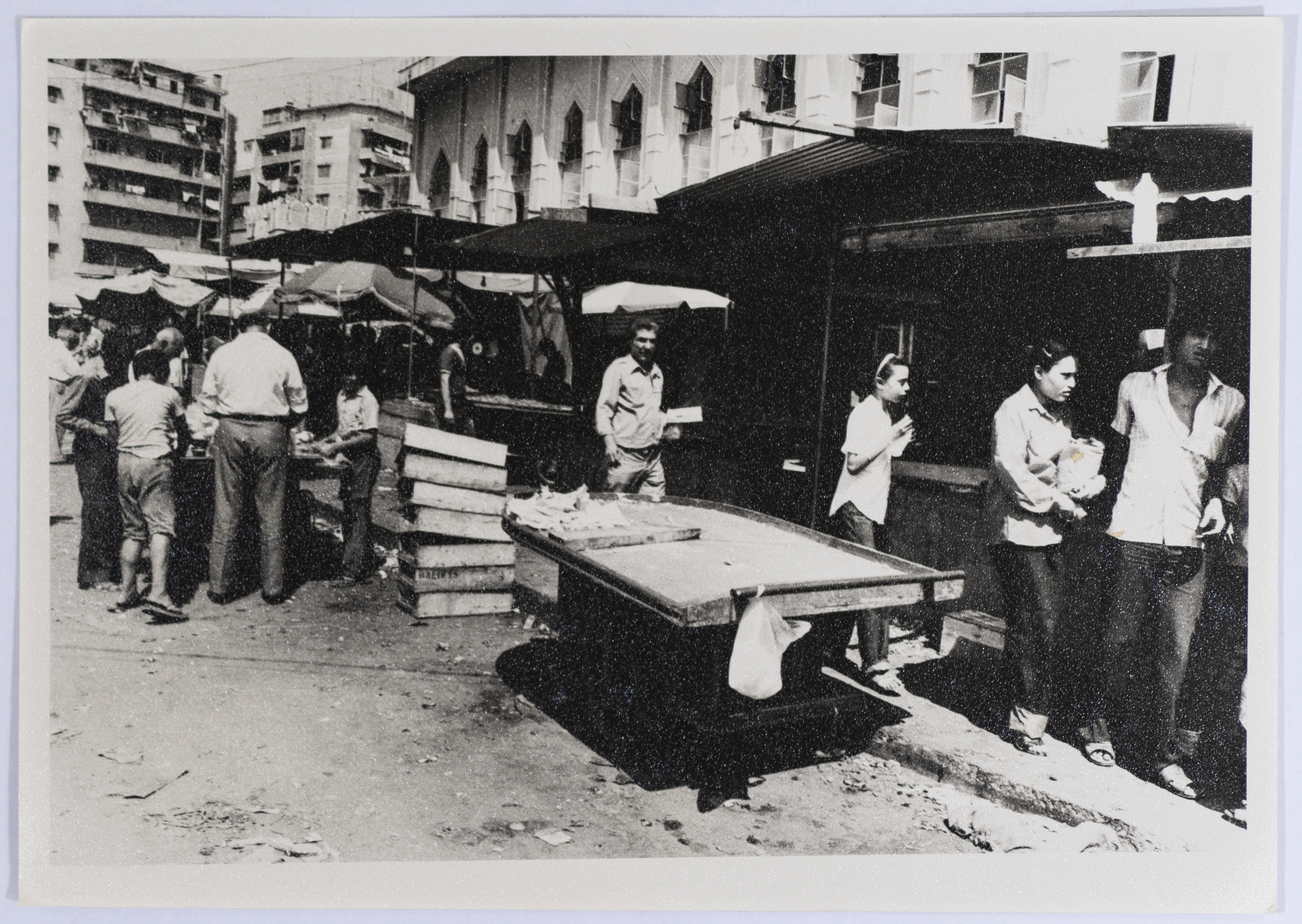 A black-and-white photograph showing the nature of the place and the streets and the houses, and the detailed life of the citizens of Sabra and Shatila refugee camps during the eighties of the past century.