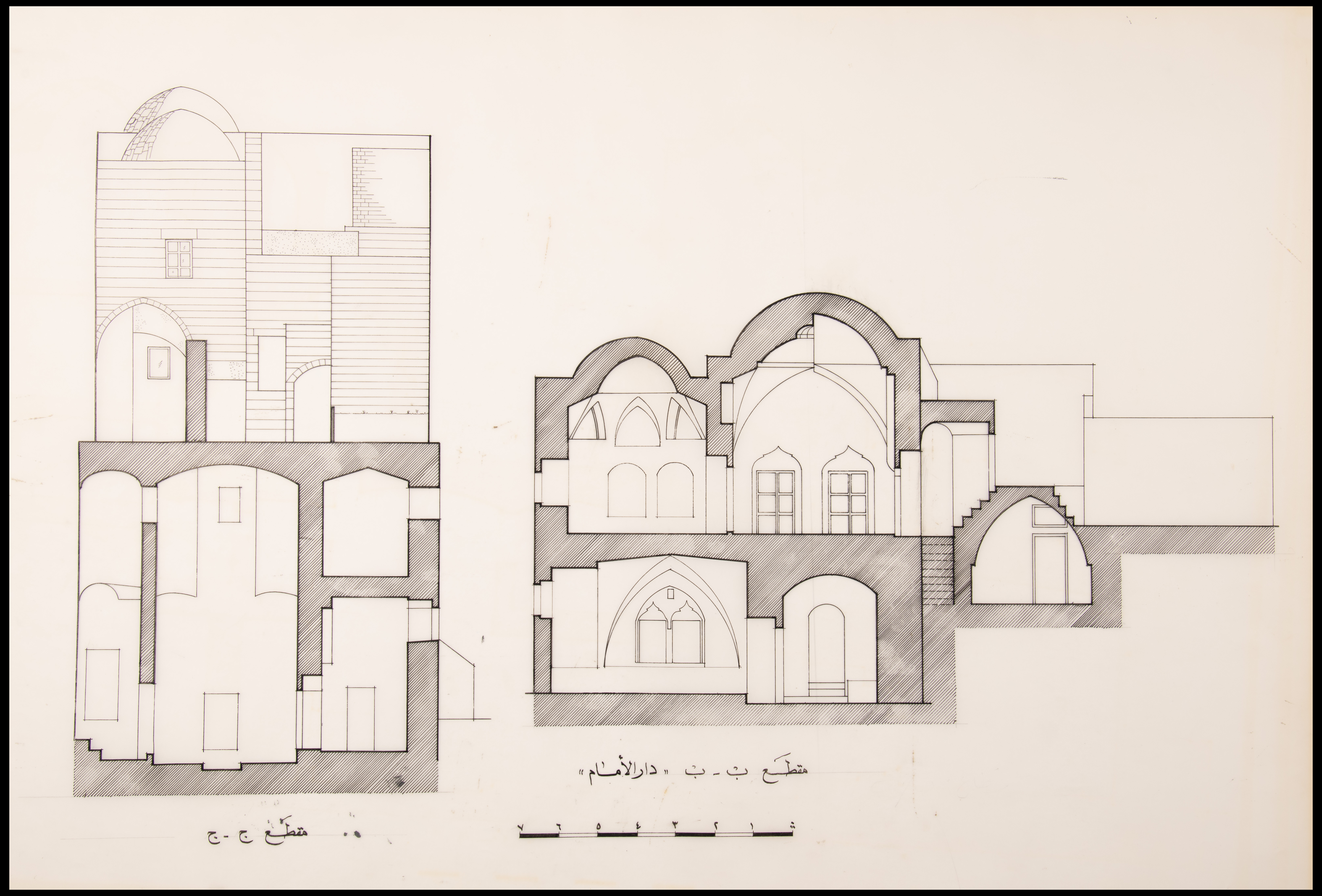 Drawn by Sameh Aboushi in the 1990s, this document shows the "B-B Section" plan of the al-Amam Family house in the Old City of Jerusalem.