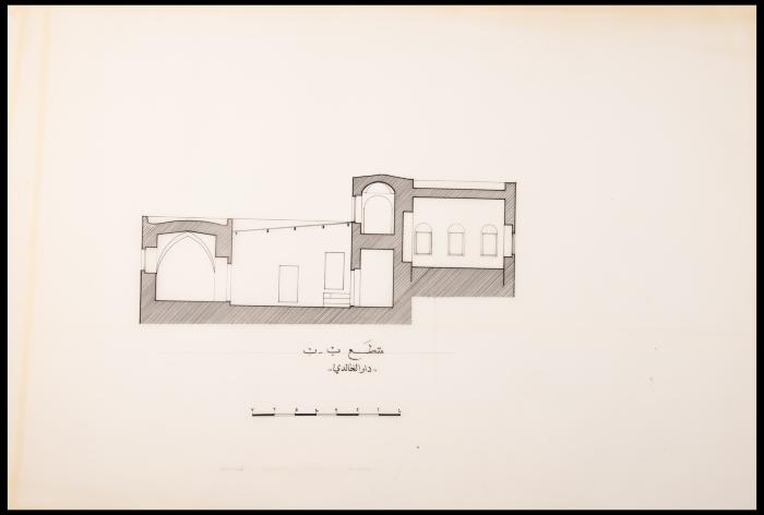 Drawn by Sameh Aboushi in the 1990s, this document shows the "B-B Section" plan of the al-Khaldi Family house in the Old City of Jerusalem.