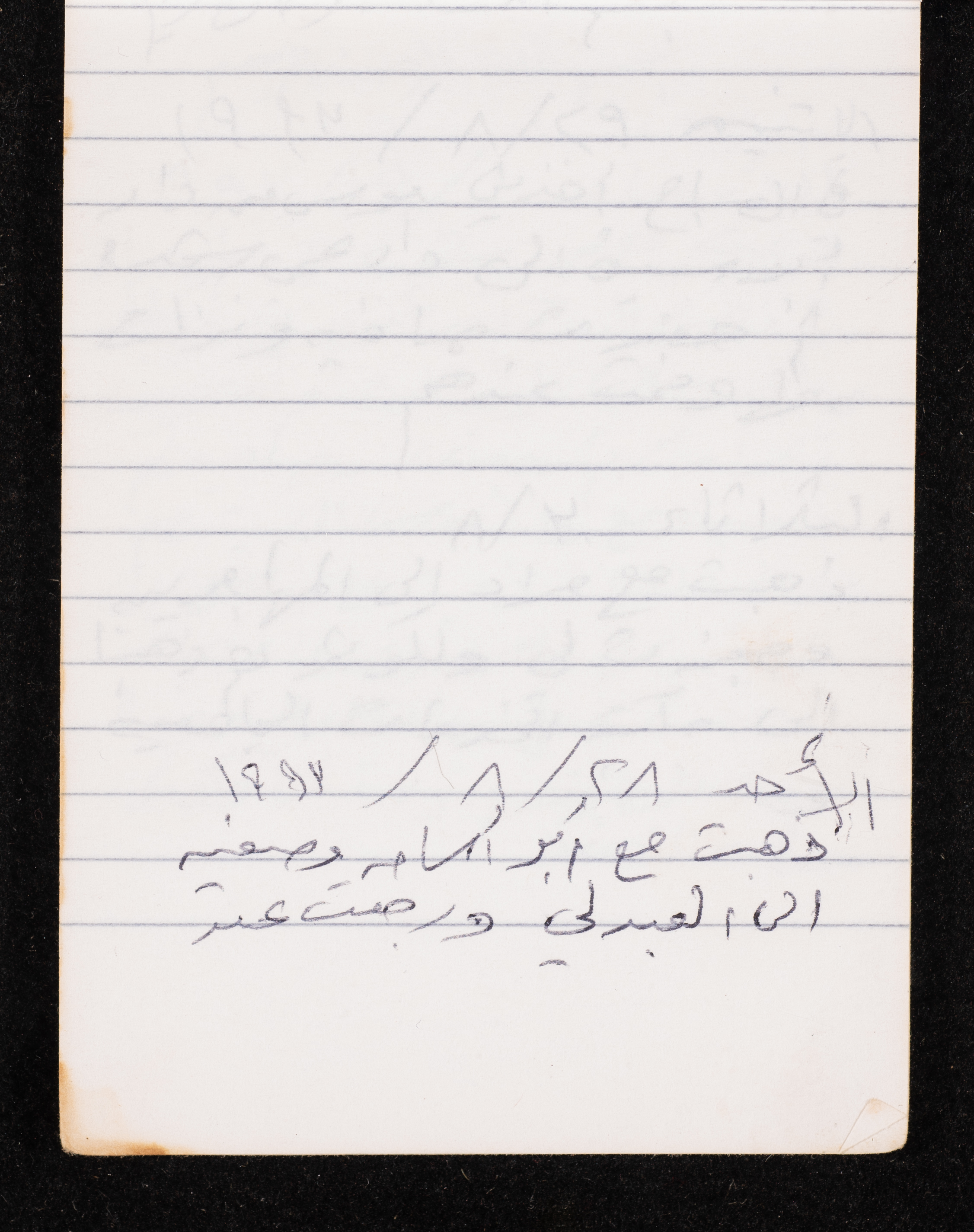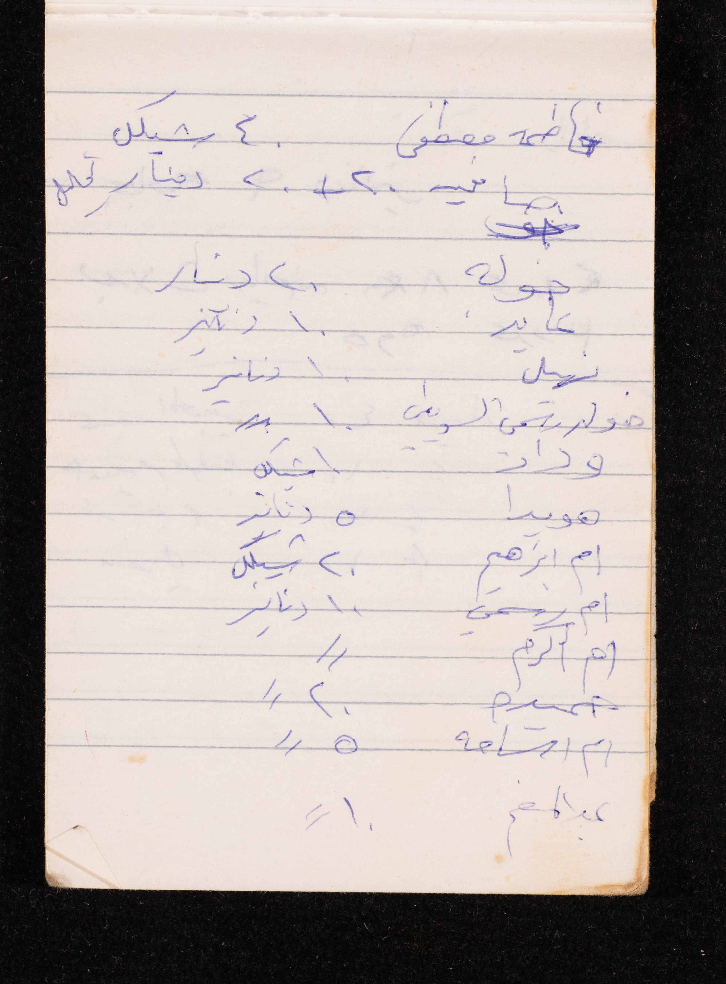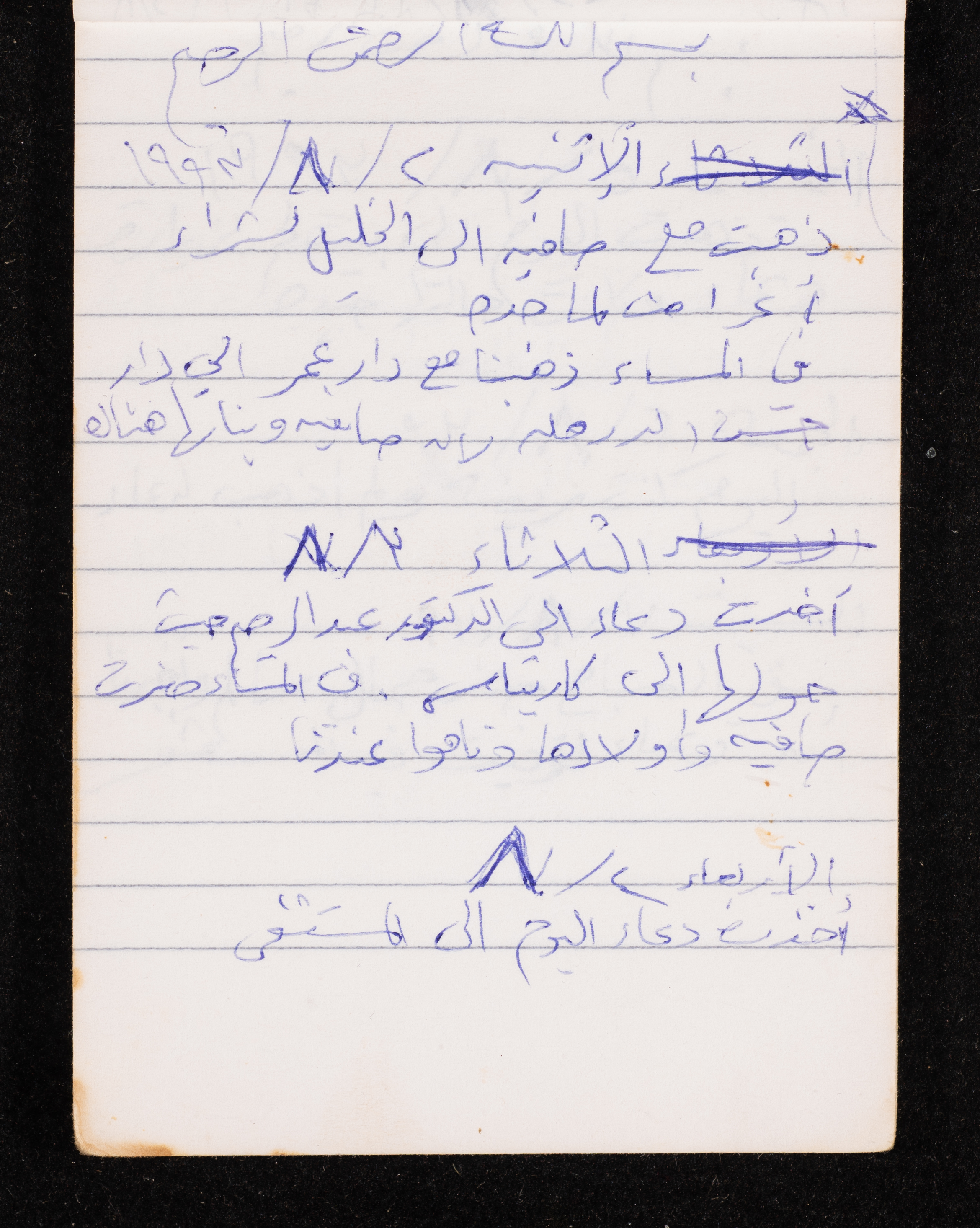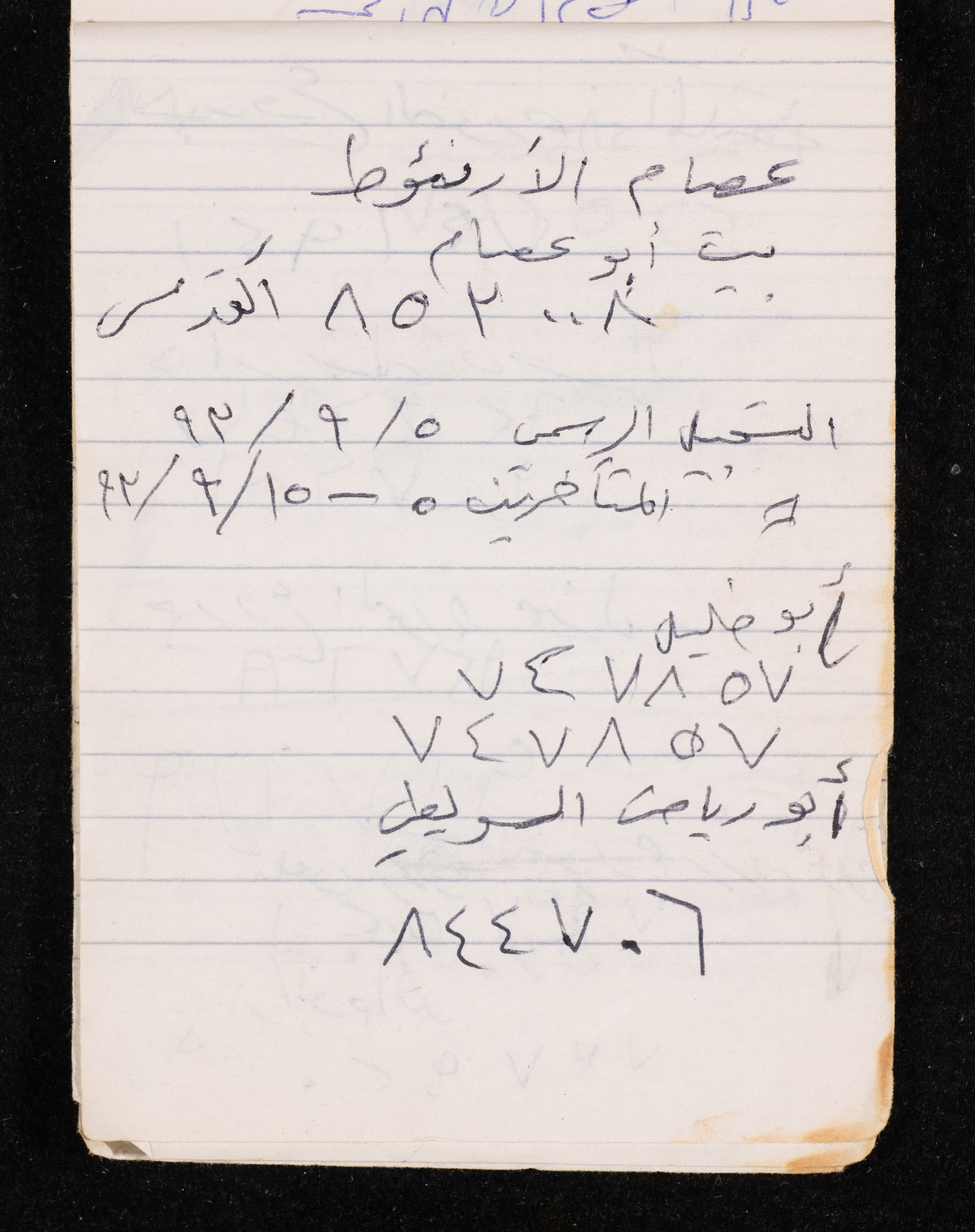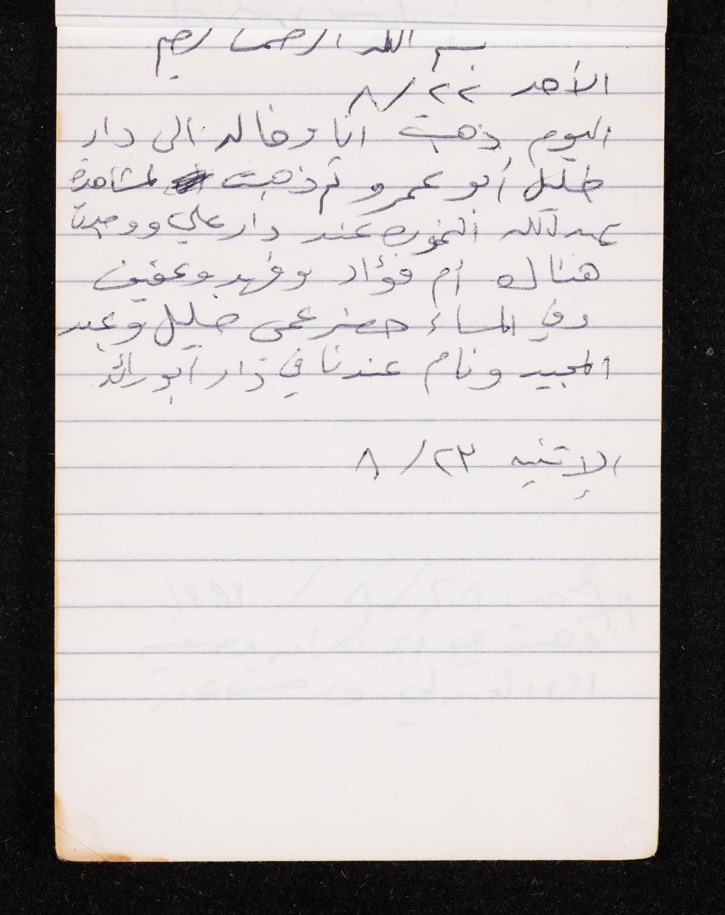 Written in 1993, this 40-page document shows the diaries of Fadeyyeh Darabe, in which she described the time she spent with her family in Dura-Hebron, her social relations, travelling to Jordan, trying to secure a scholarship for her son Khalil and on 13 September 1993, she wrote that an agreement between the Israeli Occupation and Yasser Arafat (Abu Ammar) was signed in the United States of America (USA).
