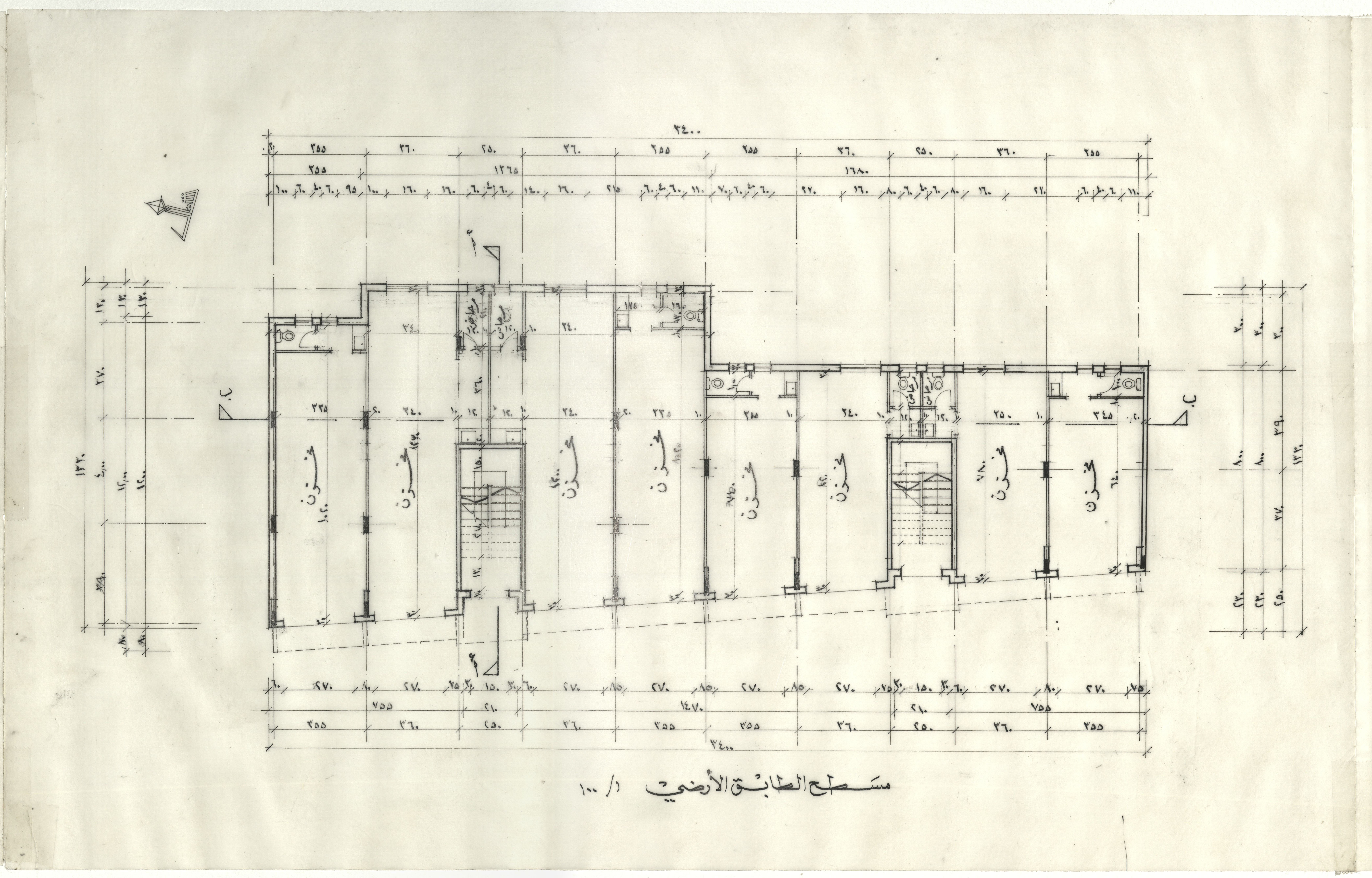 Issued by the municipality of Halhul and designed by Sameh Abboushi on 2 December 1989, this document shows the plan of commercial housing that belongs to the Anani Family at the Thahr Qteit Area in Halhul.