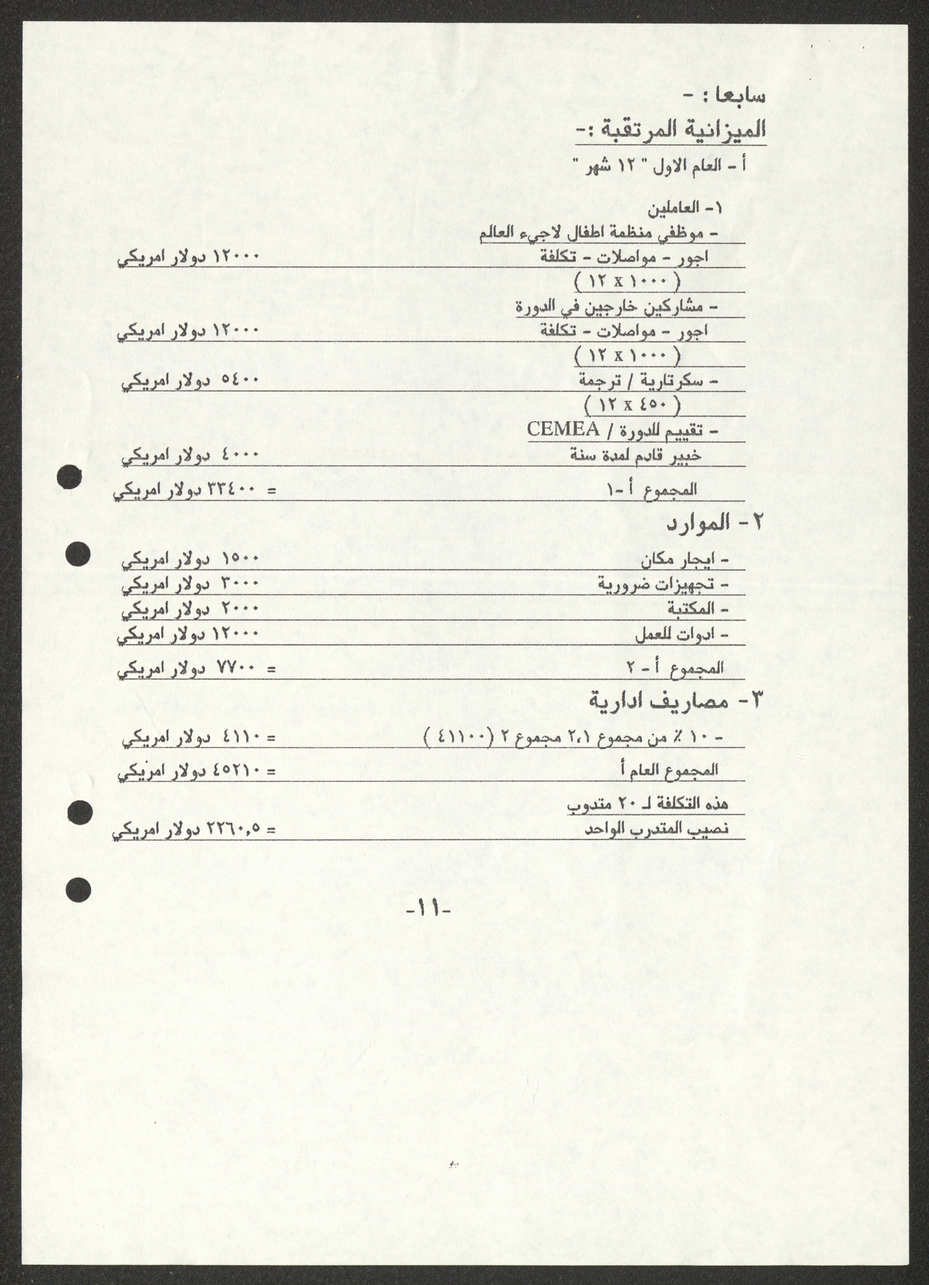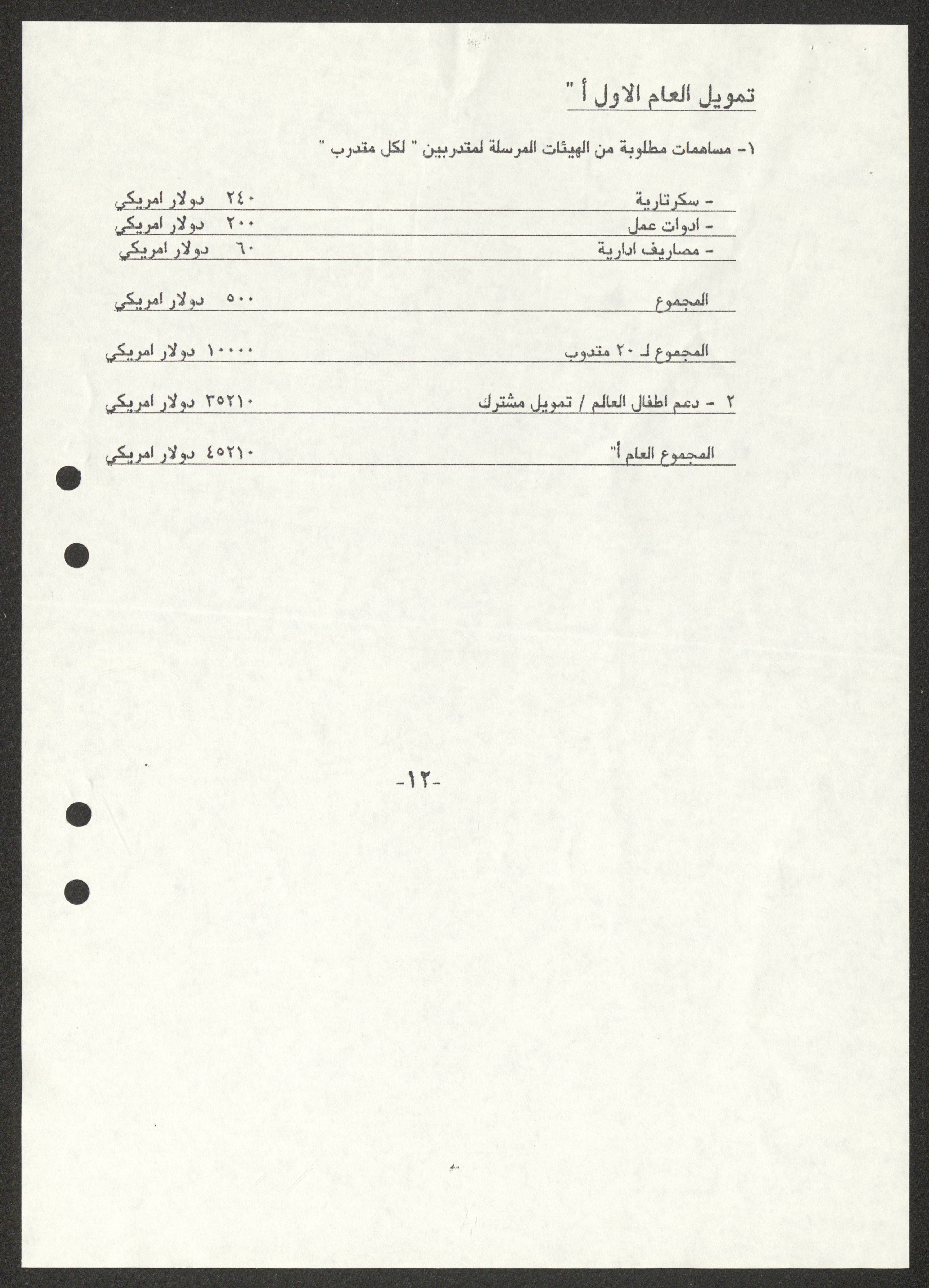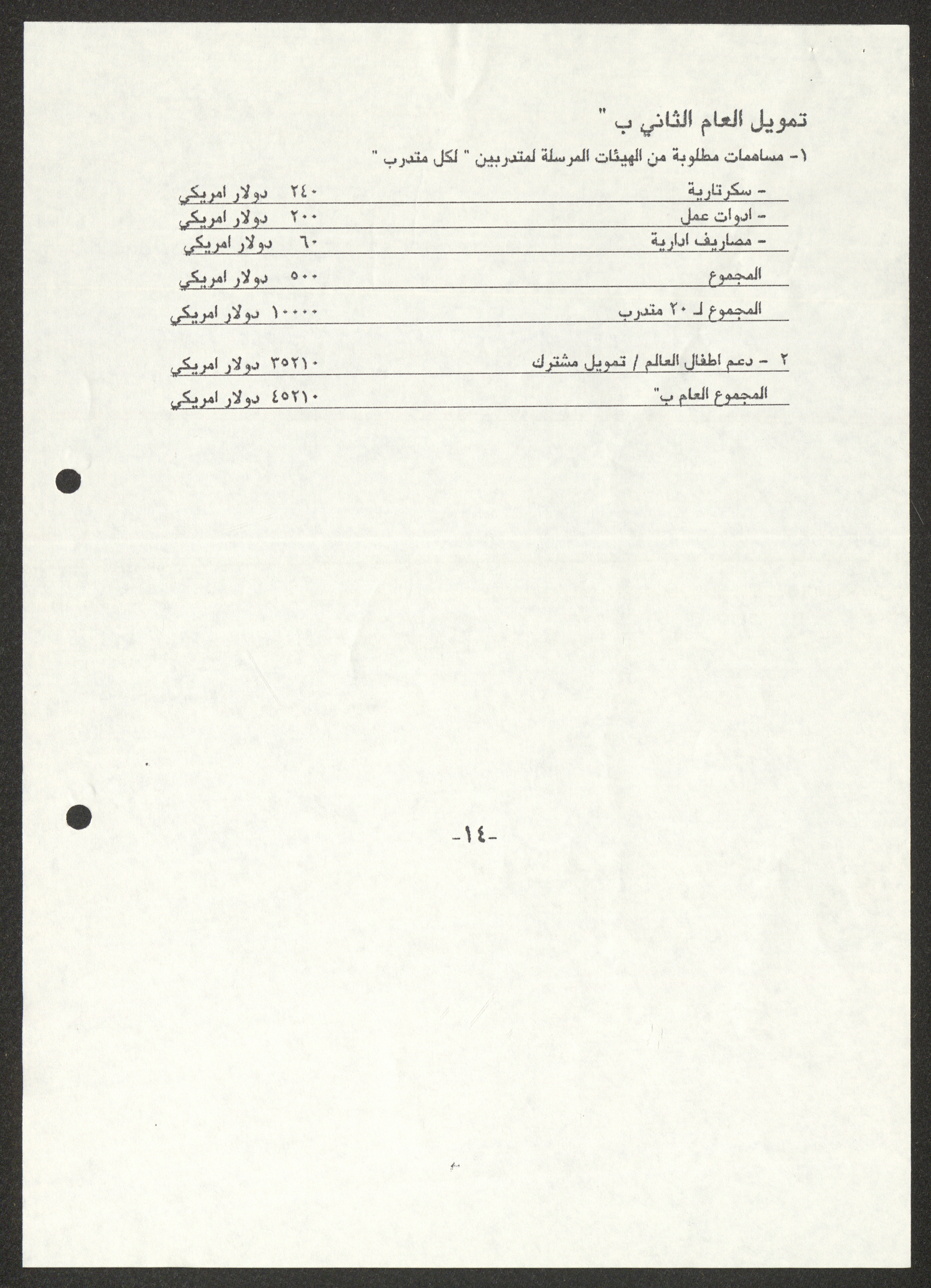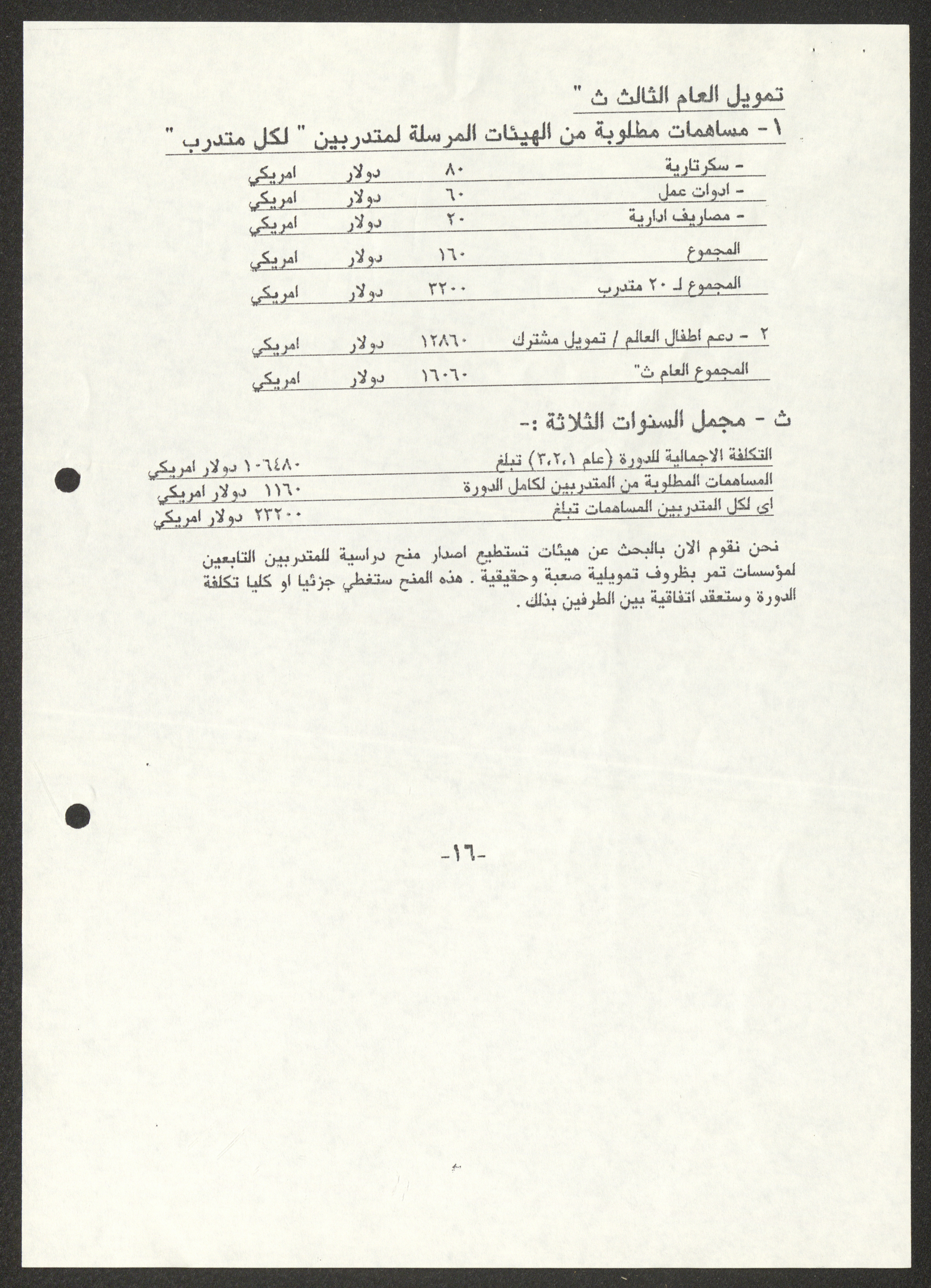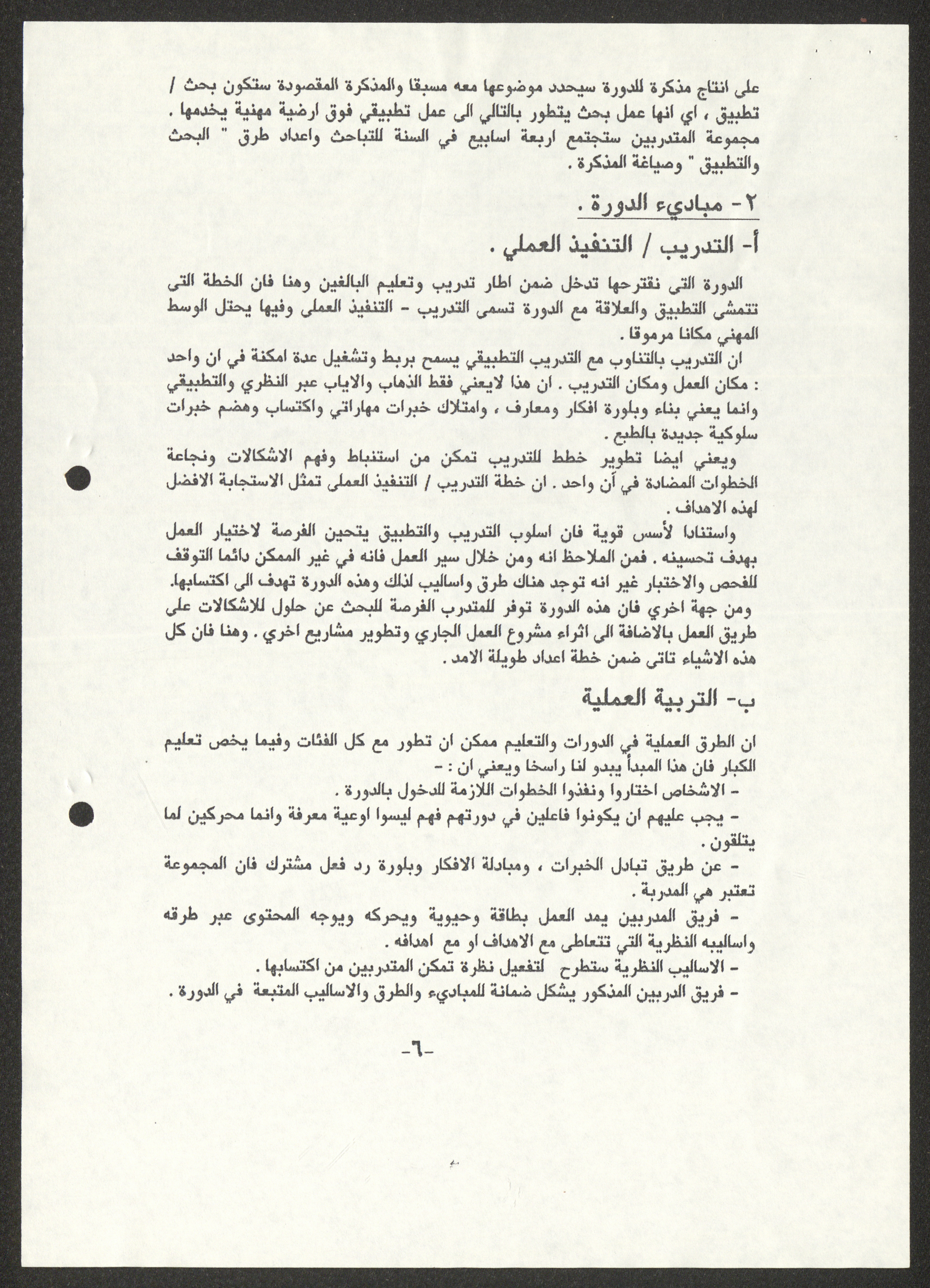 جزء من كتاب يحتوي على 18 صفحة، يتضمن ورشات تدريبية موجهة للعاملين والمهنيين في حقل التعليم ضمن شروط معينة، إضافة لمعلومات حول التدريب، والفترة التي سيعقد فيها، أي في تشرين الأول 1993.