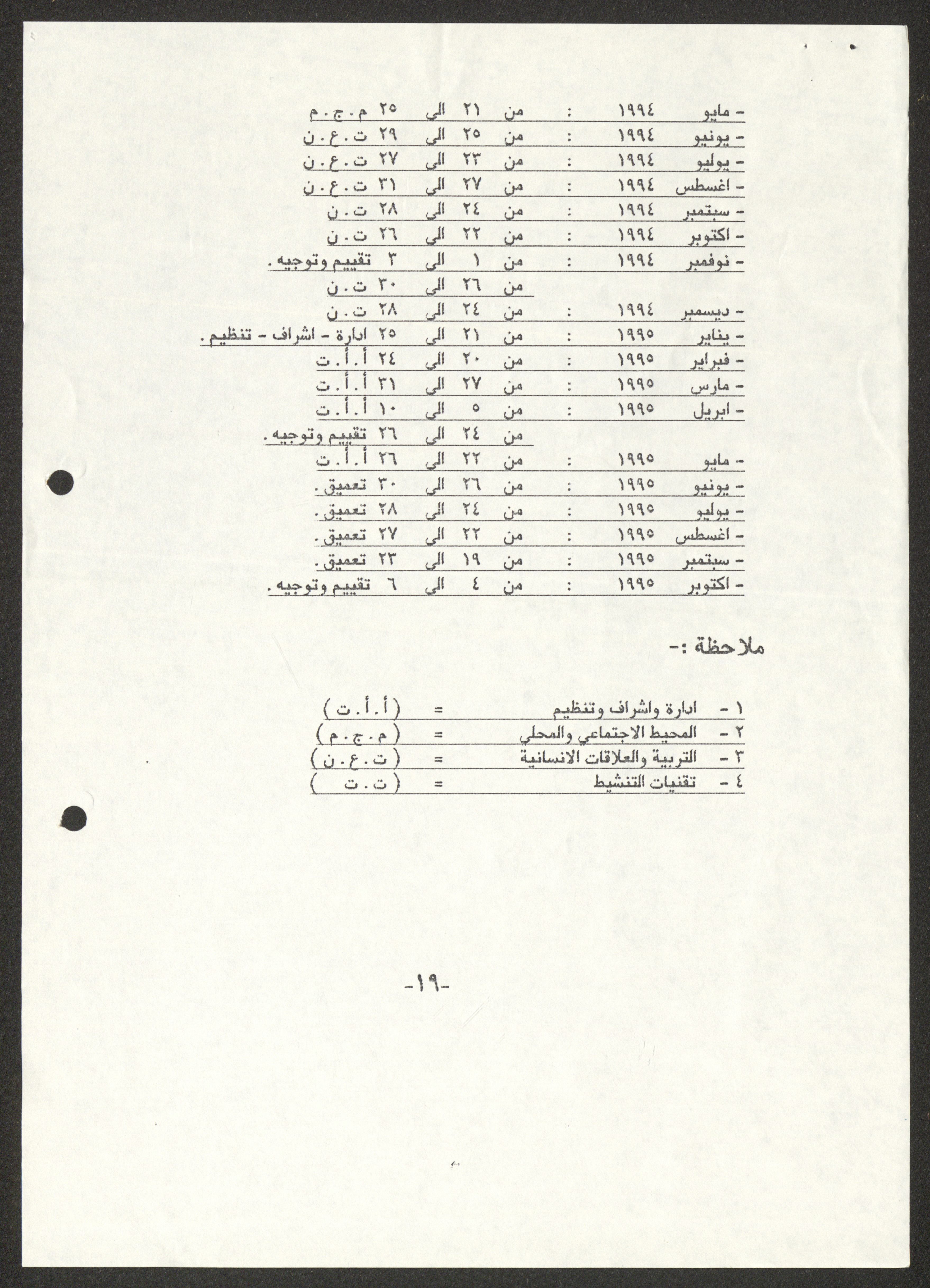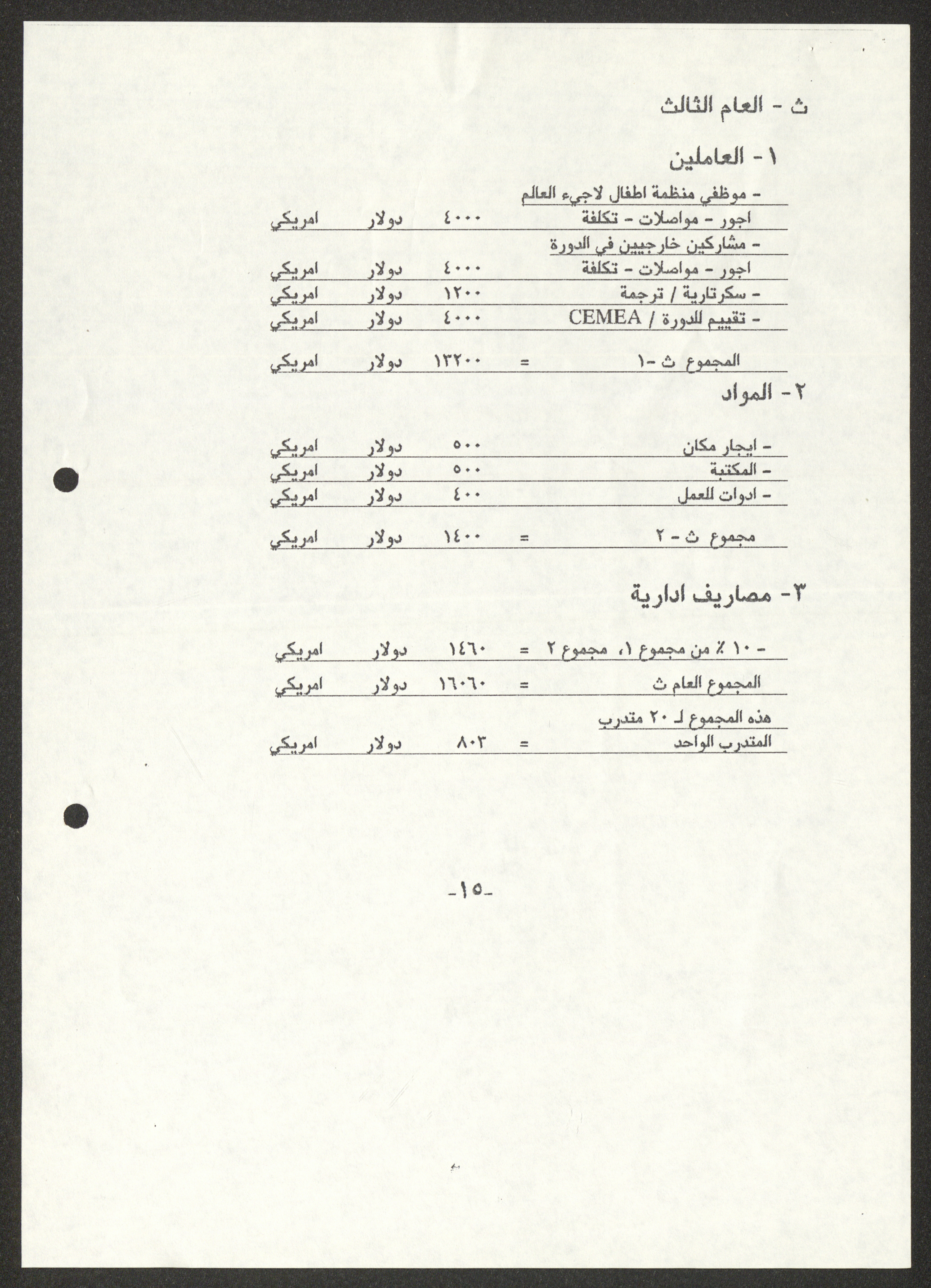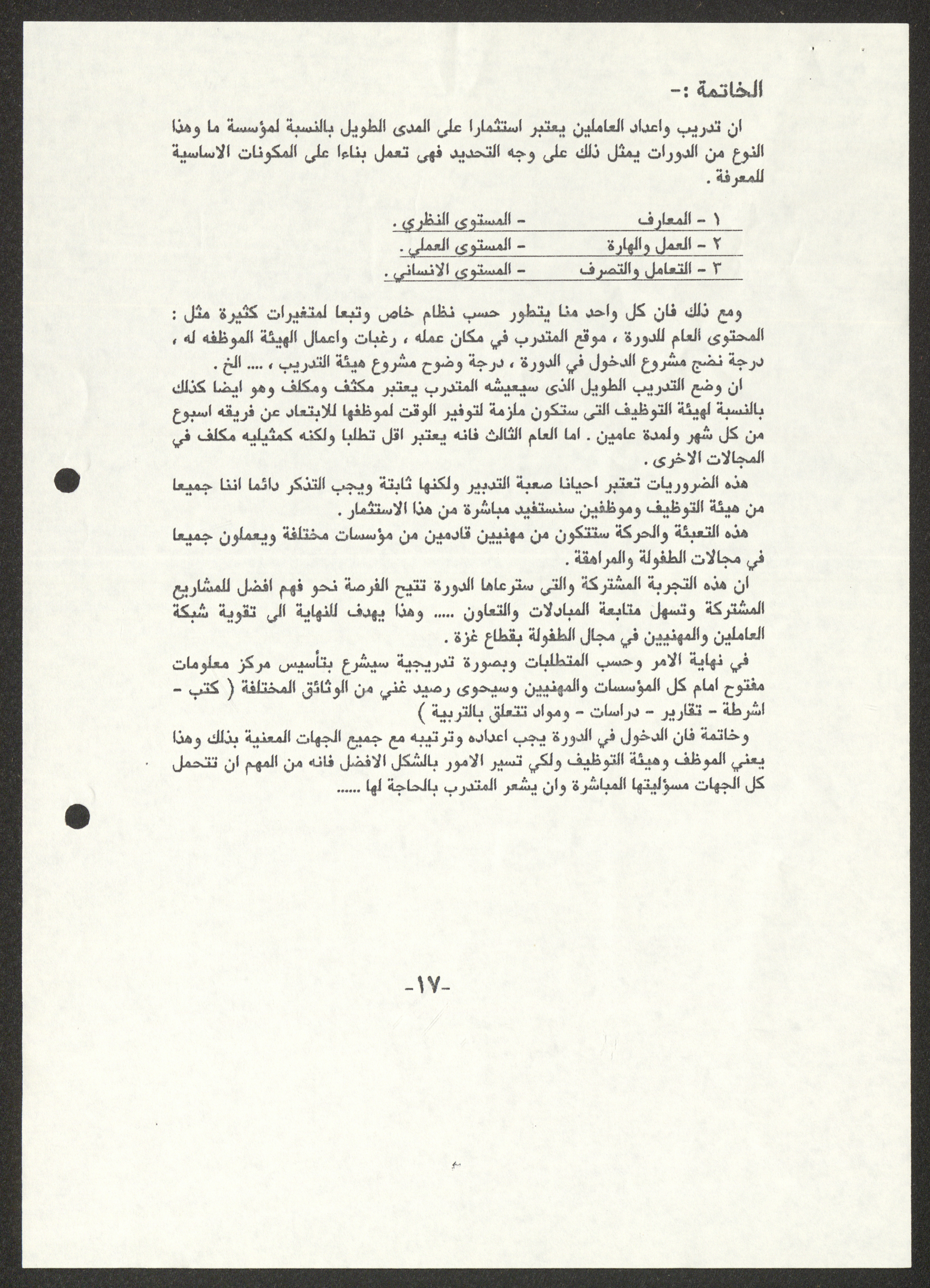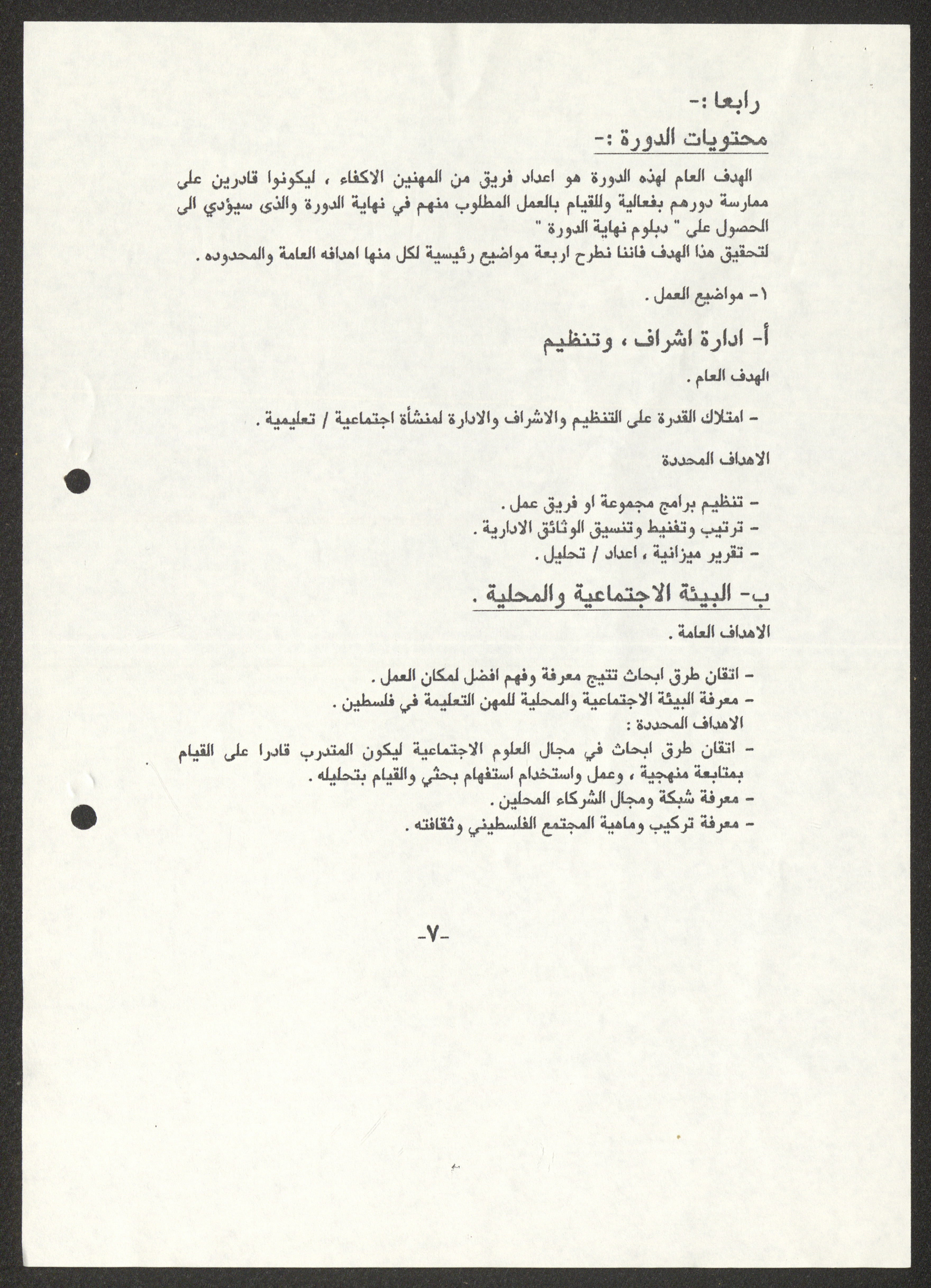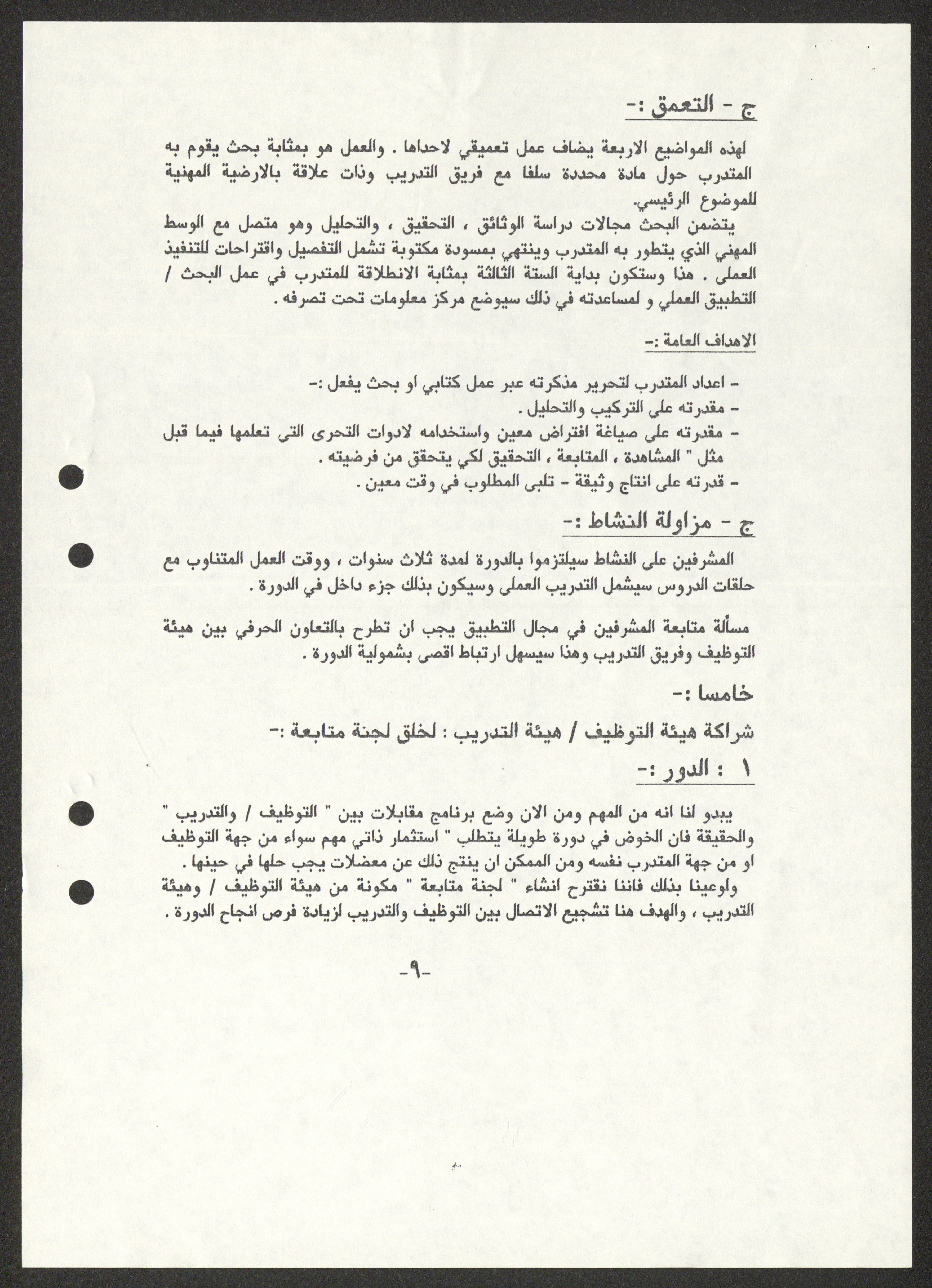 جزء من كتاب يحتوي على 18 صفحة، يتضمن ورشات تدريبية موجهة للعاملين والمهنيين في حقل التعليم ضمن شروط معينة، إضافة لمعلومات حول التدريب، والفترة التي سيعقد فيها، أي في تشرين الأول 1993.