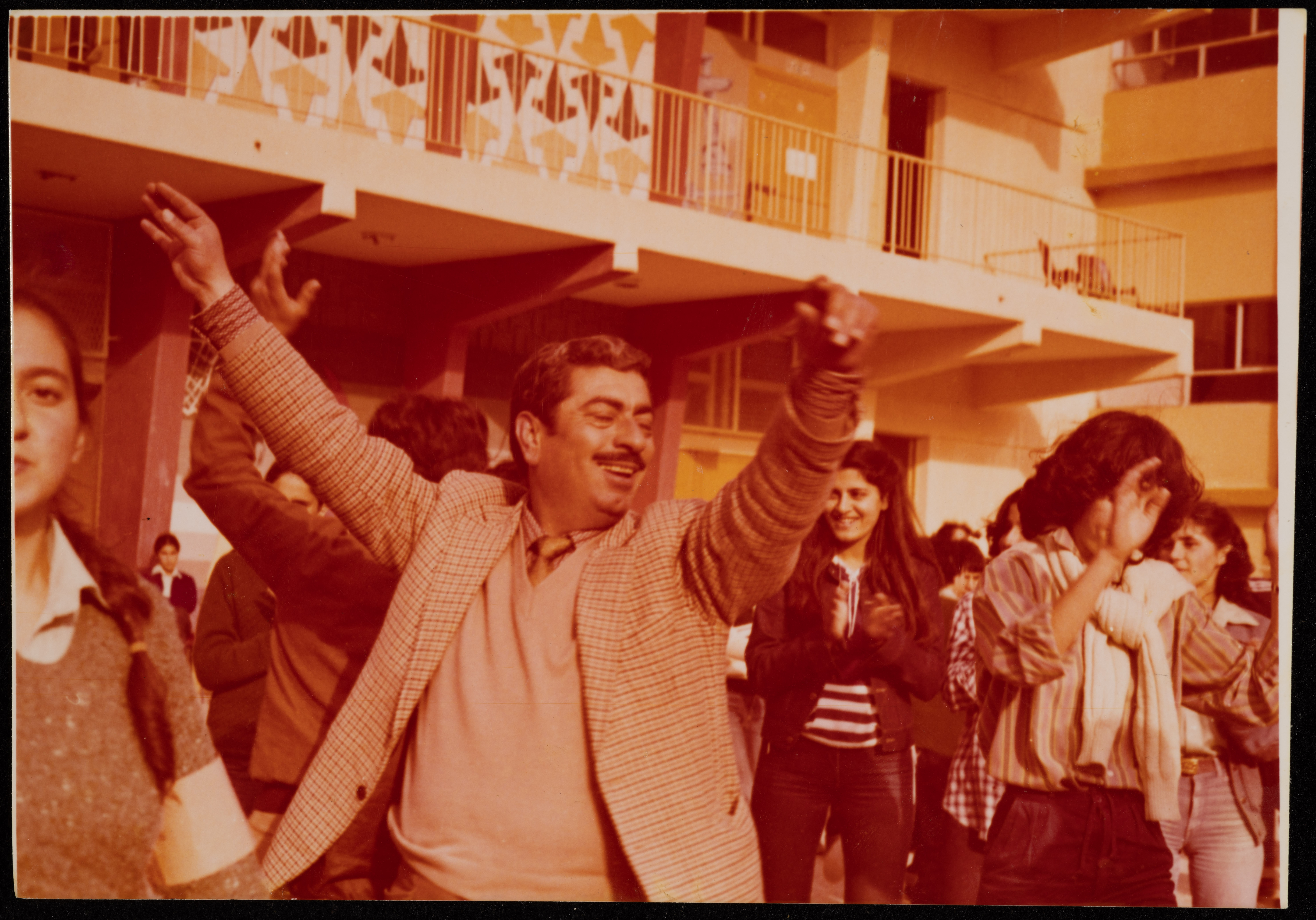 Taken in the mid-1980s, this photograph shows Shakib Jahshan during an event at the St. Joseph School in Nazareth.