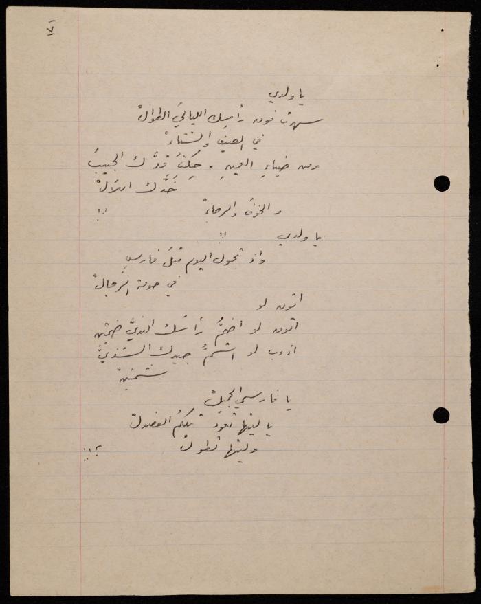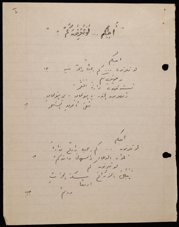 Handwritten in April 1981, this 9-page document shows a poem by Shakib Jahshan titled "Ohebokom Law Ta'refon Kam? (Oh, How I Love You)".