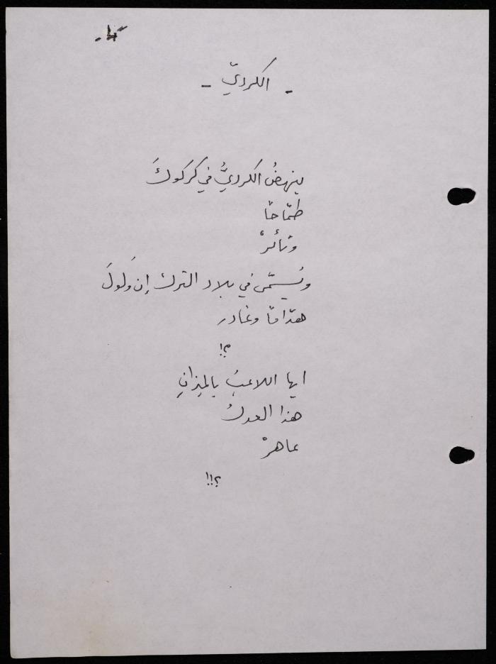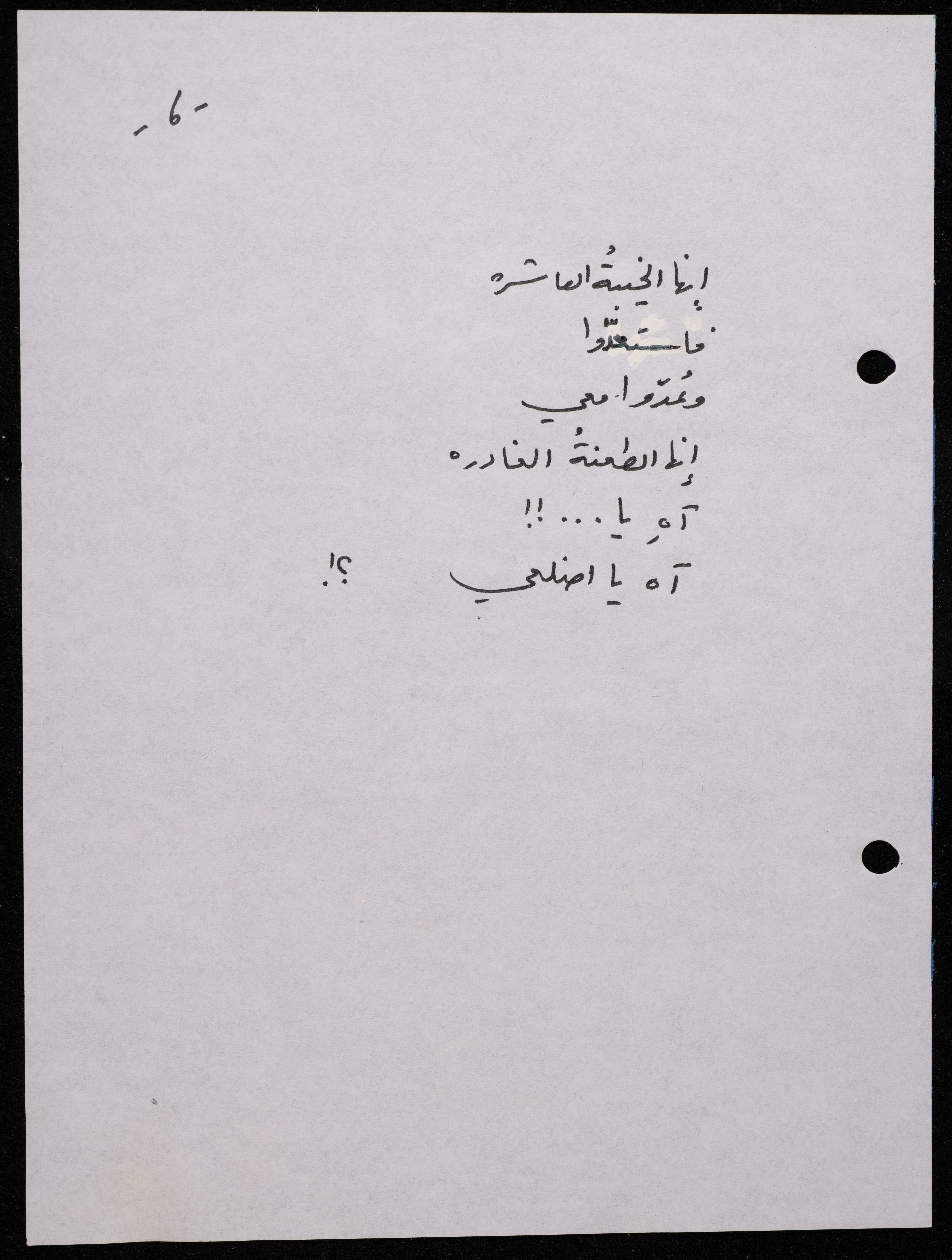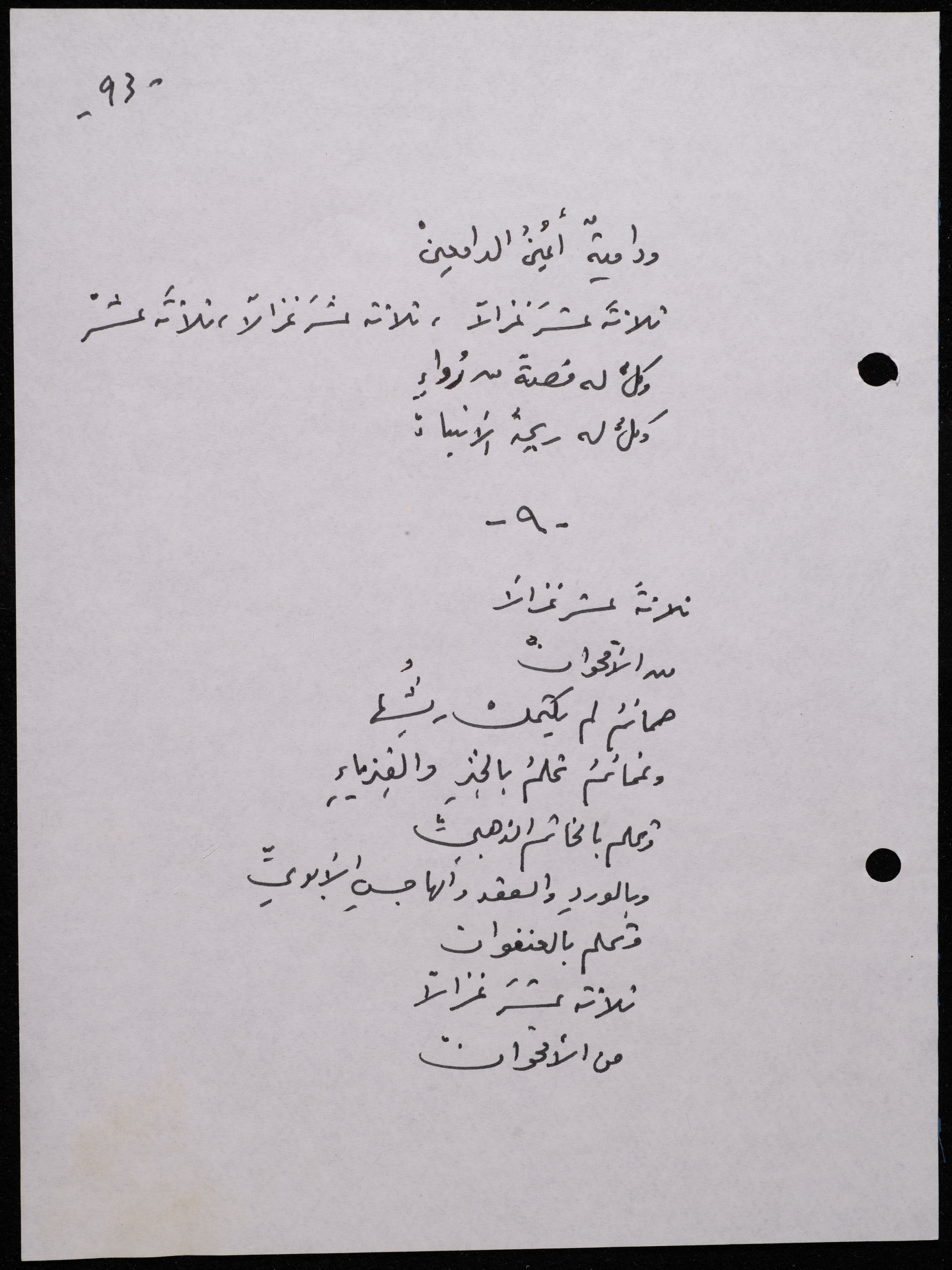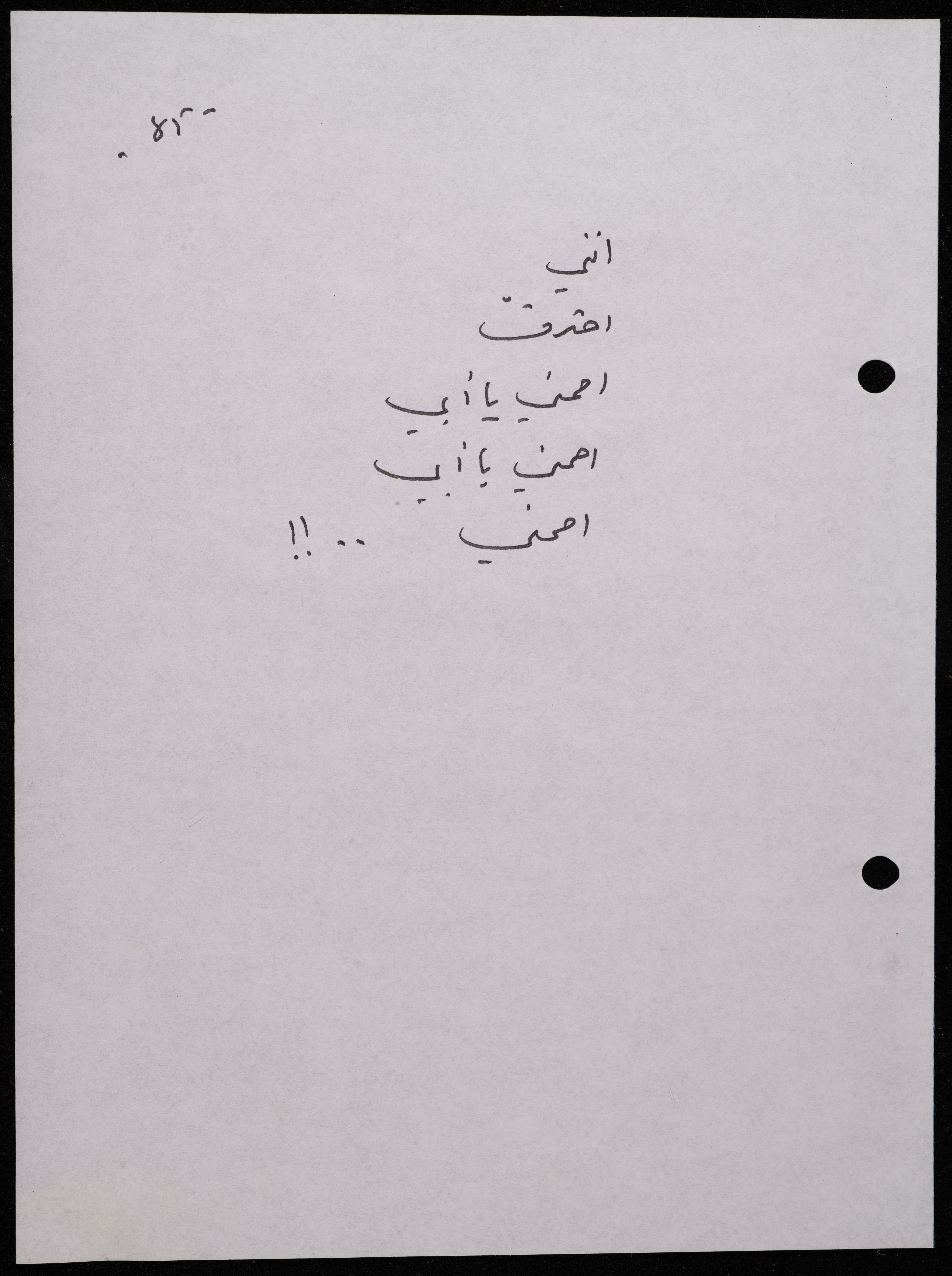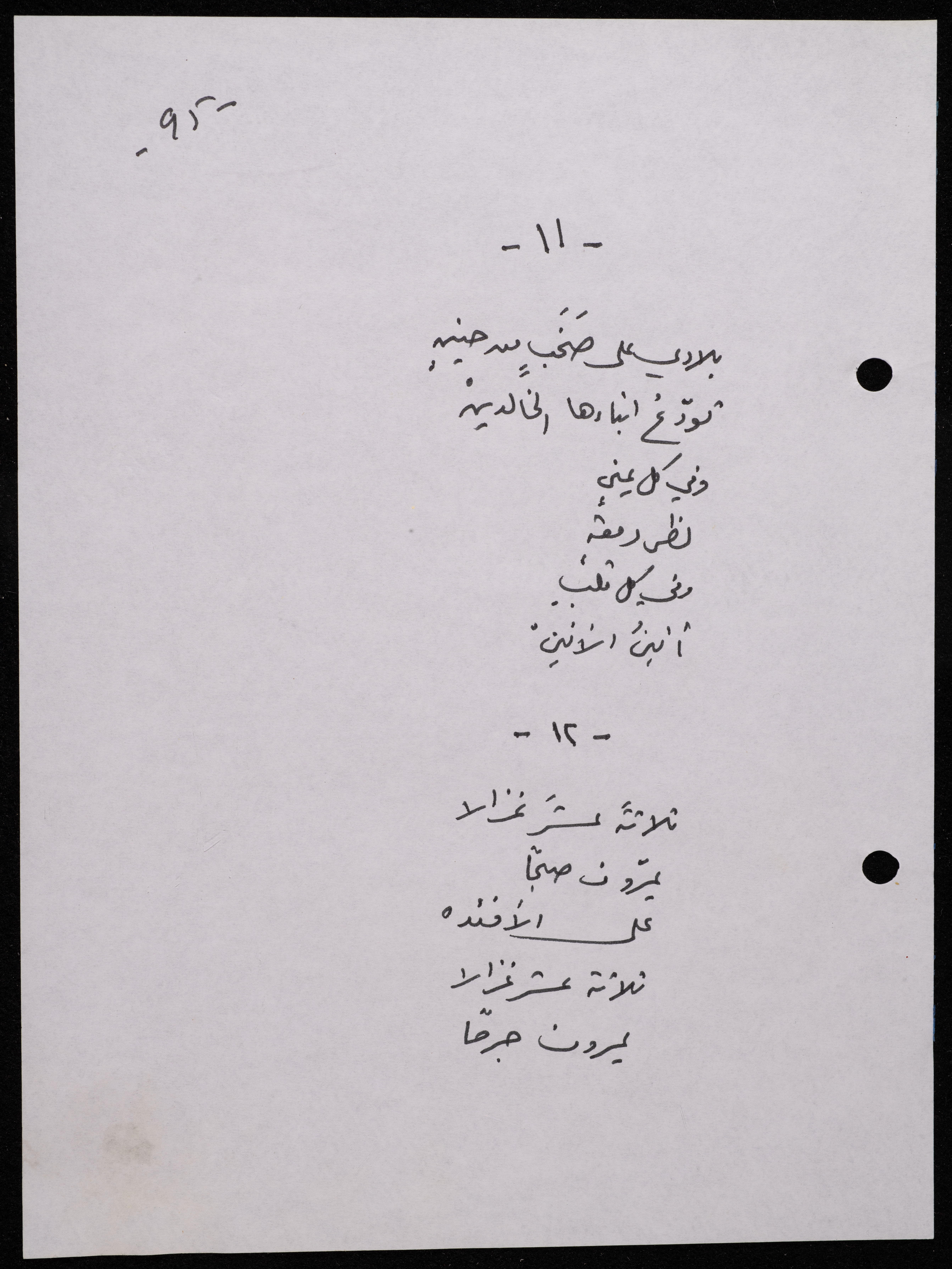 Handwritten, this 188-page archival item documents a poetry collection by Shakib Jahshan titled "Yotteloon Awsematan Min Shatha (They Come as Fragrant Medals)". The first section of the collection is titled "Kalimaton Fil-Asifa (Words In the Storm)", while the second is titled "Ihmeni Ya Abi (Protect Me, Father)".