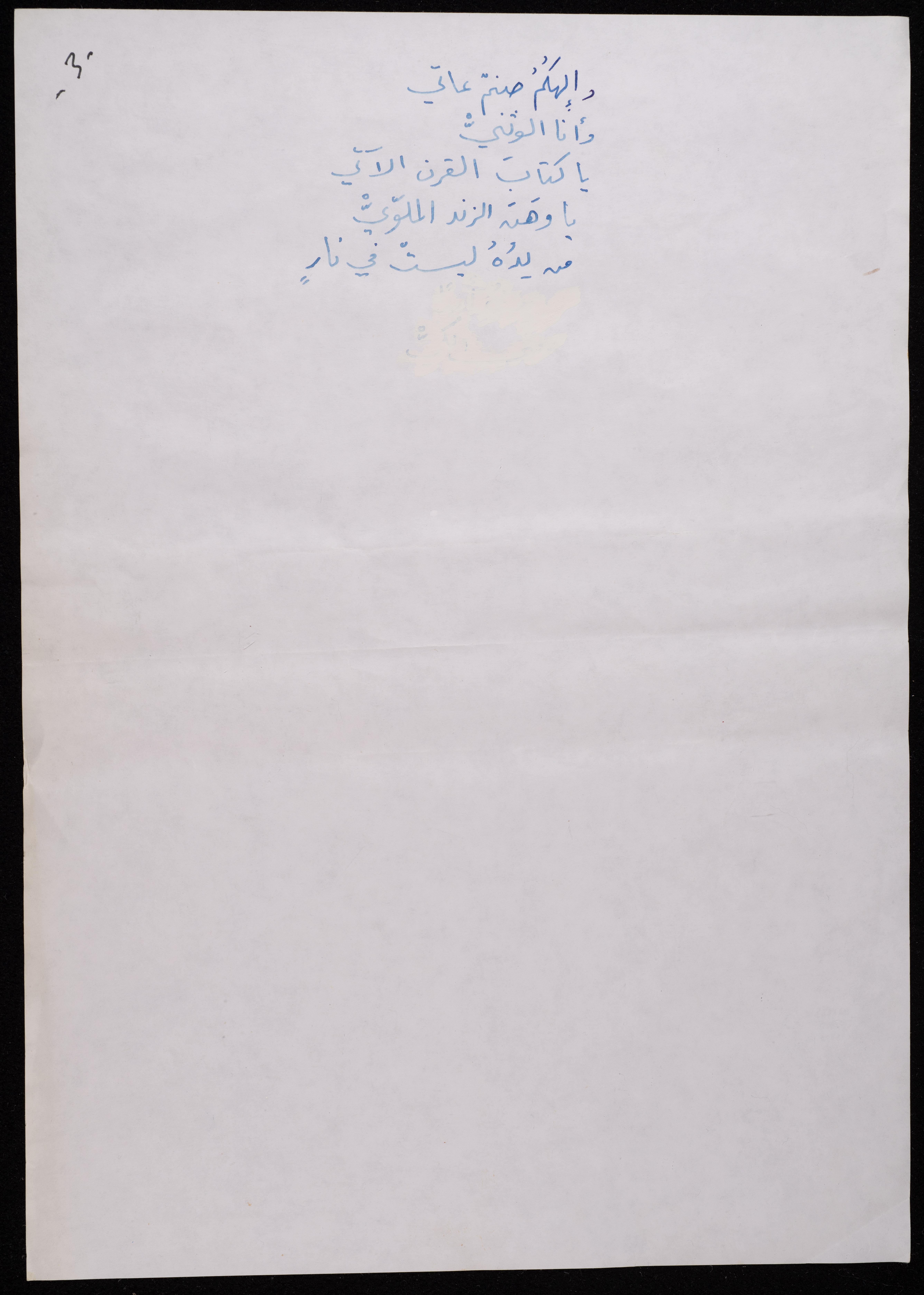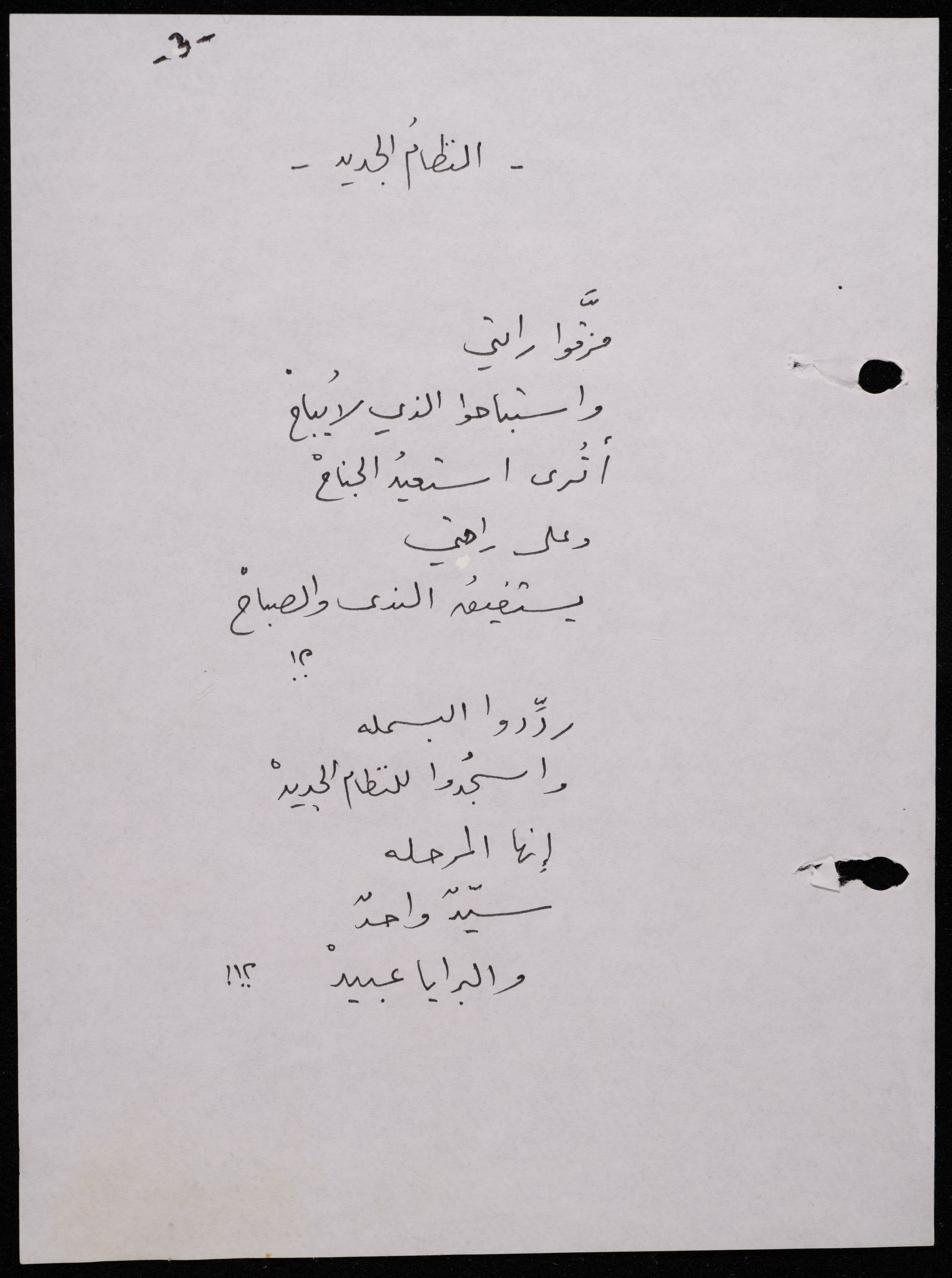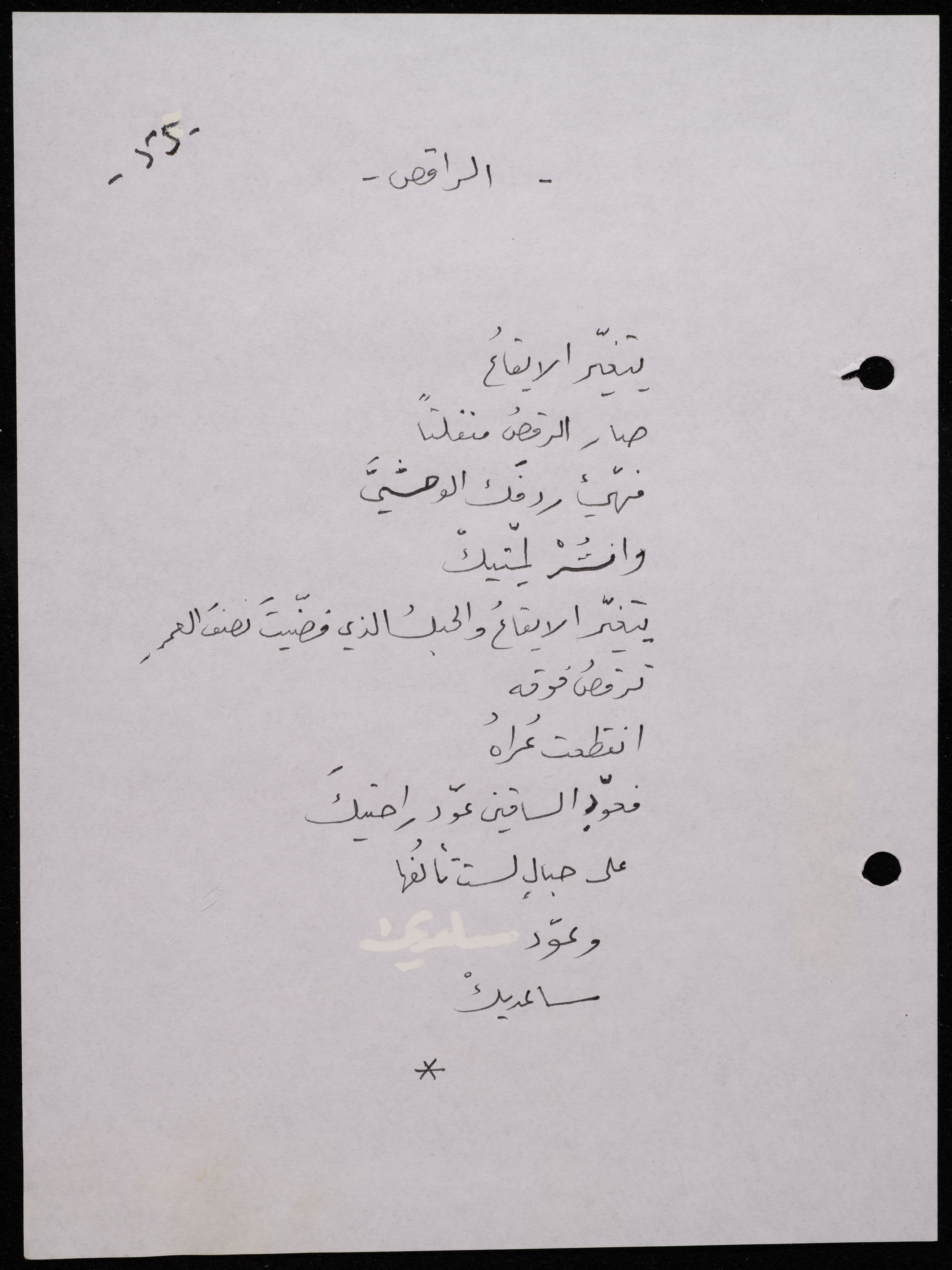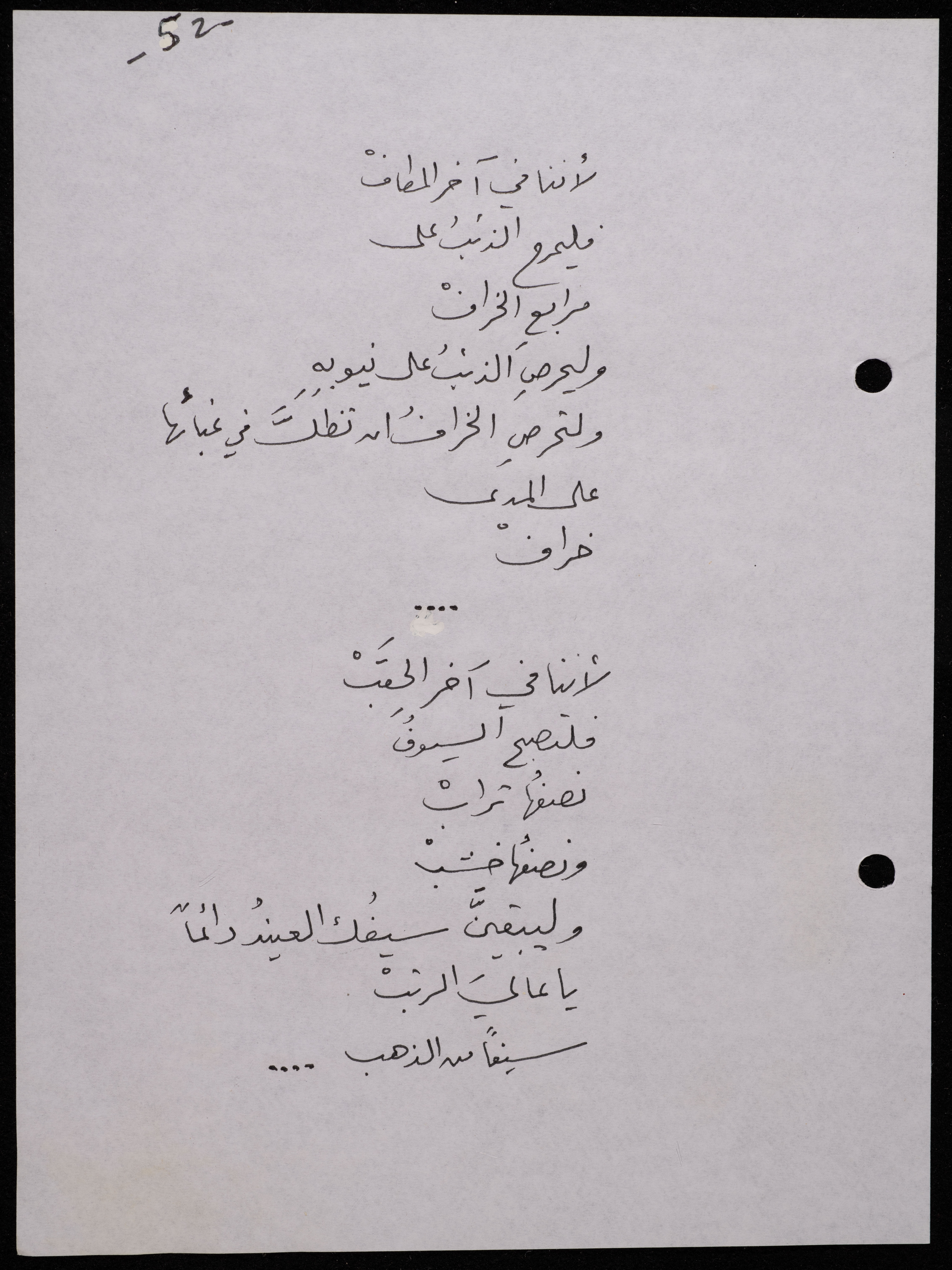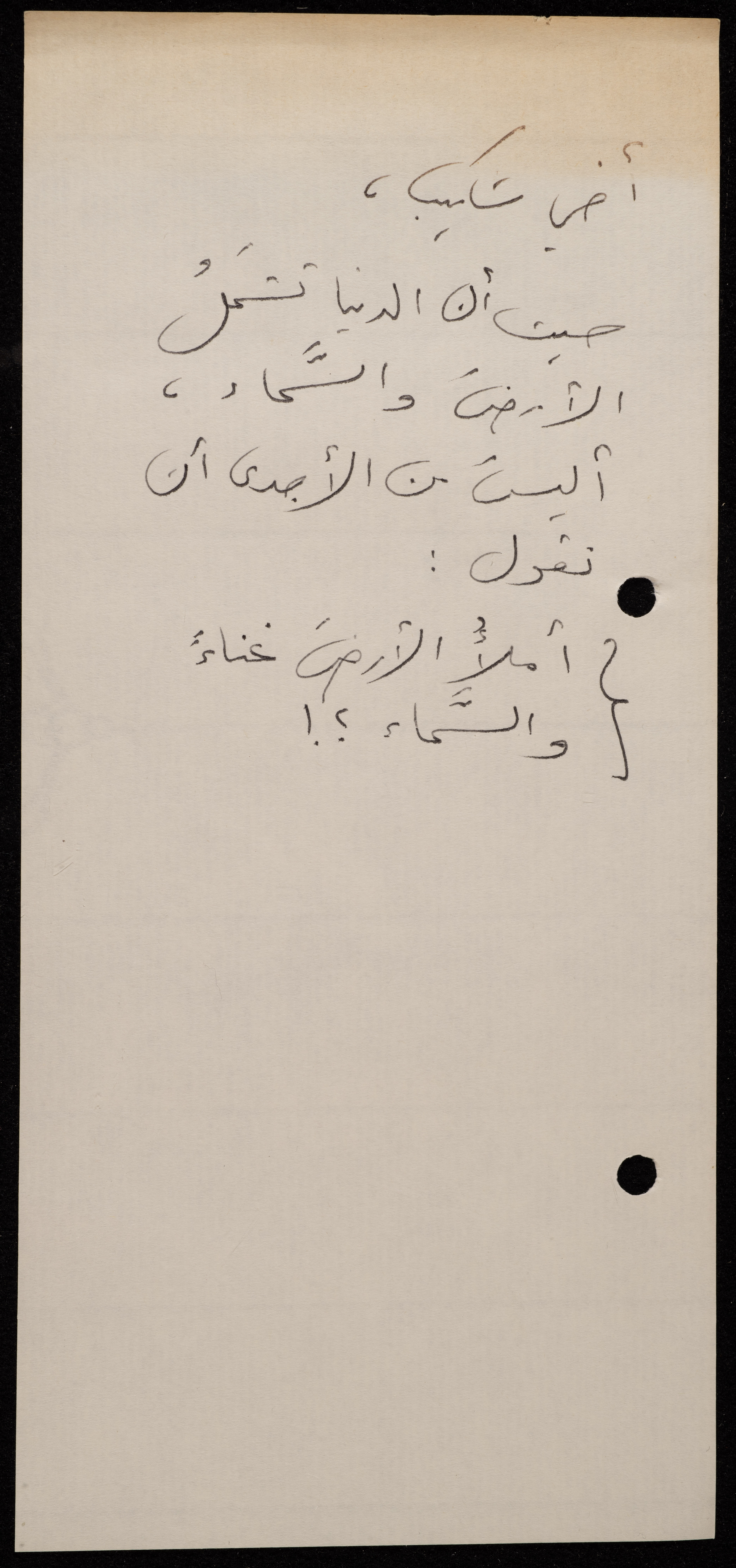 Handwritten, this 188-page archival item documents a poetry collection by Shakib Jahshan titled "Yotteloon Awsematan Min Shatha (They Come as Fragrant Medals)". The first section of the collection is titled "Kalimaton Fil-Asifa (Words In the Storm)", while the second is titled "Ihmeni Ya Abi (Protect Me, Father)".