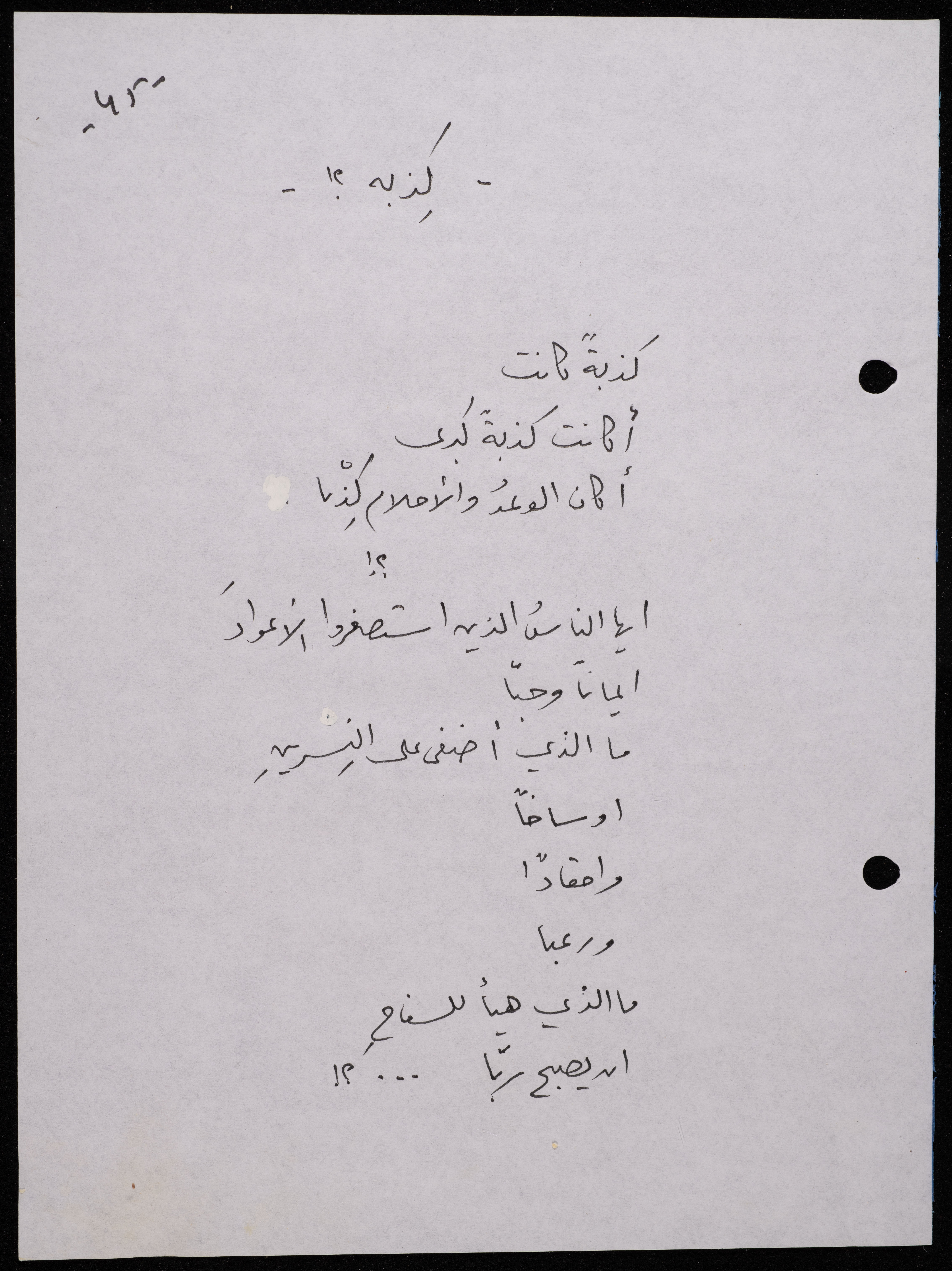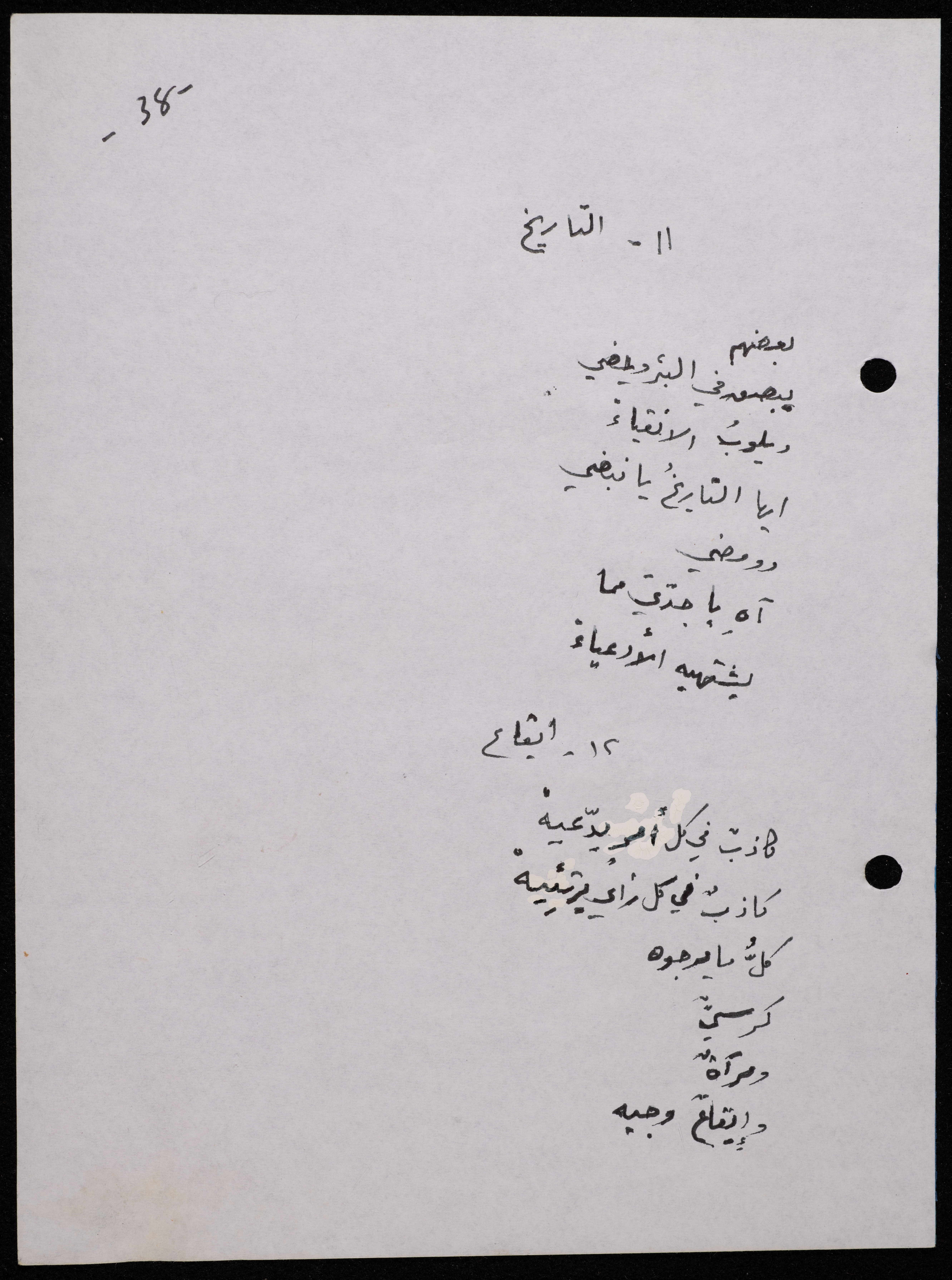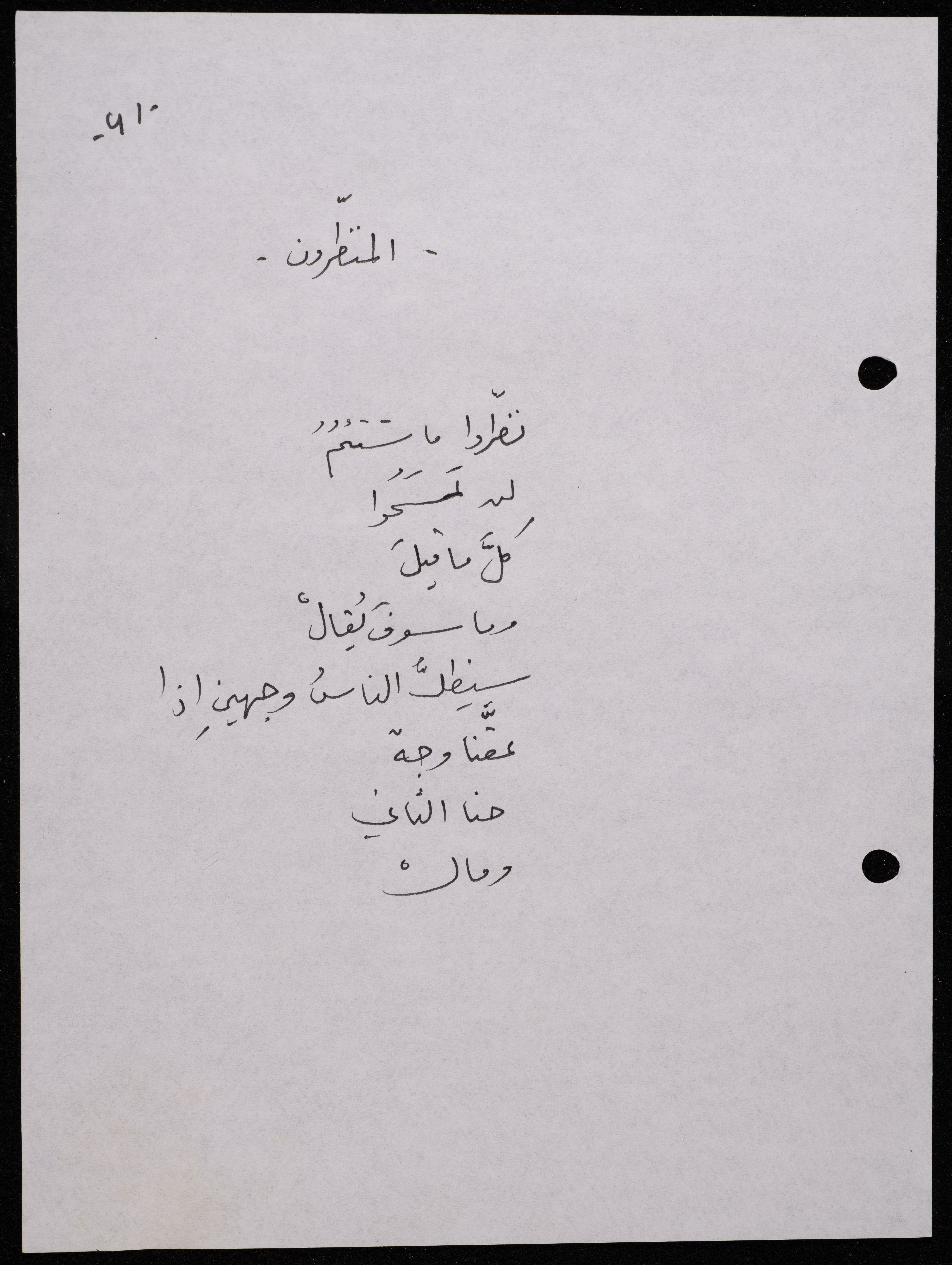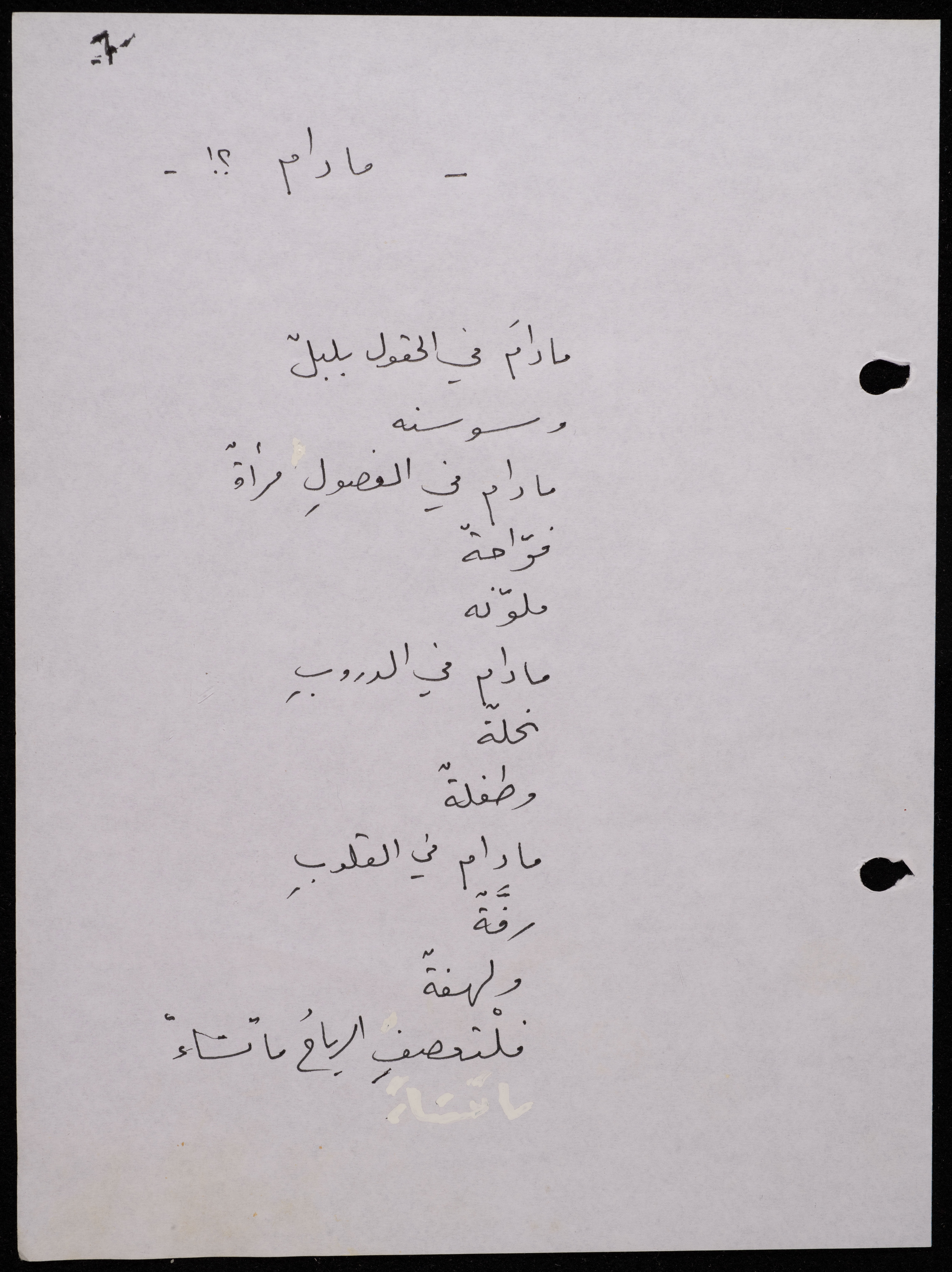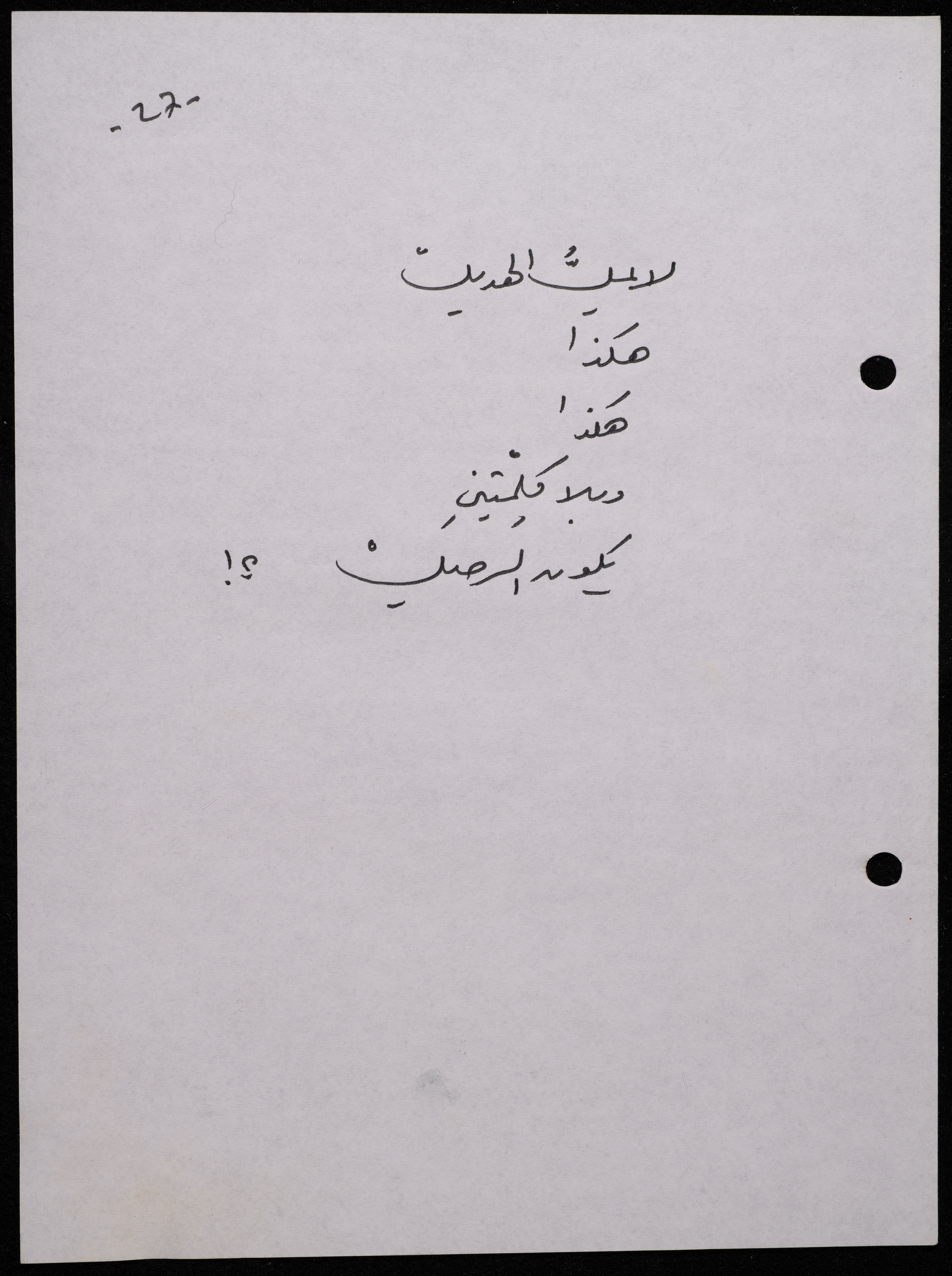 Handwritten, this 188-page archival item documents a poetry collection by Shakib Jahshan titled "Yotteloon Awsematan Min Shatha (They Come as Fragrant Medals)". The first section of the collection is titled "Kalimaton Fil-Asifa (Words In the Storm)", while the second is titled "Ihmeni Ya Abi (Protect Me, Father)".