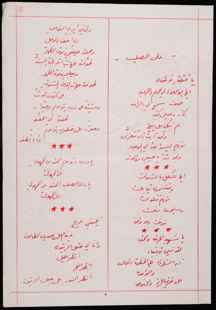 توثق هذه المادة الأرشيفية في 4 صفحات، قصيدة غير مؤرخة لشكيب جهشان، بعنوان "على الصليب".