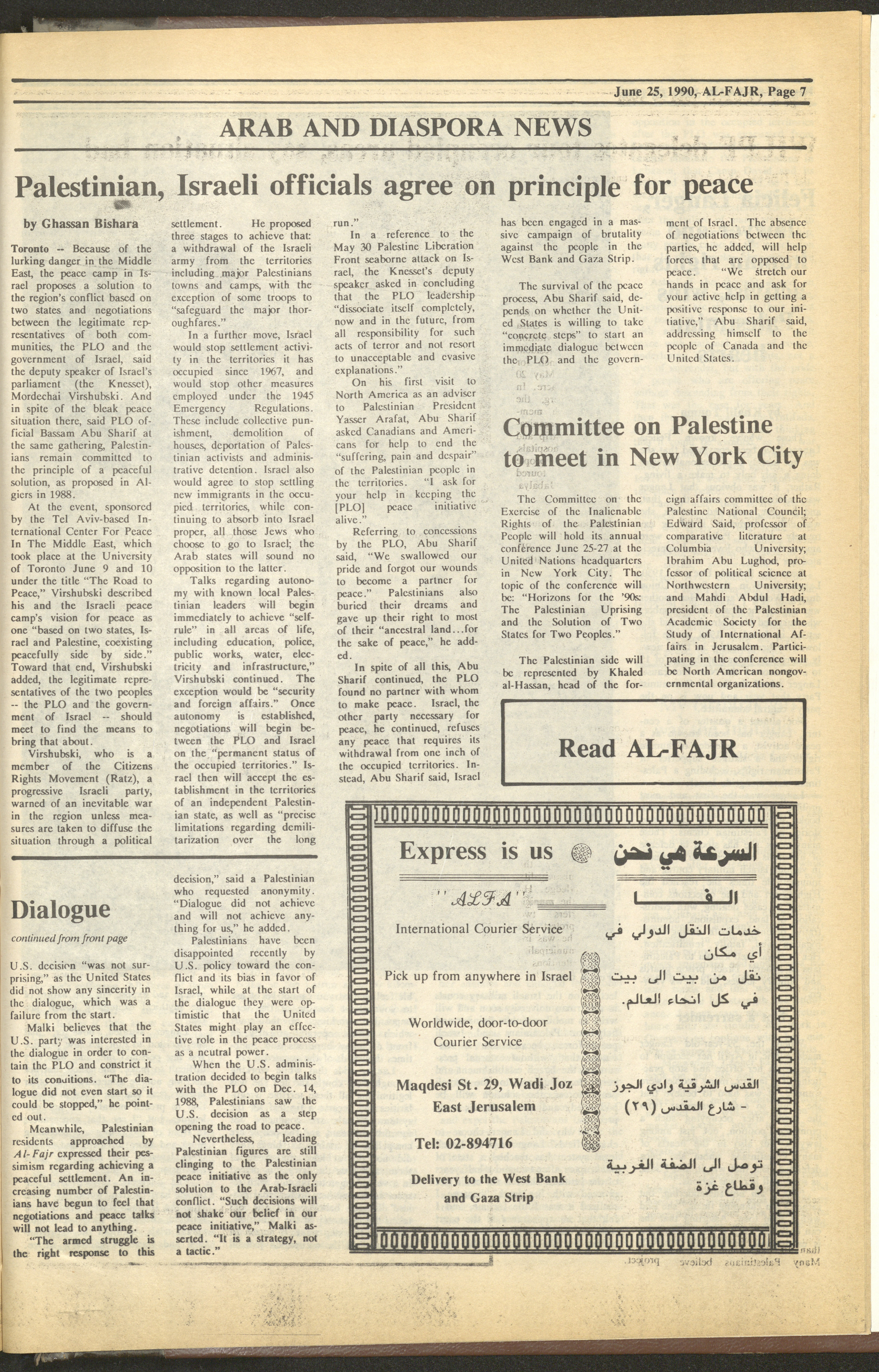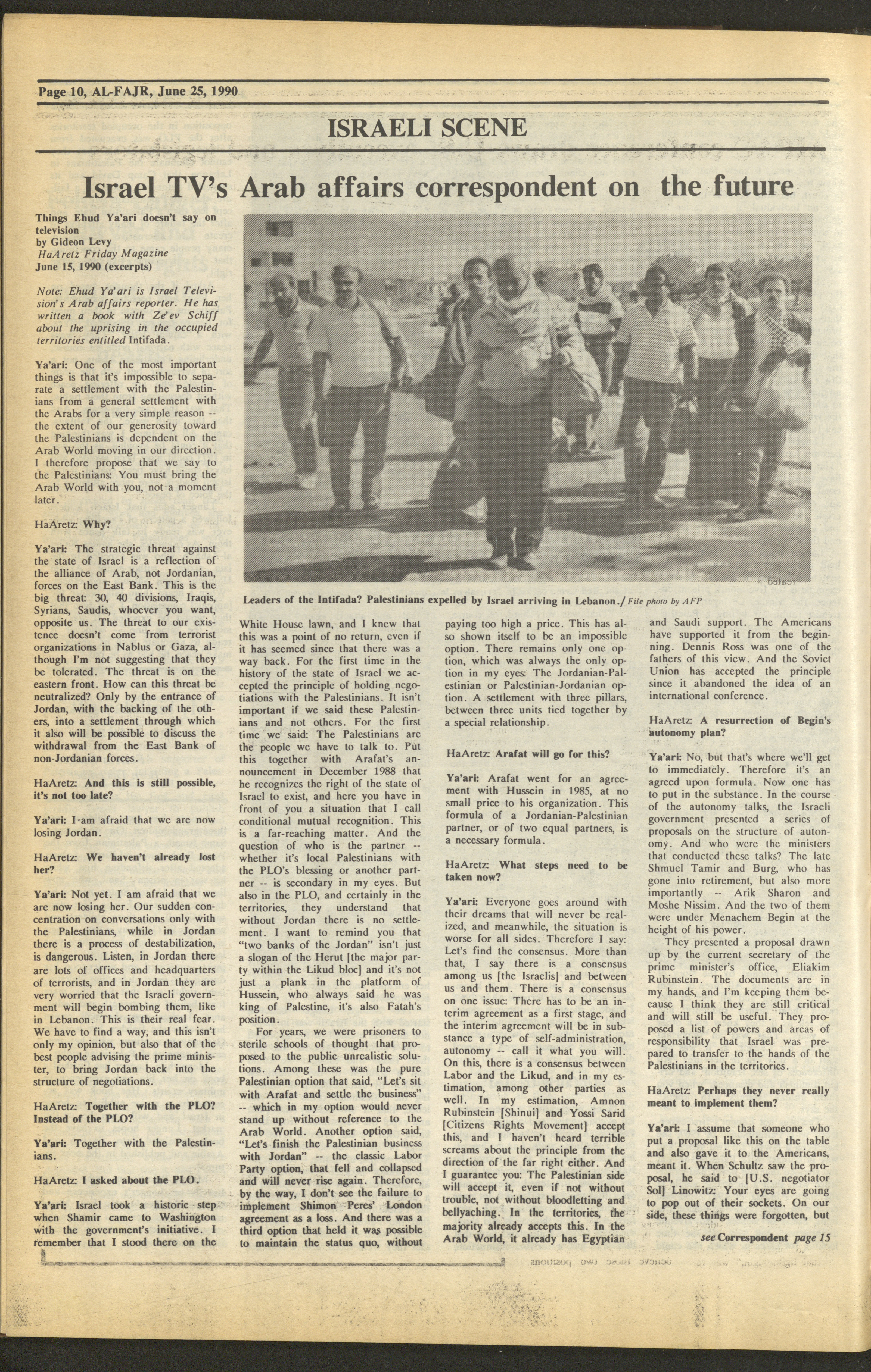 Issue 527 of al-Fajr Newspaper, 25 June 1990