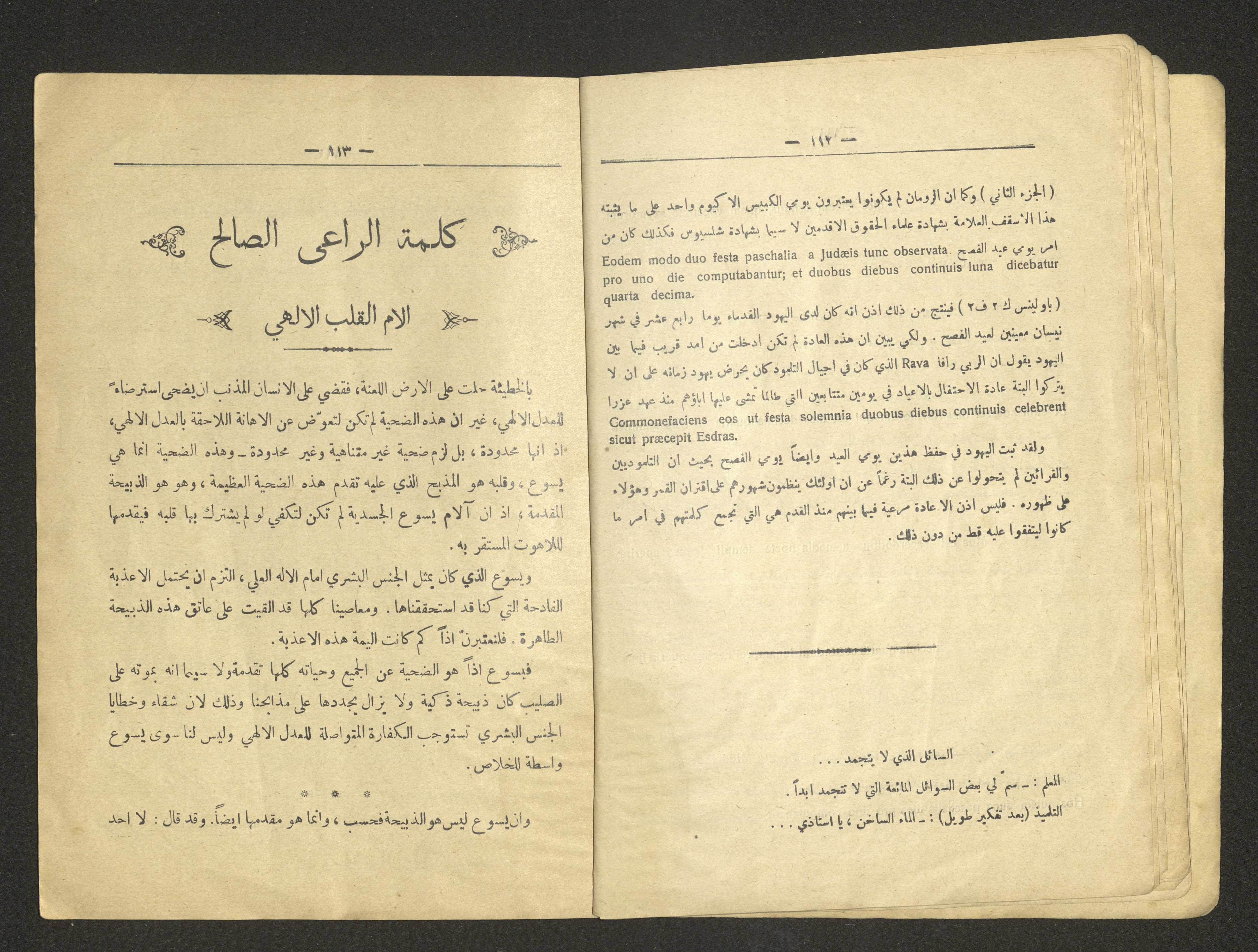 Issued in Jerusalem for the month of March 1934, this archival item shows issue 108 of the Catholic Raqeeb Suhyoun Magazine, which contains different topics including the causes and consequences of the renaissance of Europe.