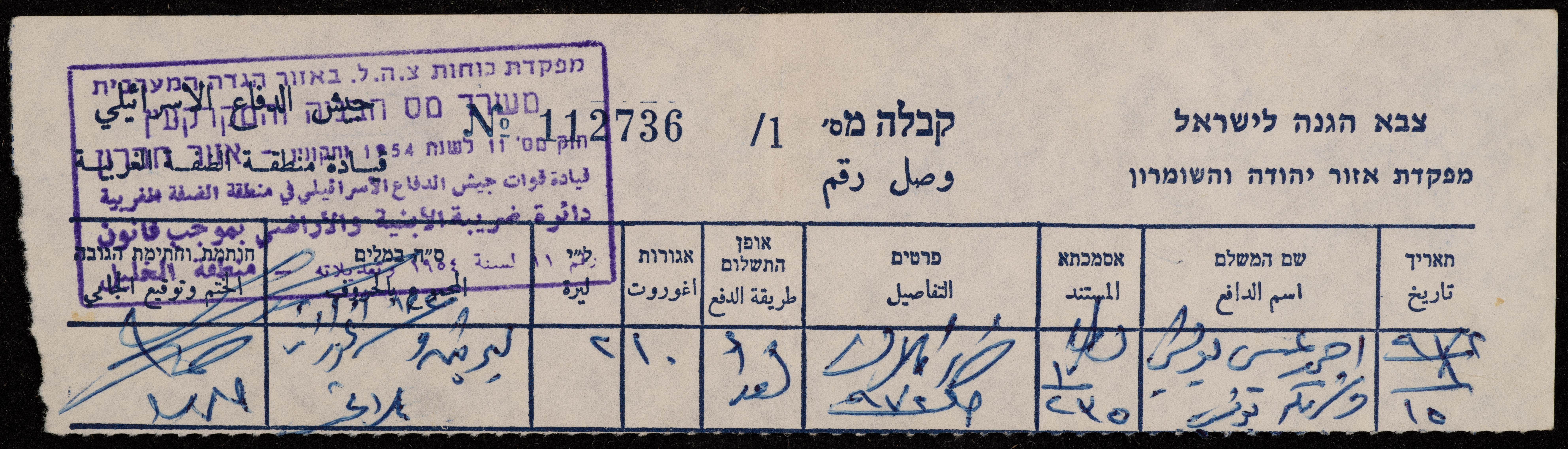 Property Tax Payment Receipt, Hebron, 15 August 1972