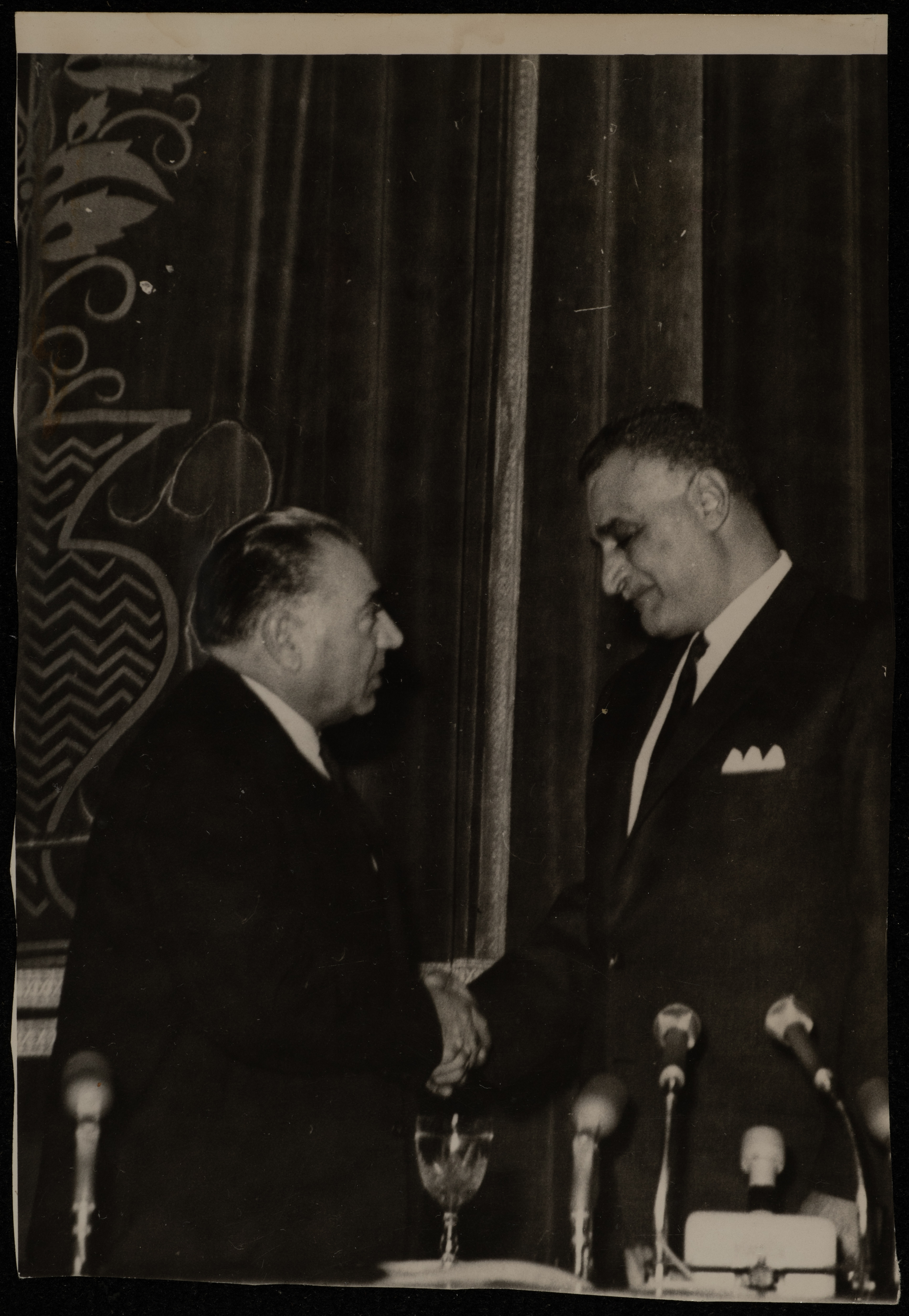 يحيى حمودة مع جمال عبد الناصر، رئيس مصر، في ستينيات القرن العشرين.