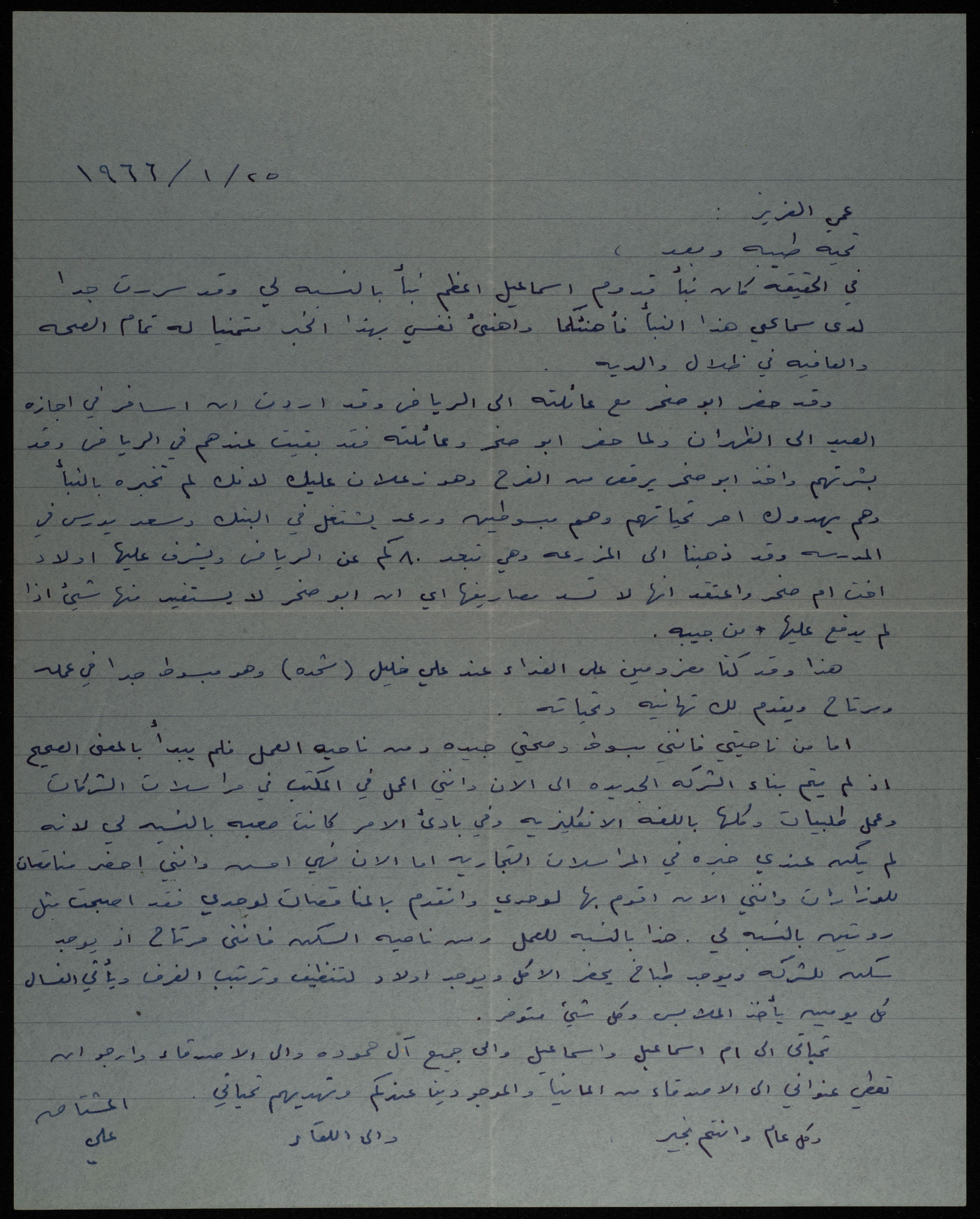 A Letter from Ali Hammoudeh to Yahya Hammoudeh, Riyadh, 25 January 1966