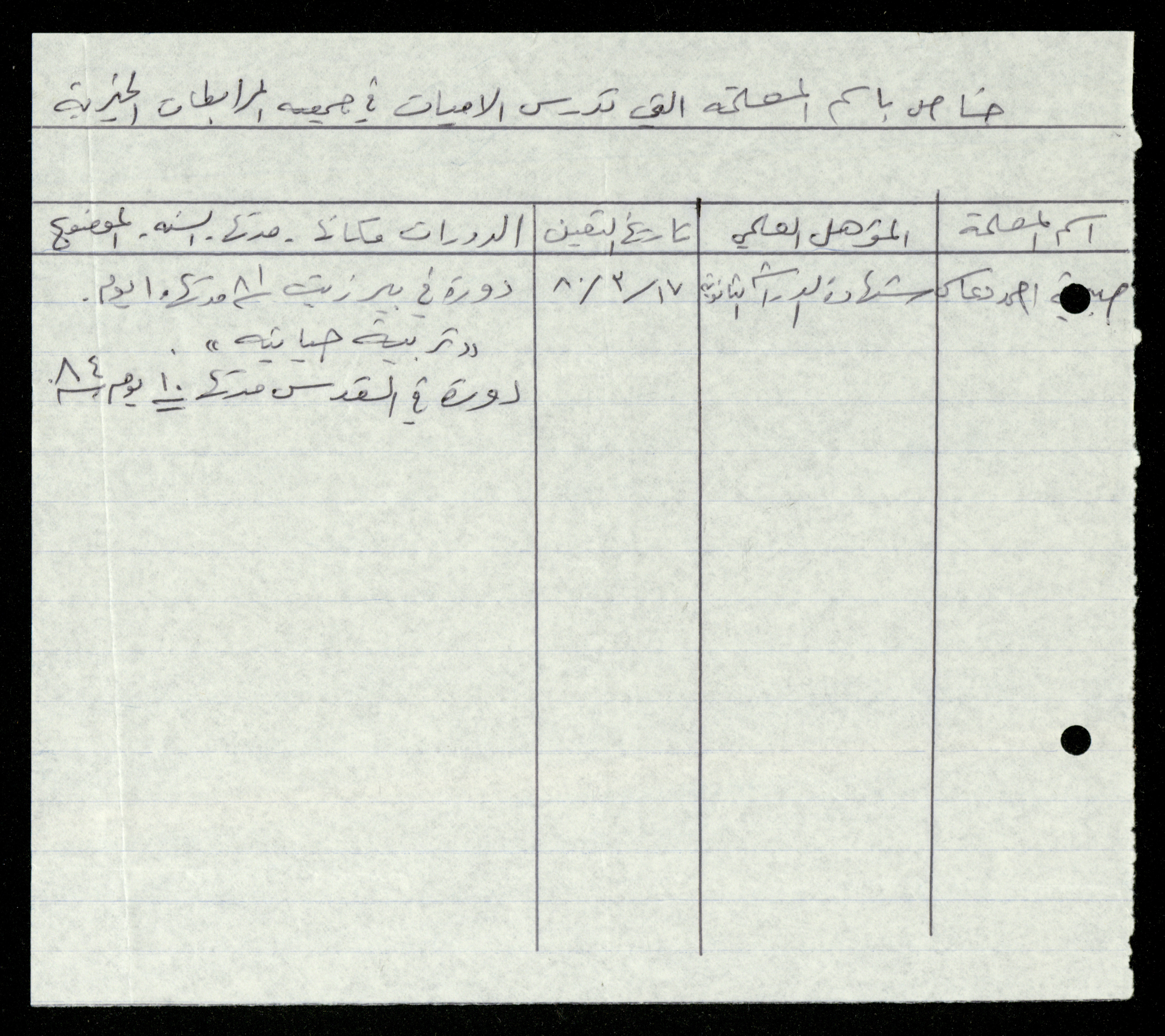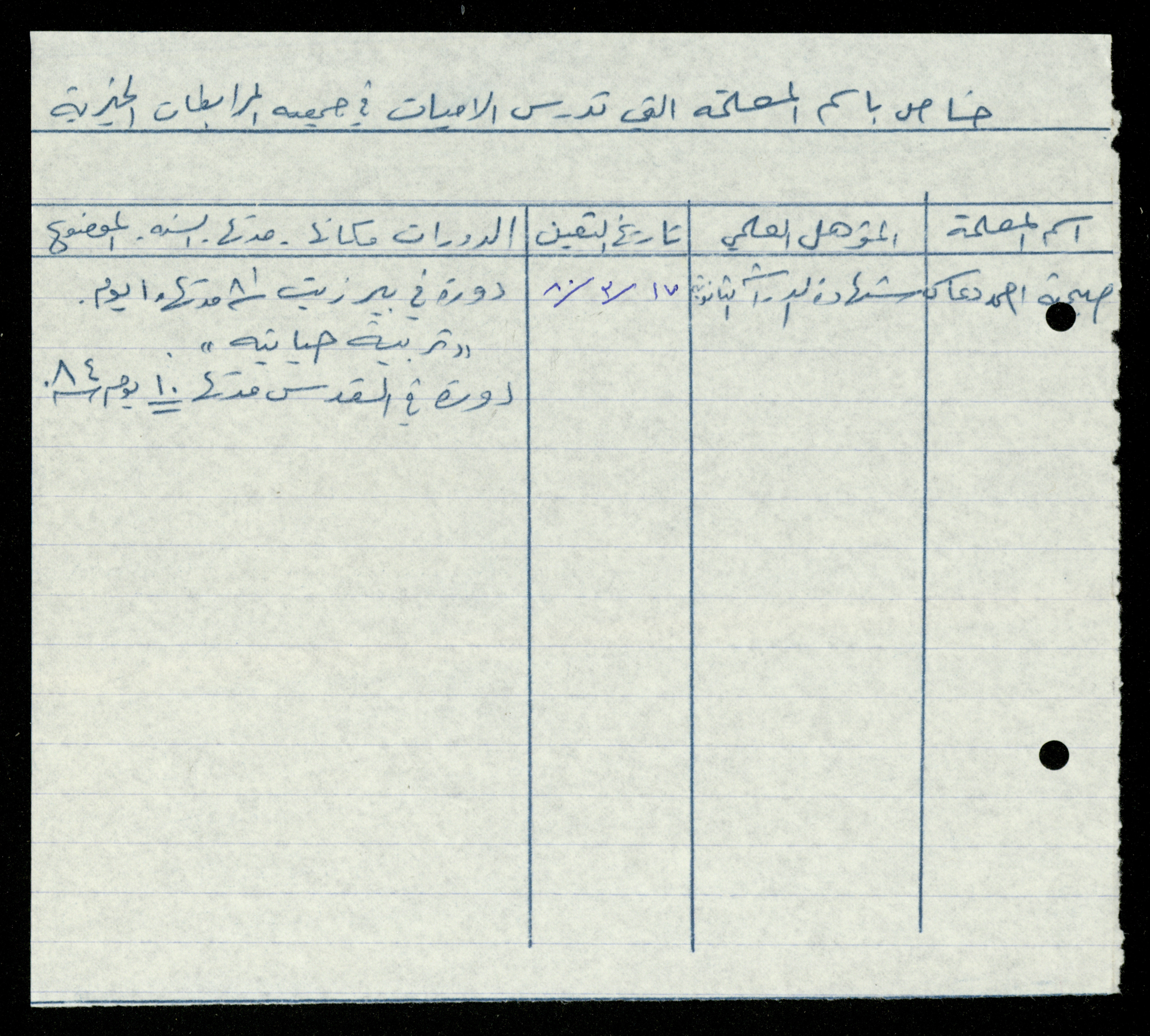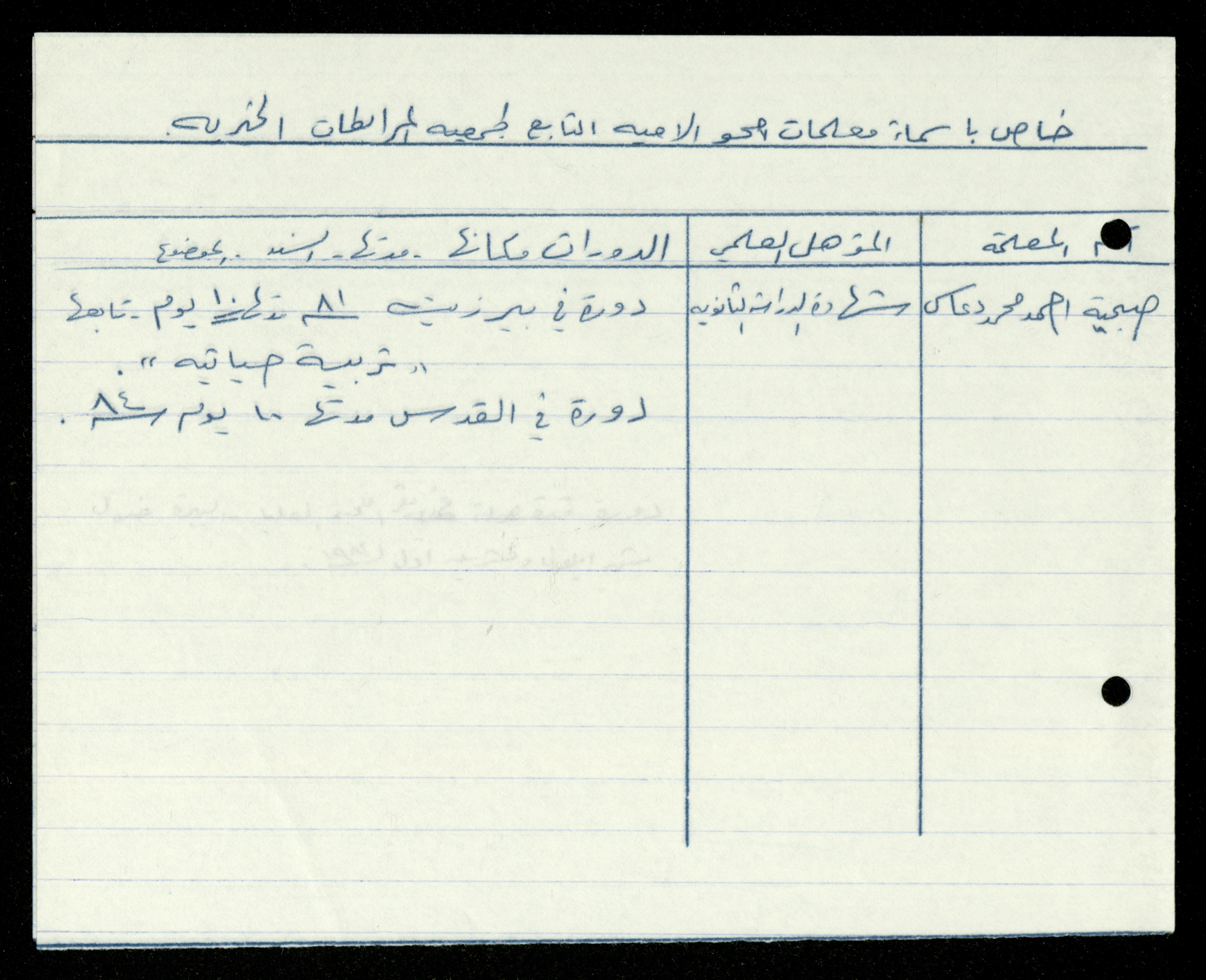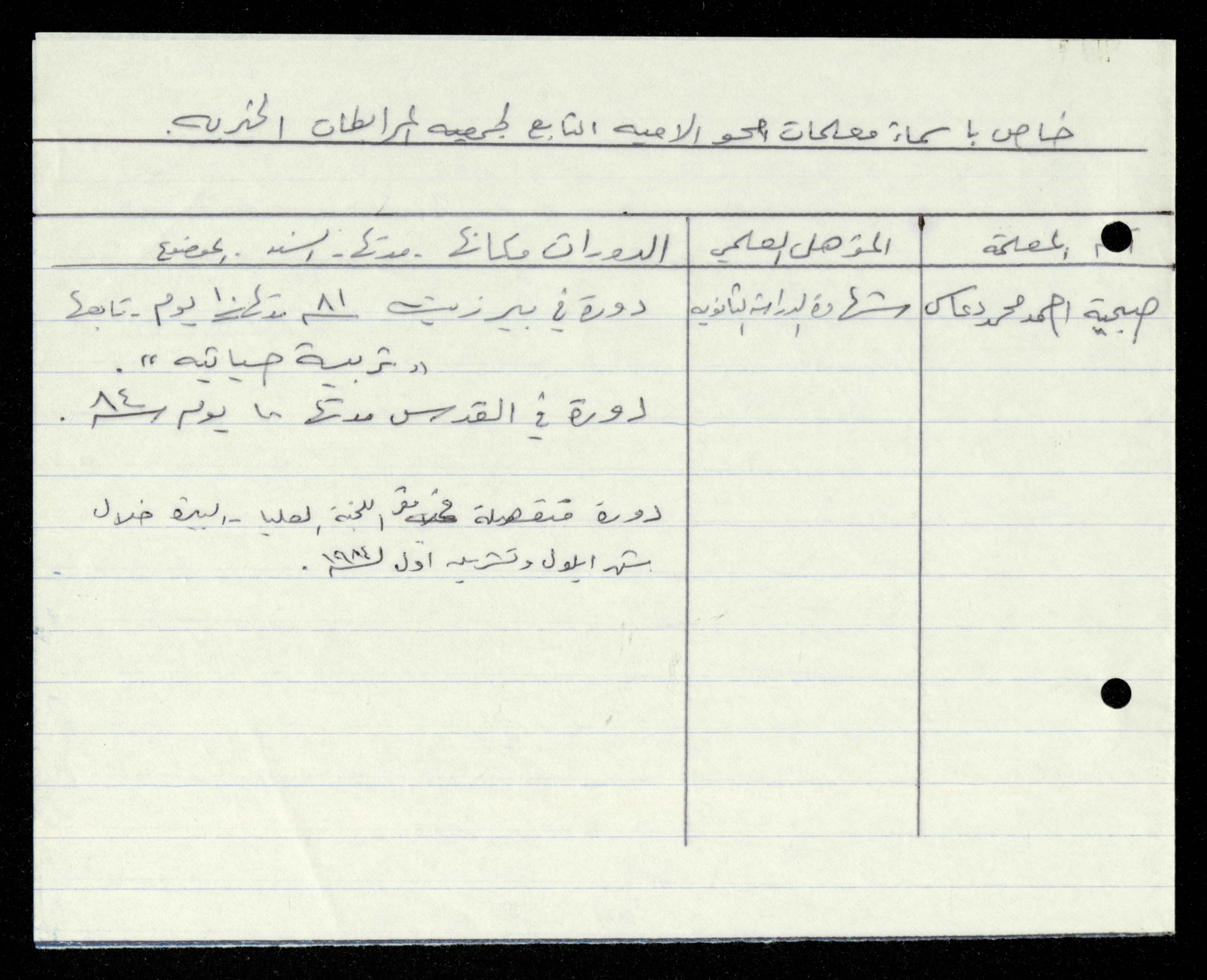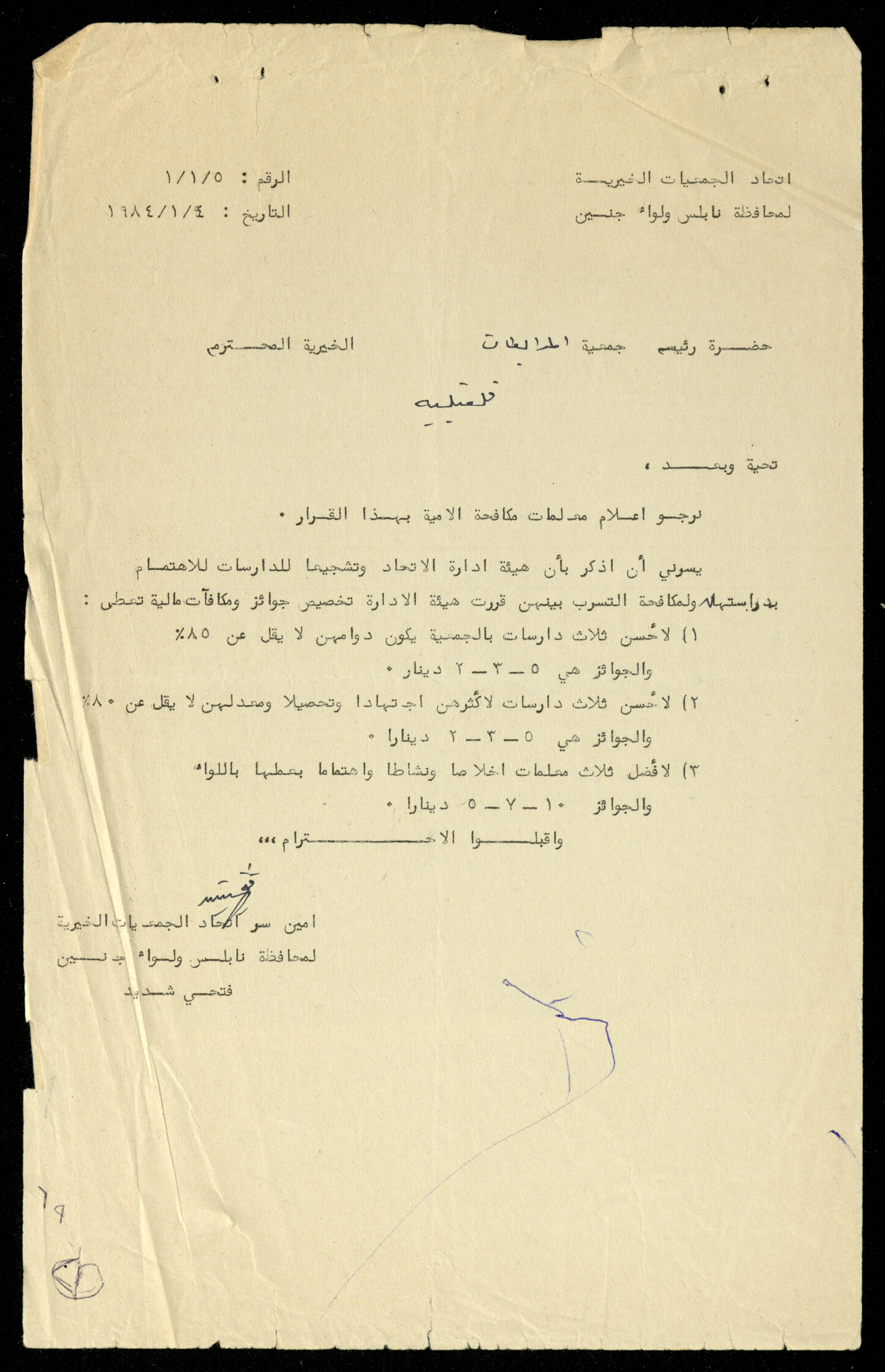 The Illiterate Division File, al-Murabitat Charitable Society, Qaqilya, 1982-1987