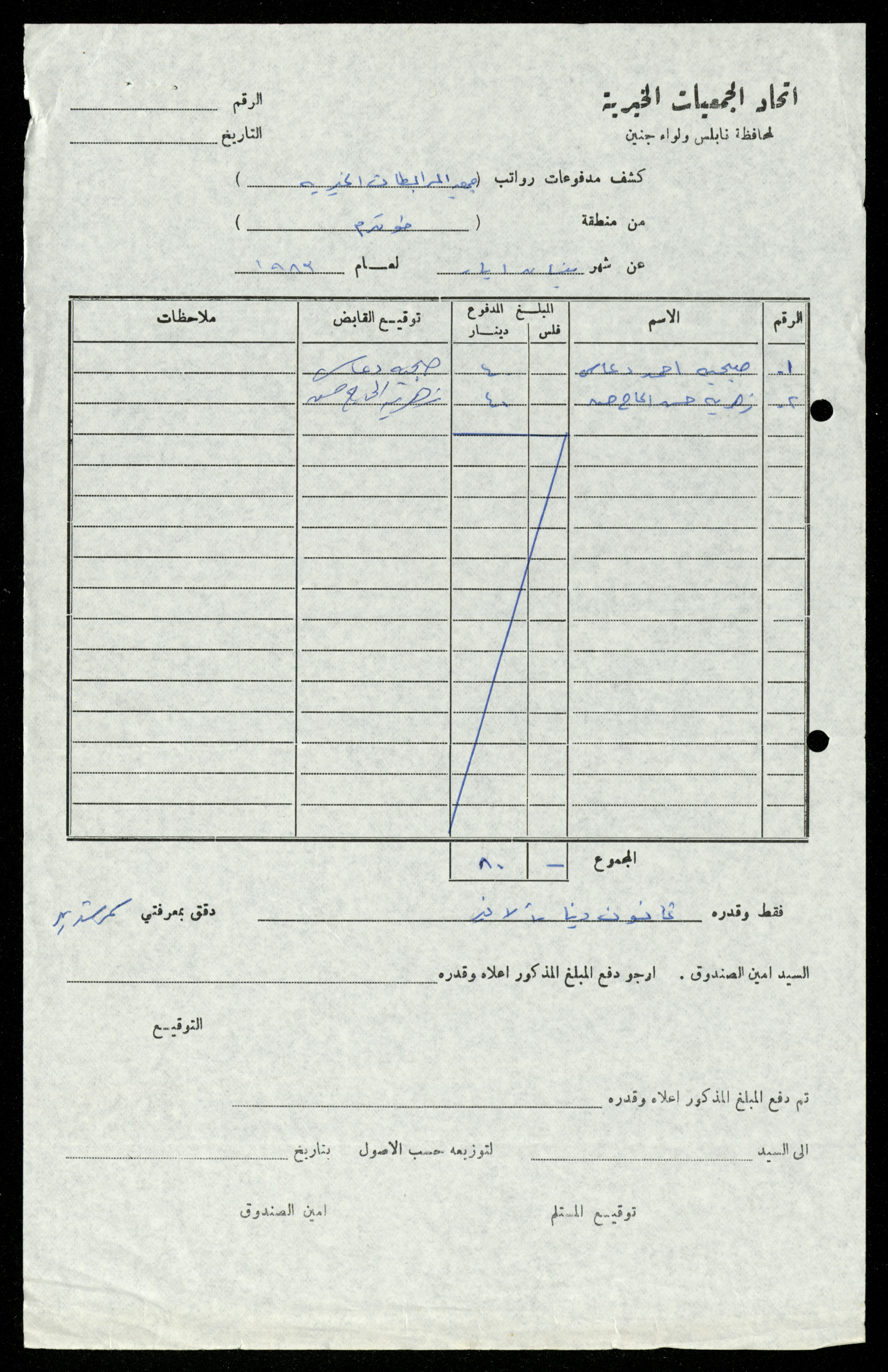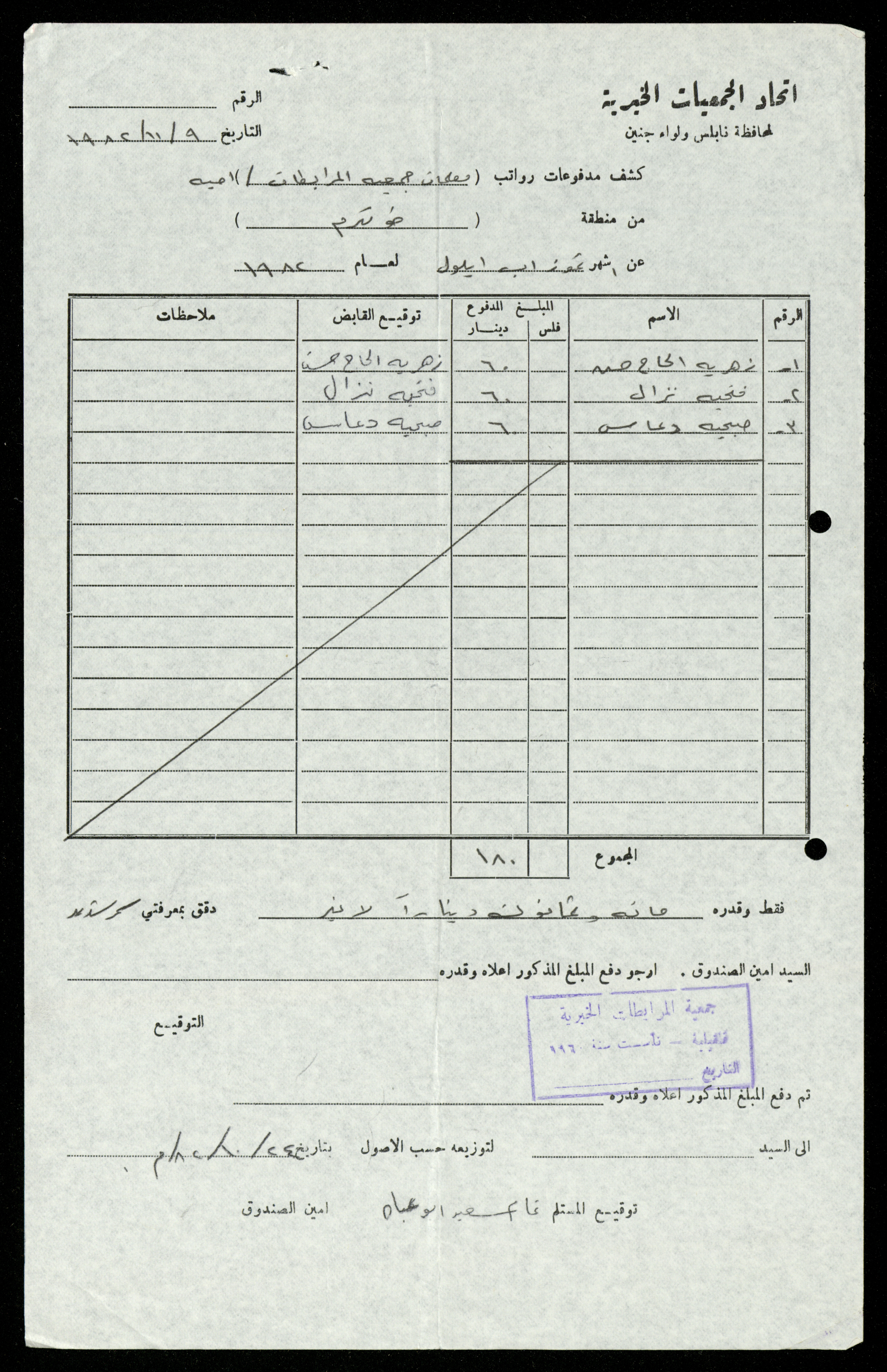 Ozrail, Samar. "The al-Murabitat Charitable Society-Qaqilya Collection". Archival Inventory. 22 January 2023. The Palestinian Museum Digital Archive.