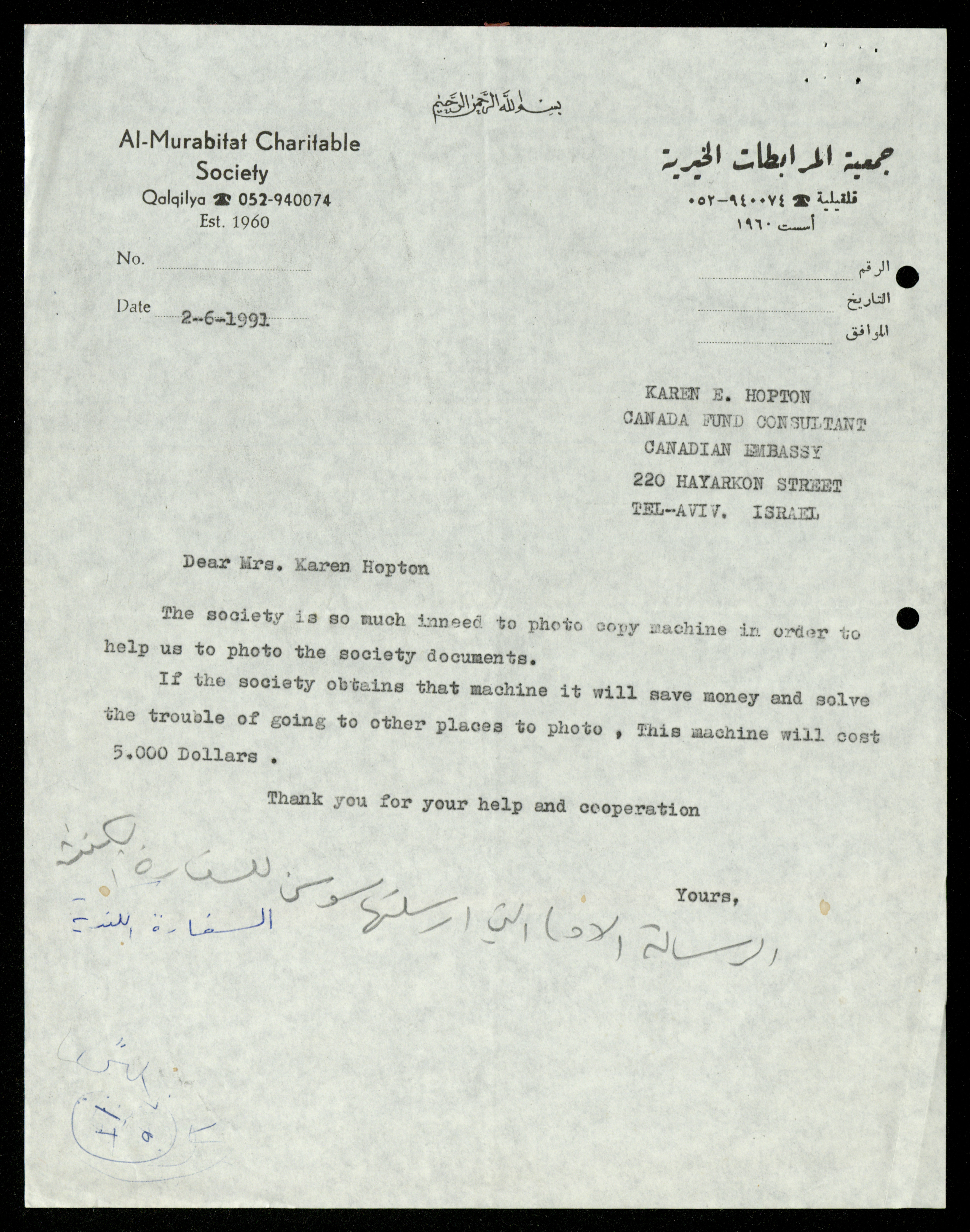 The File of the Canadian Embassy, al-Murabitat Charitable Society, 1989-1992