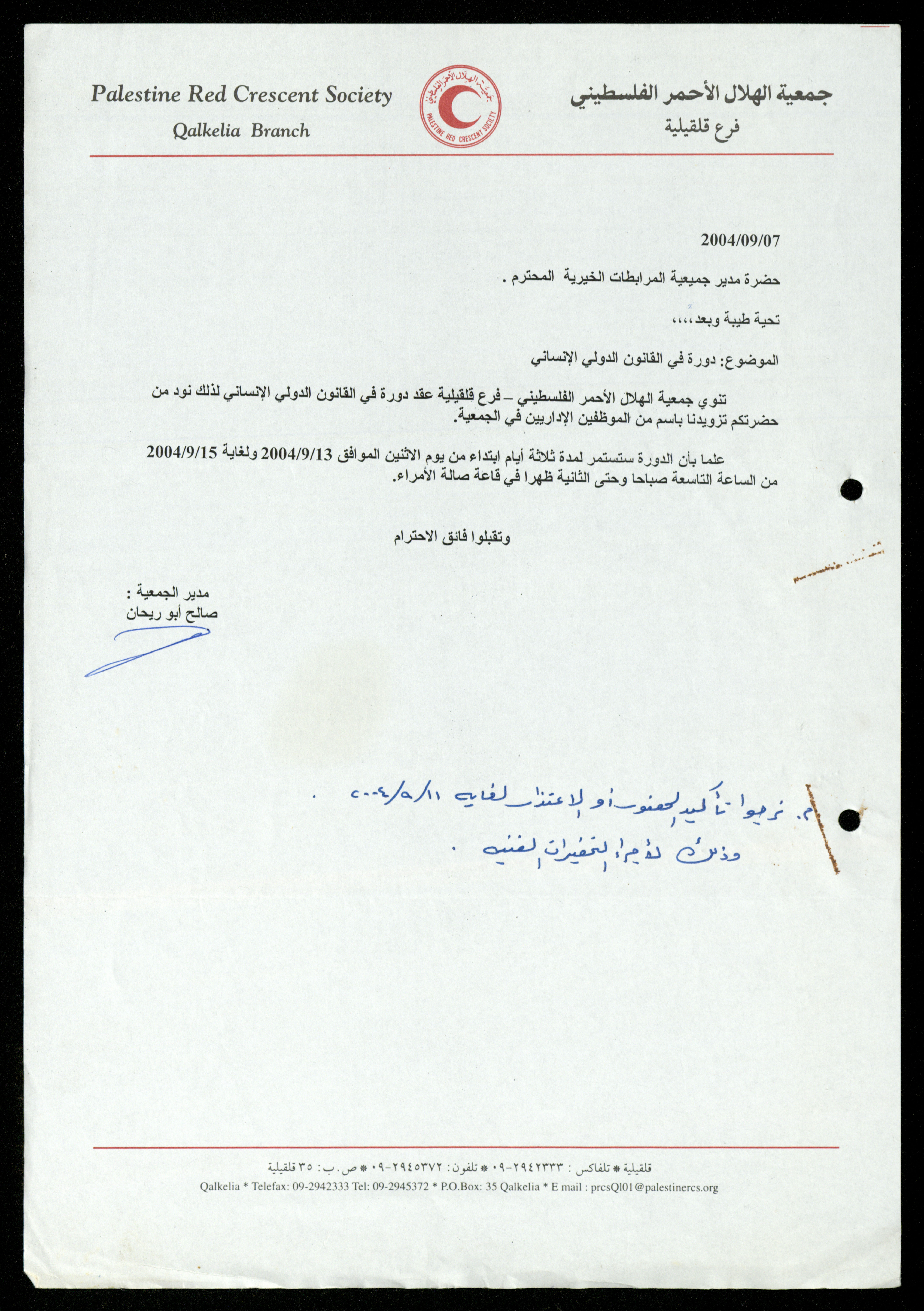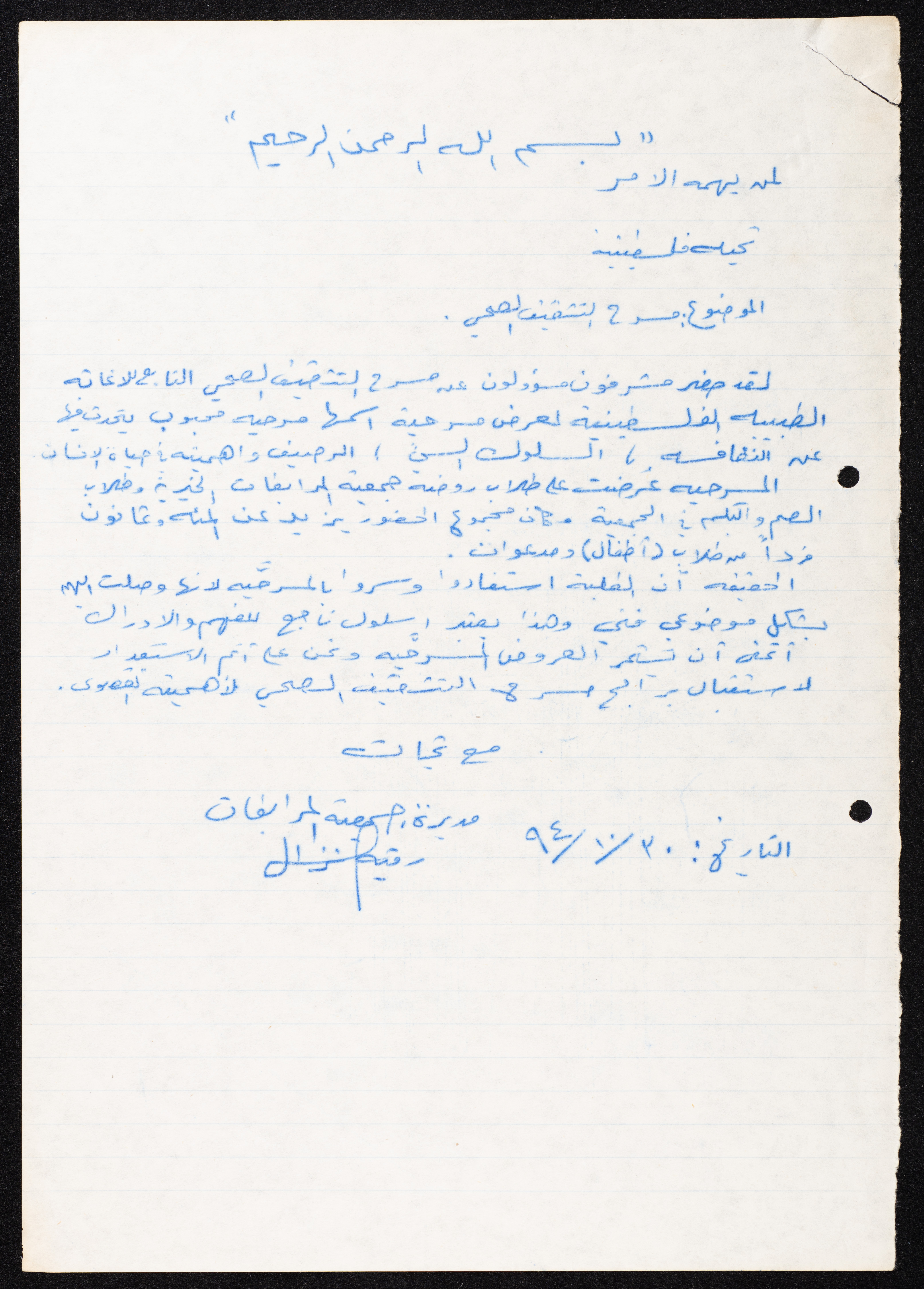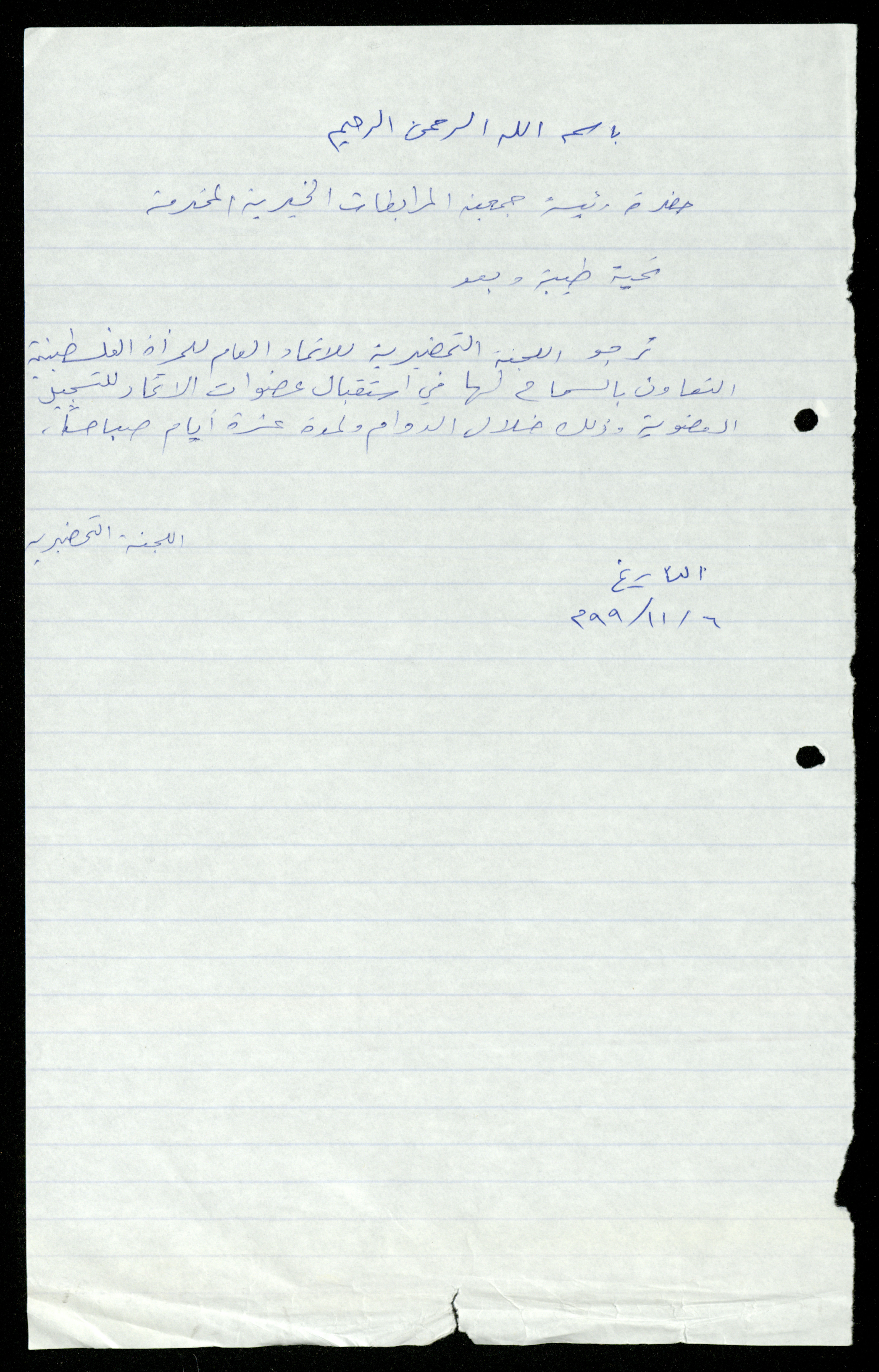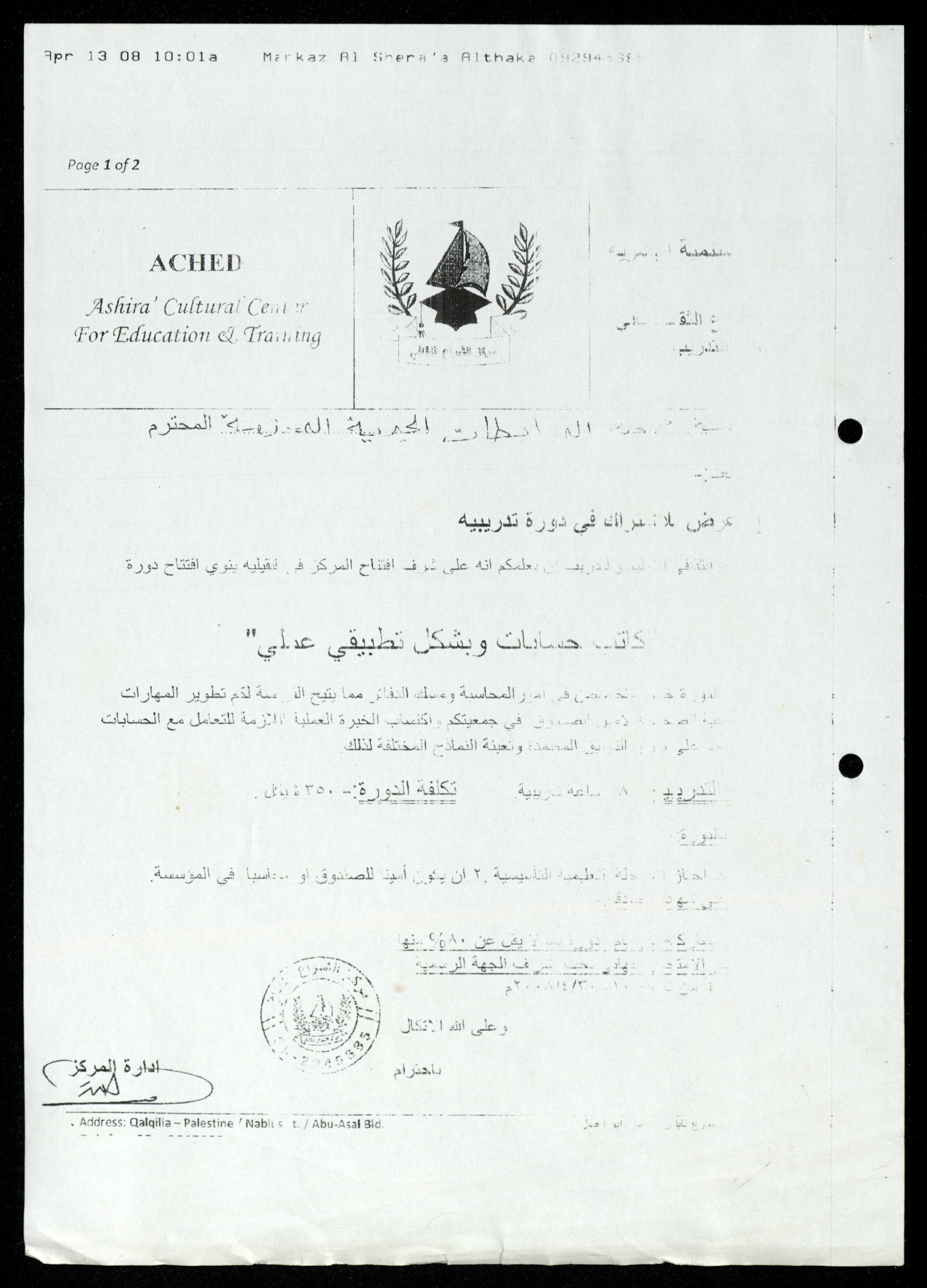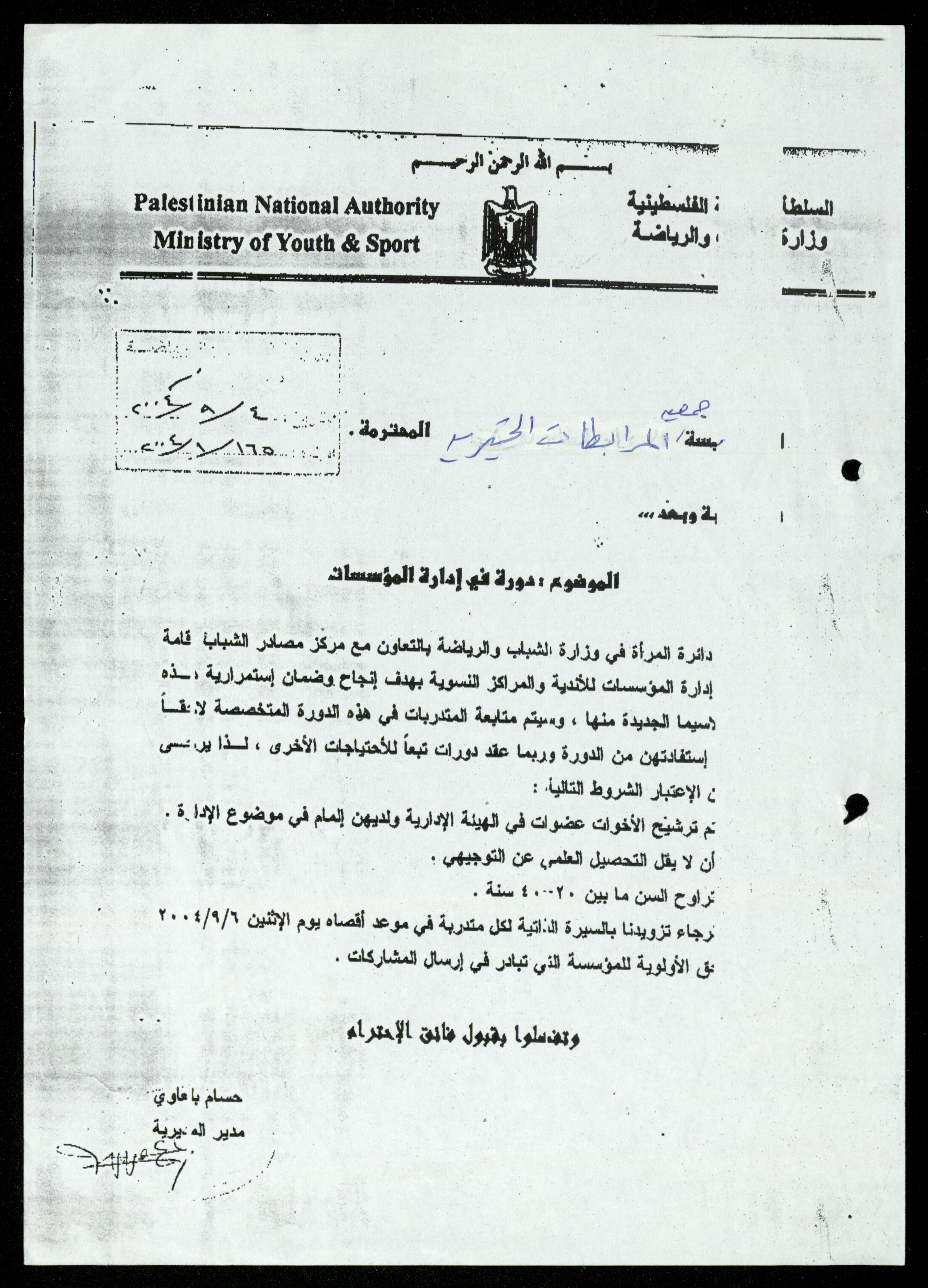 Correspondence File of al-Murabitat Charitable Society, Qalqilya, 1991-2008