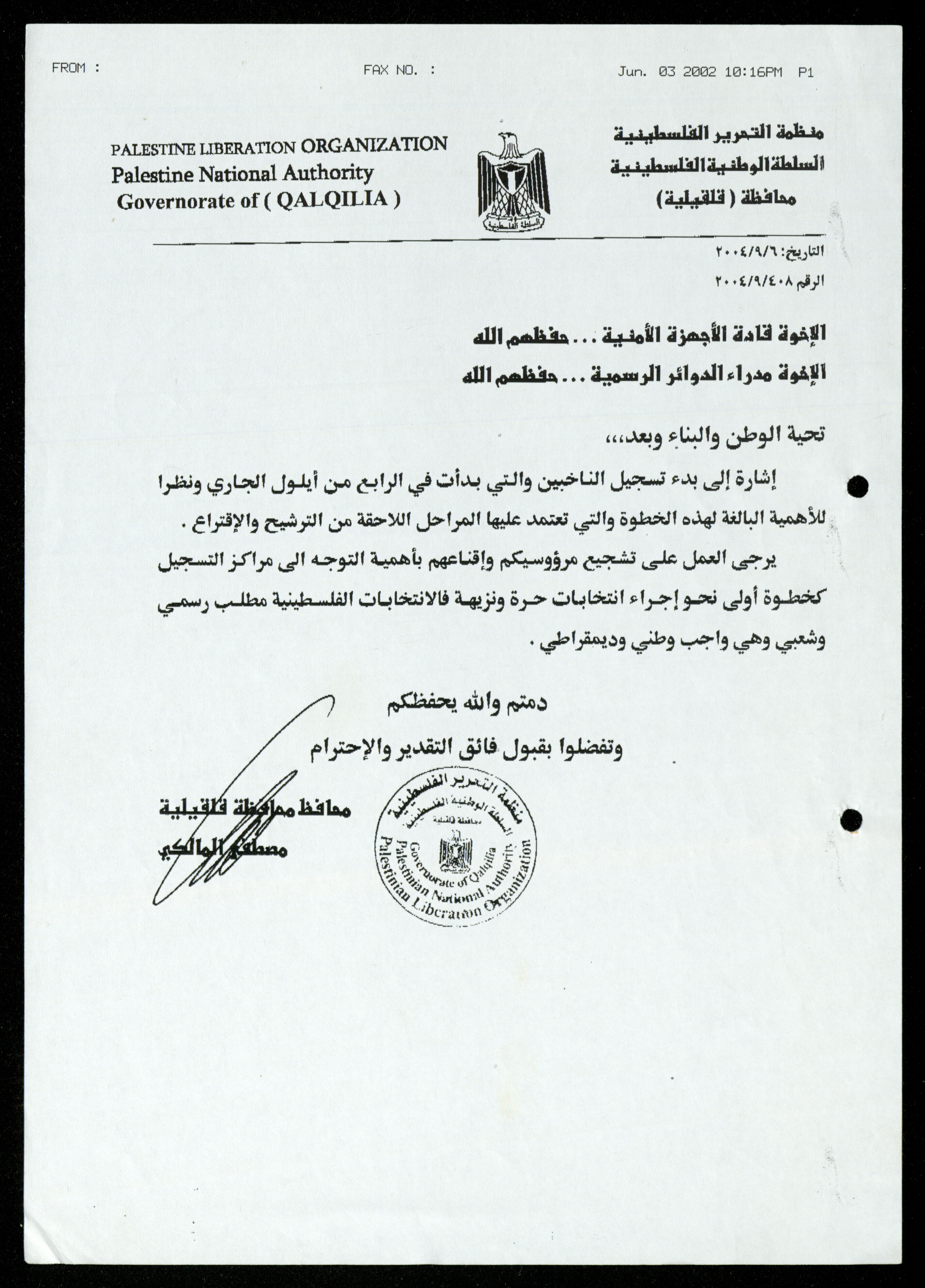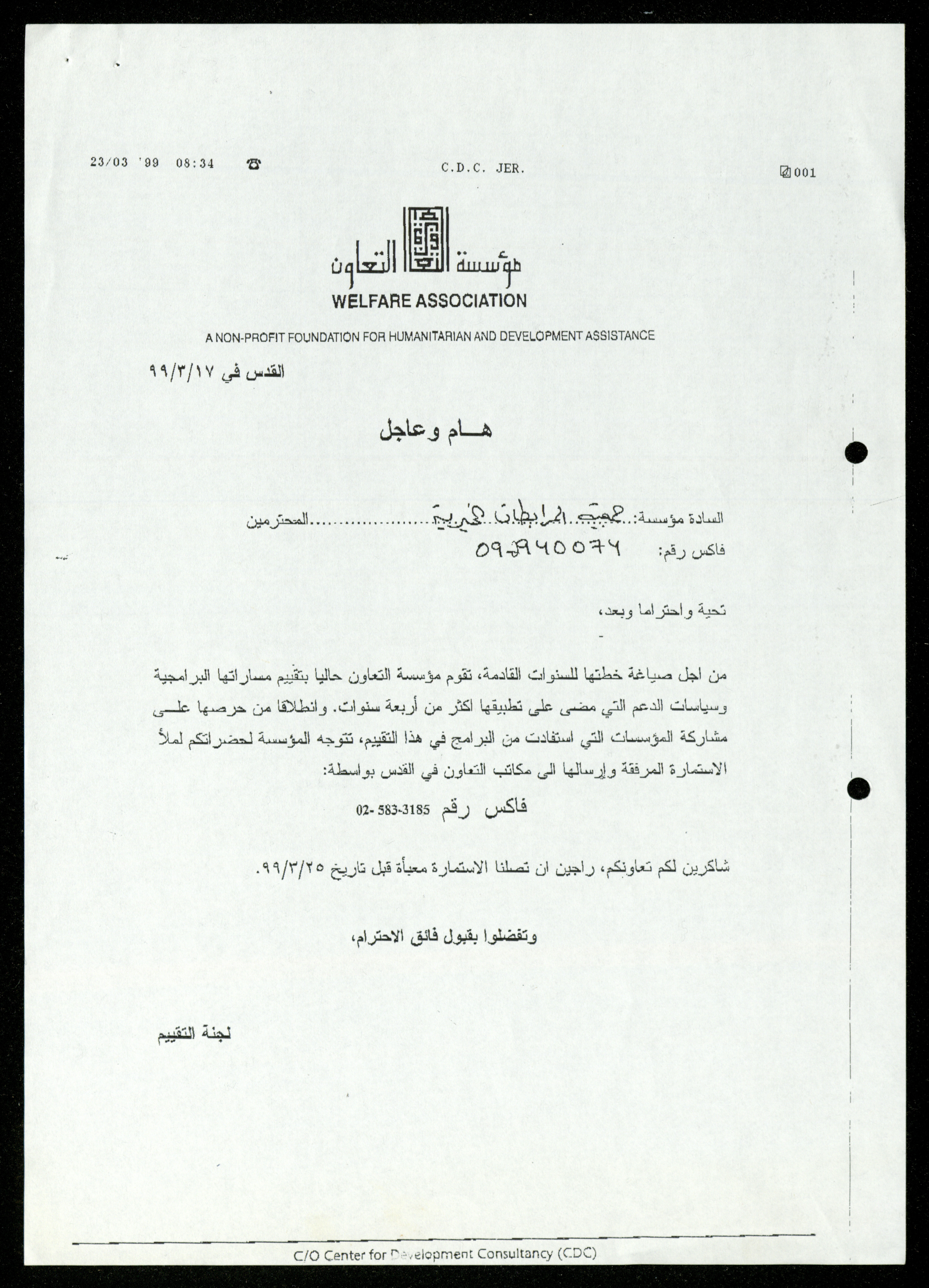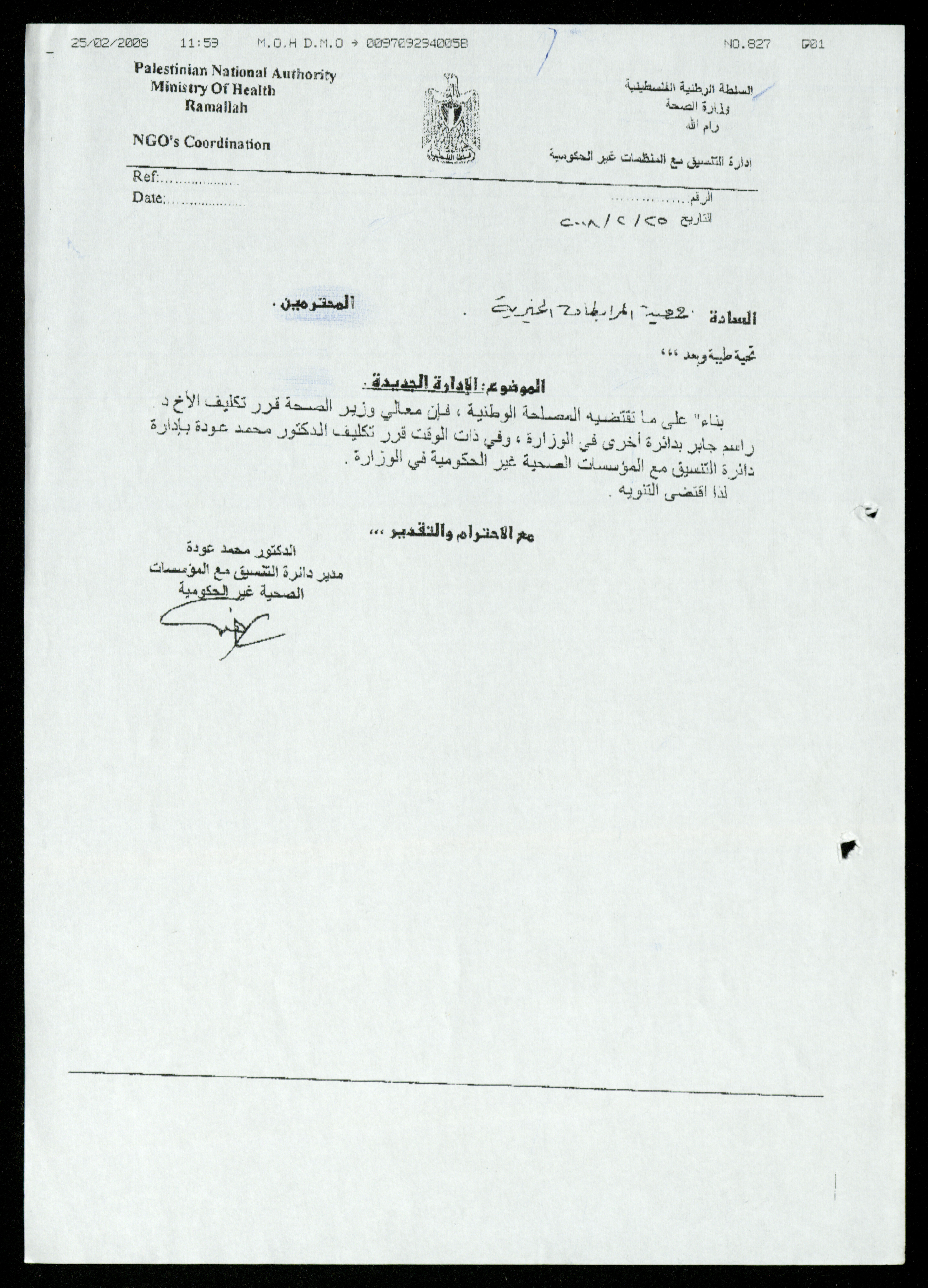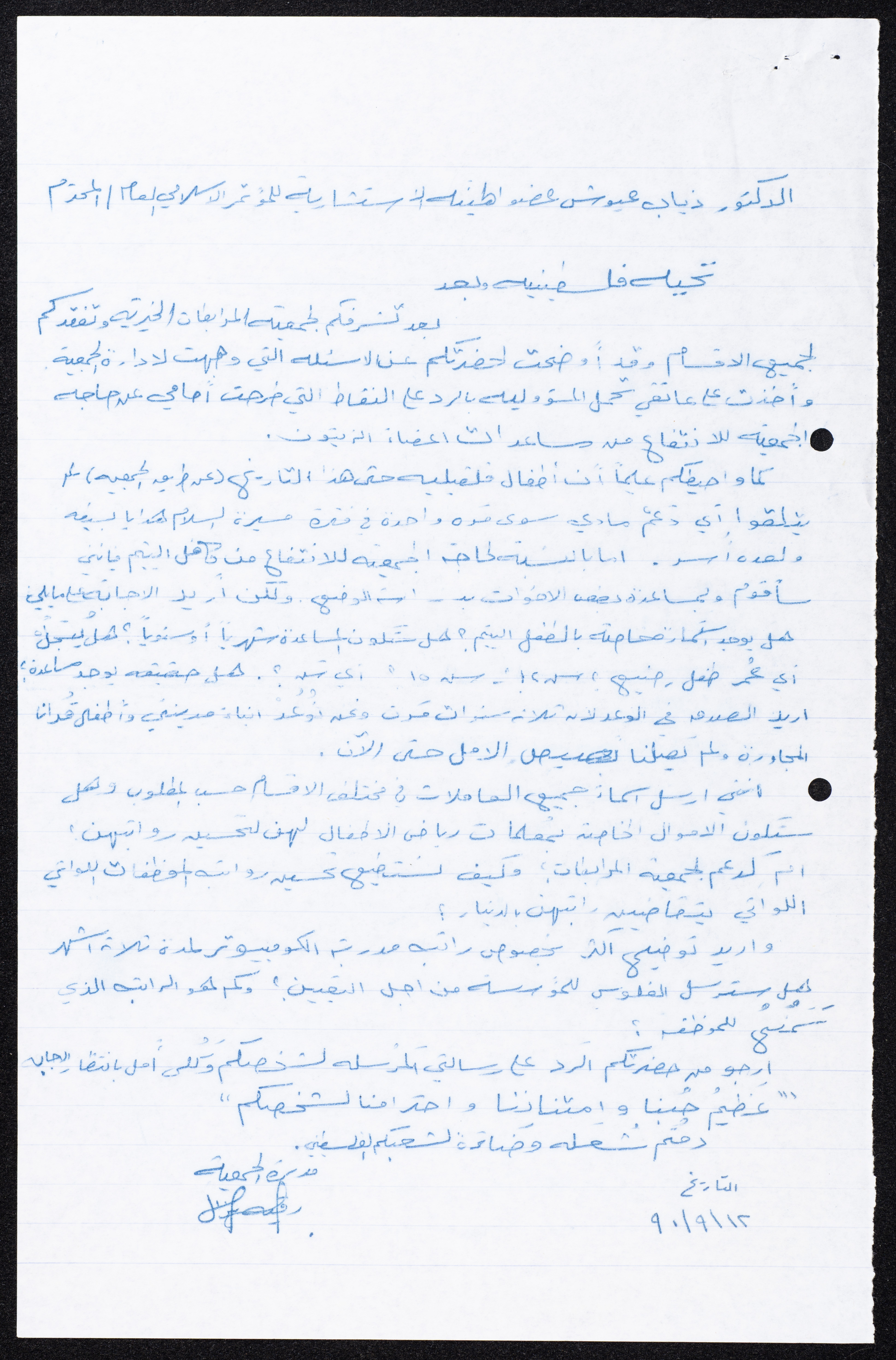 Correspondence File of al-Murabitat Charitable Society, Qalqilya, 1991-2008