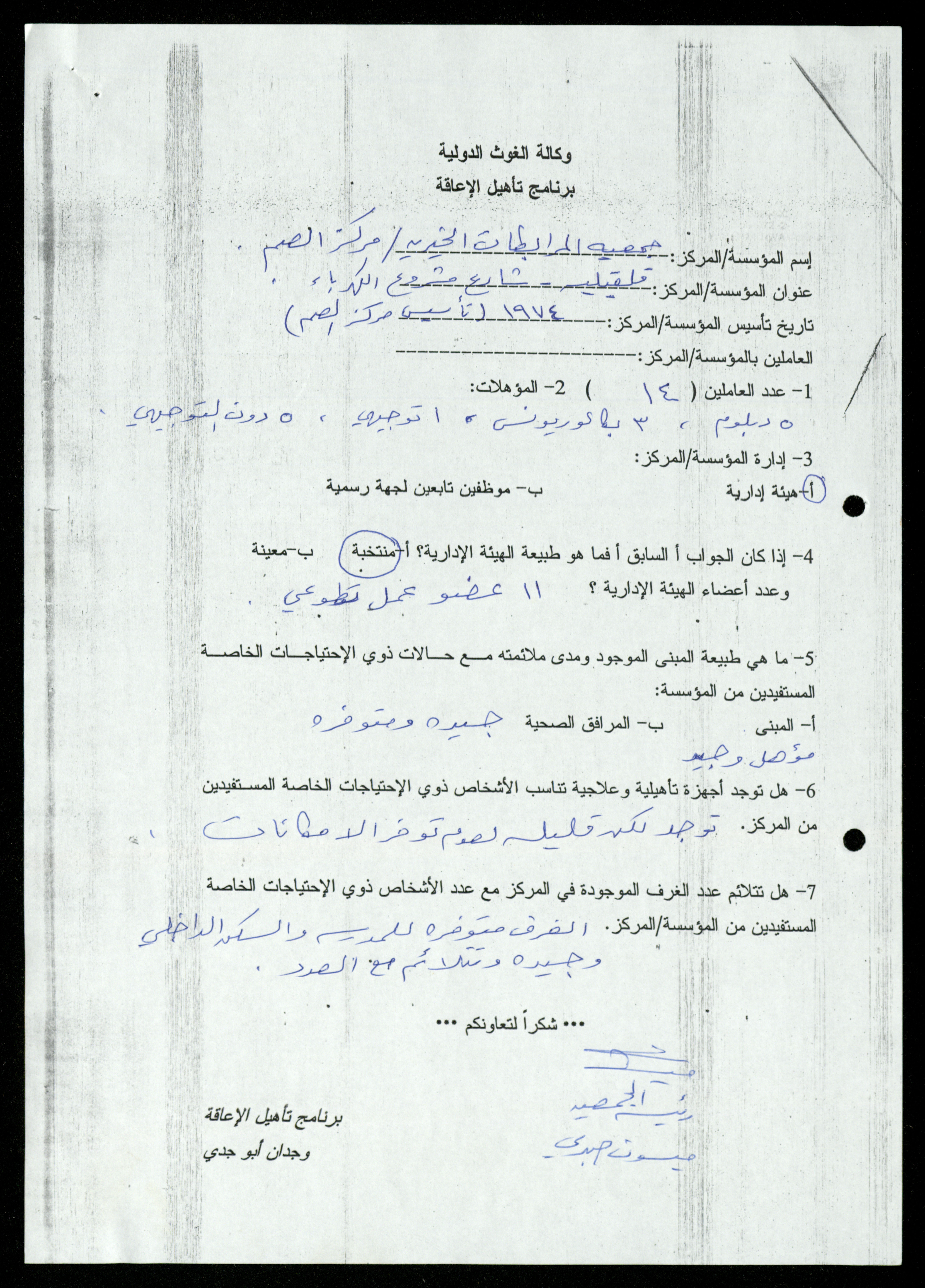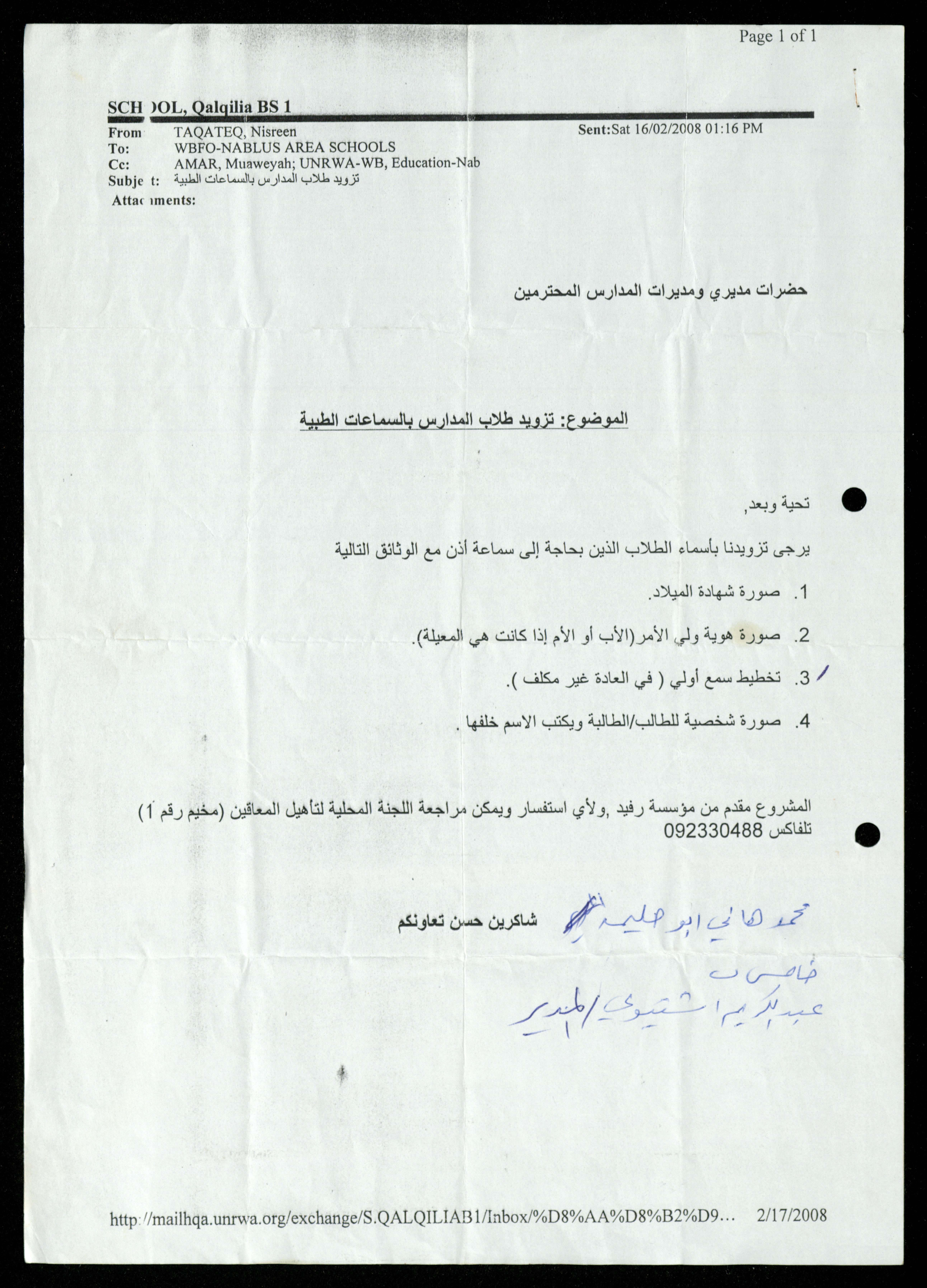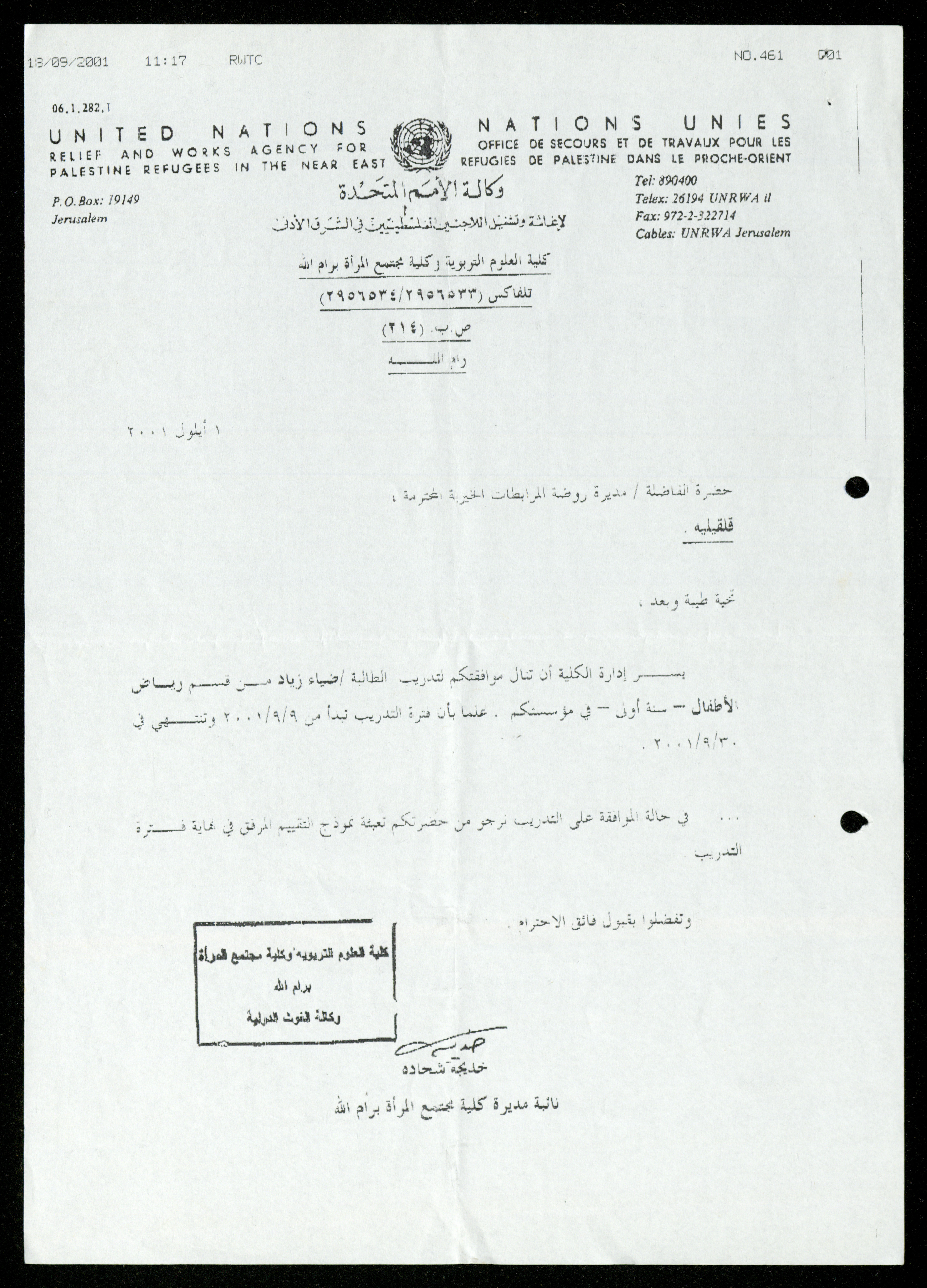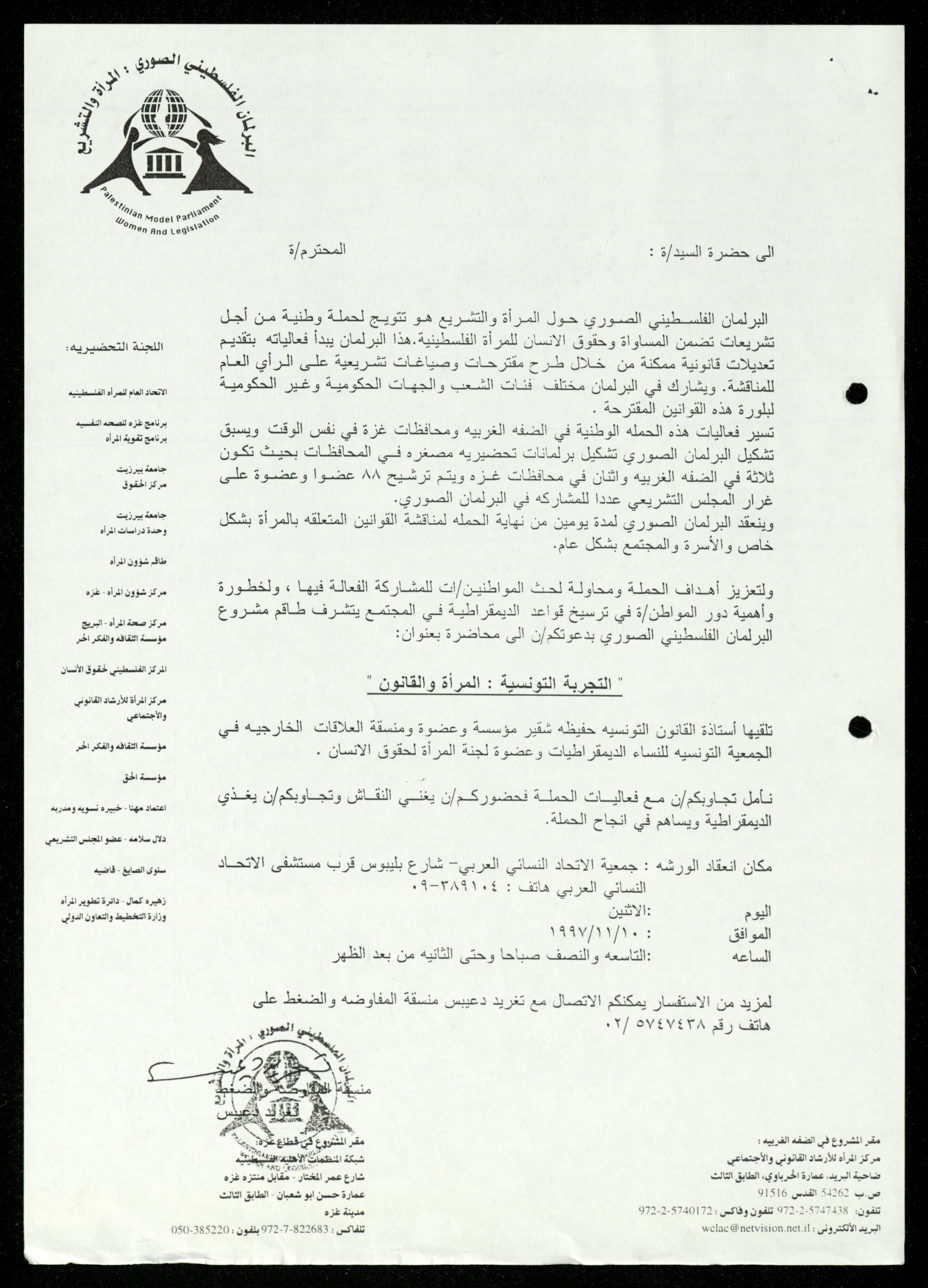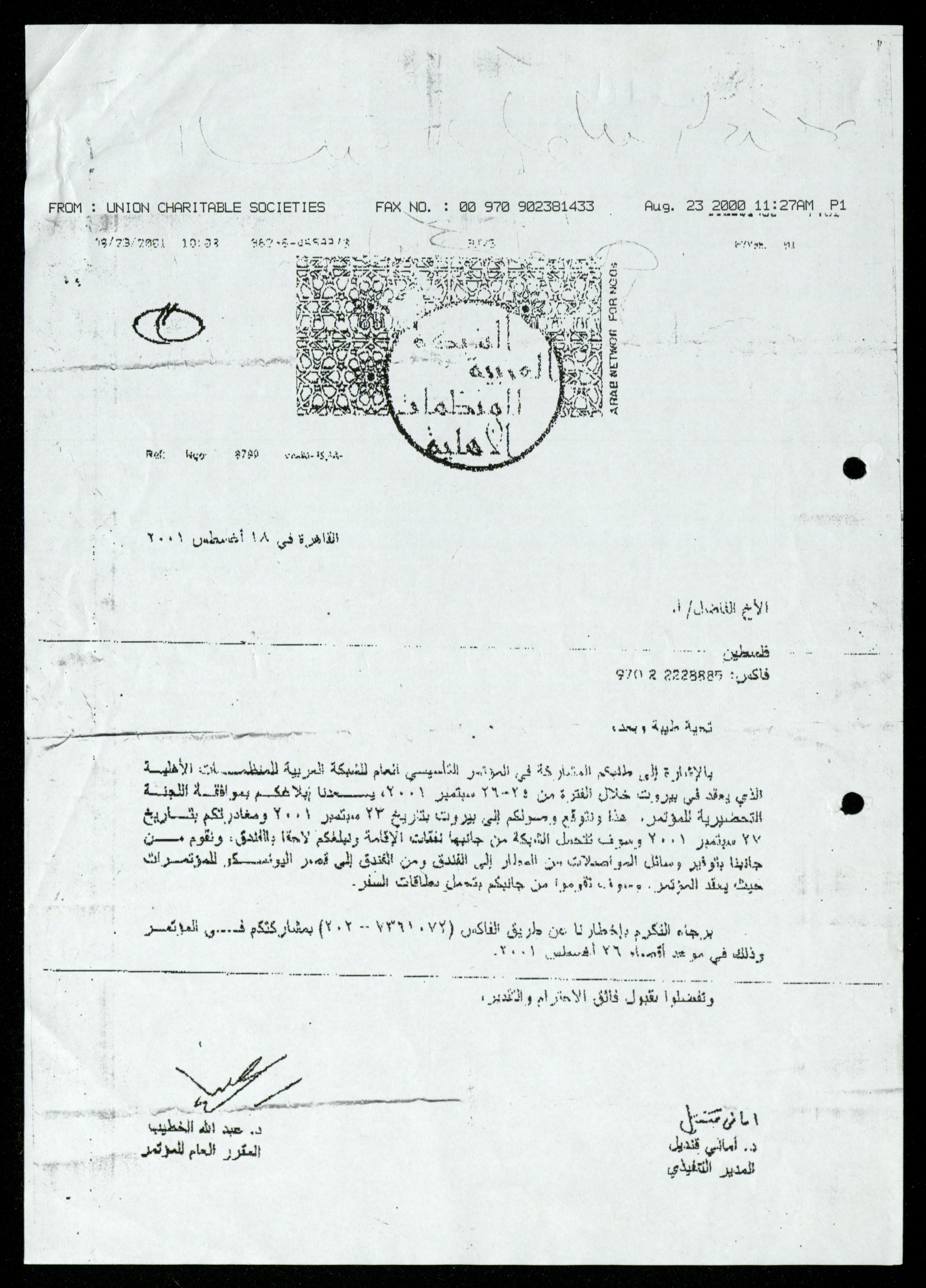 Correspondence File of al-Murabitat Charitable Society, Qalqilya, 1991-2008