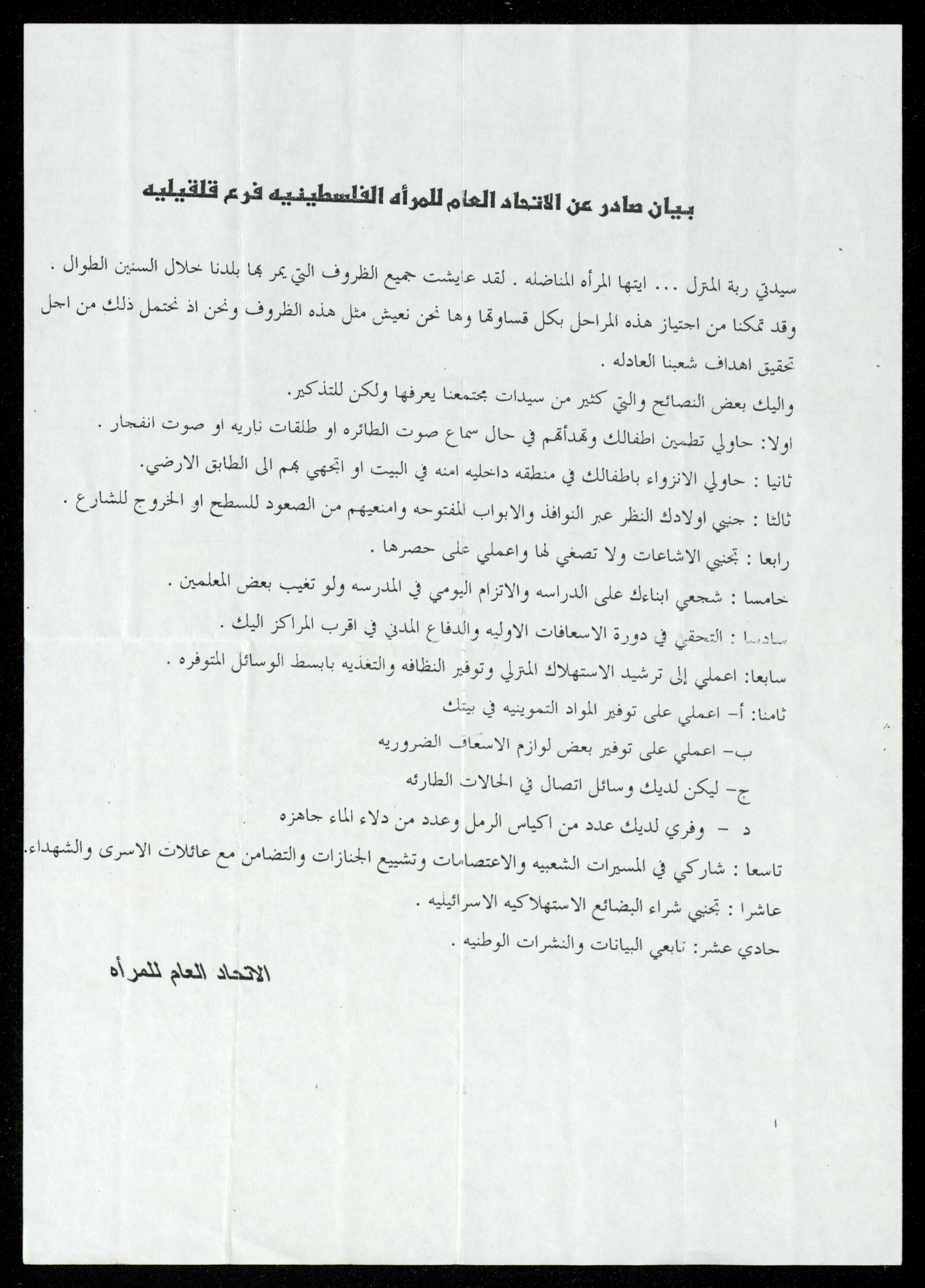 Ozrail, Samar. "The al-Murabitat Charitable Society-Qaqilya Collection". Archival Inventory. 22 January 2023. The Palestinian Museum Digital Archive.