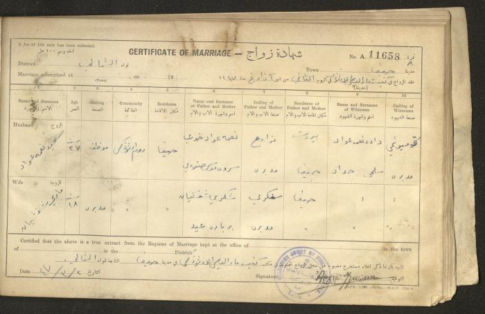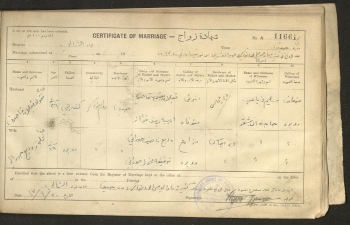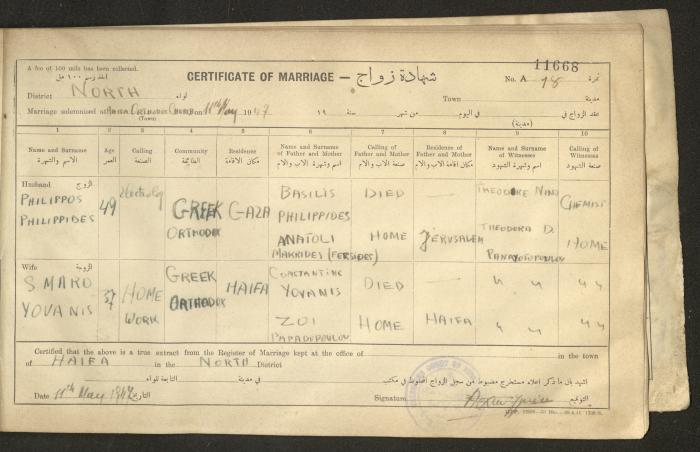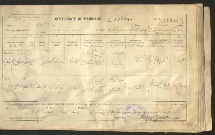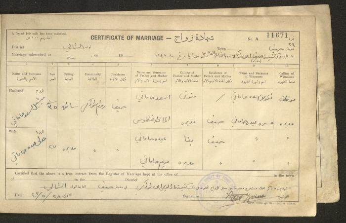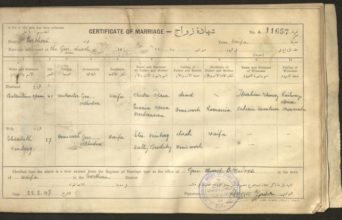 "Marriage Certificates", Haifa, 1947