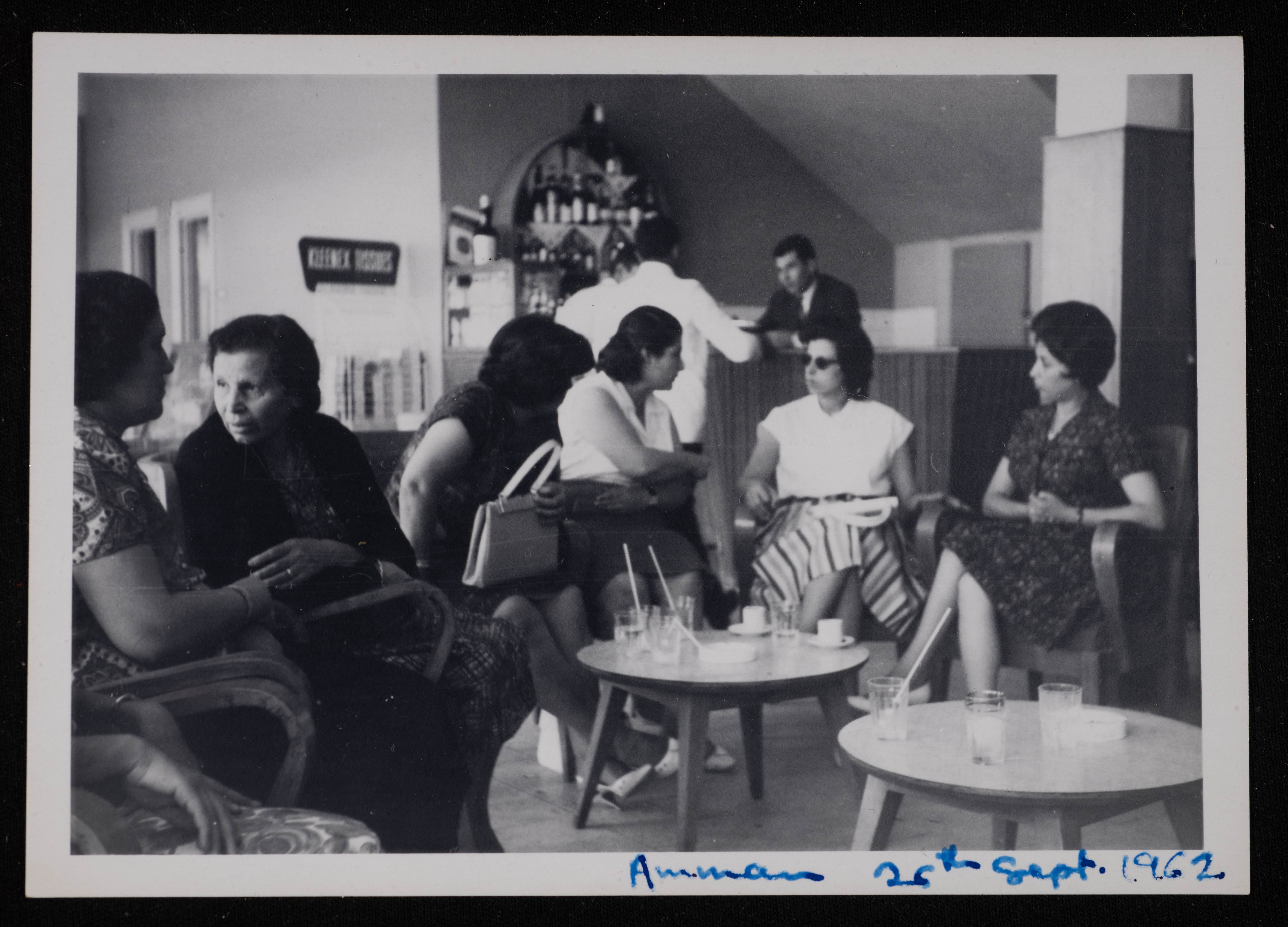 Taken on 26 September 1962, this photograph shows Nuha Batshon and her sisters with their mother after their displacement from Yafa to Amman.