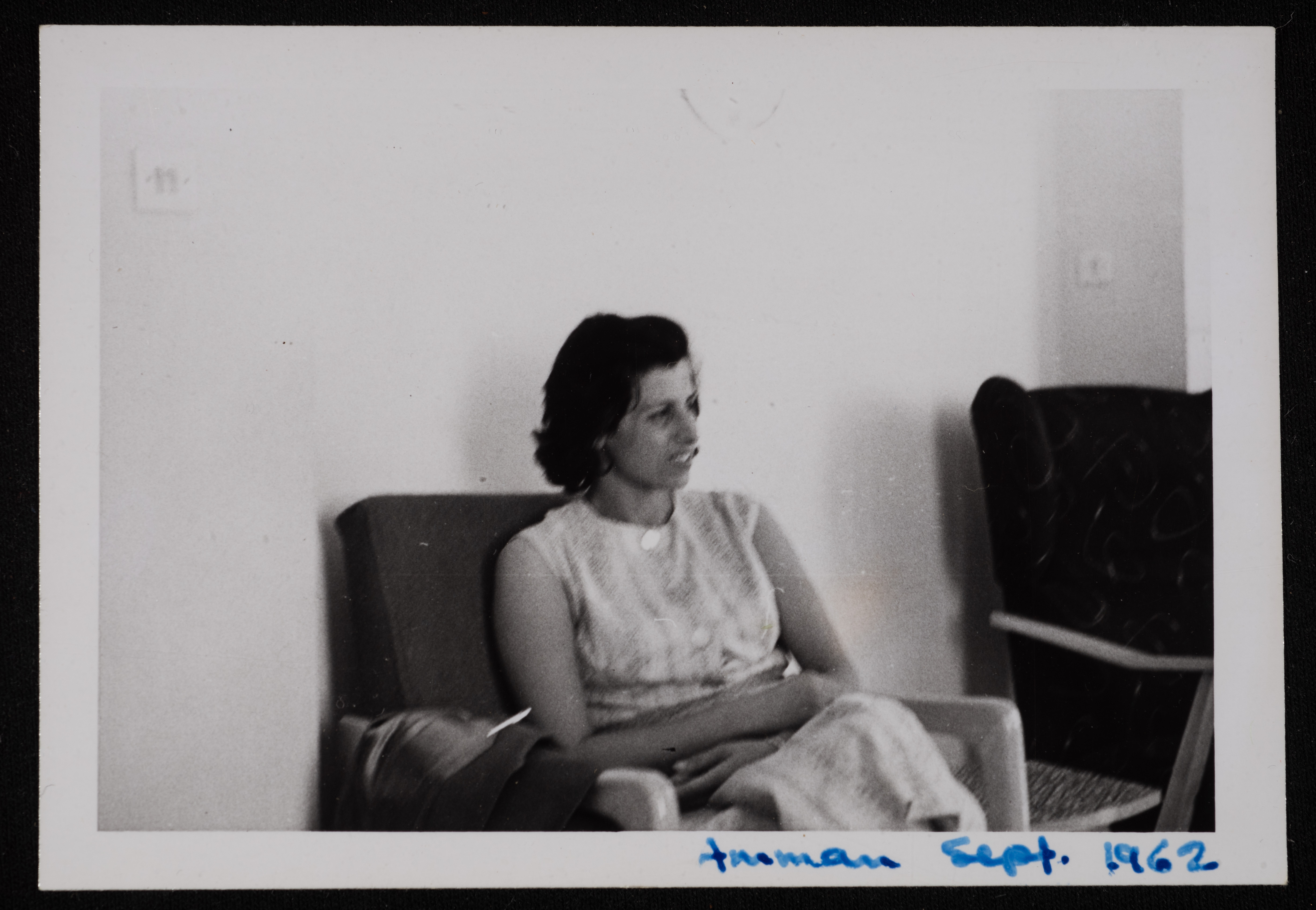 امرأة من عائلة بطشون في منزلها في عمان وذلك بعد هجرة العائلة من يافا التقطت في أيلول 1962.