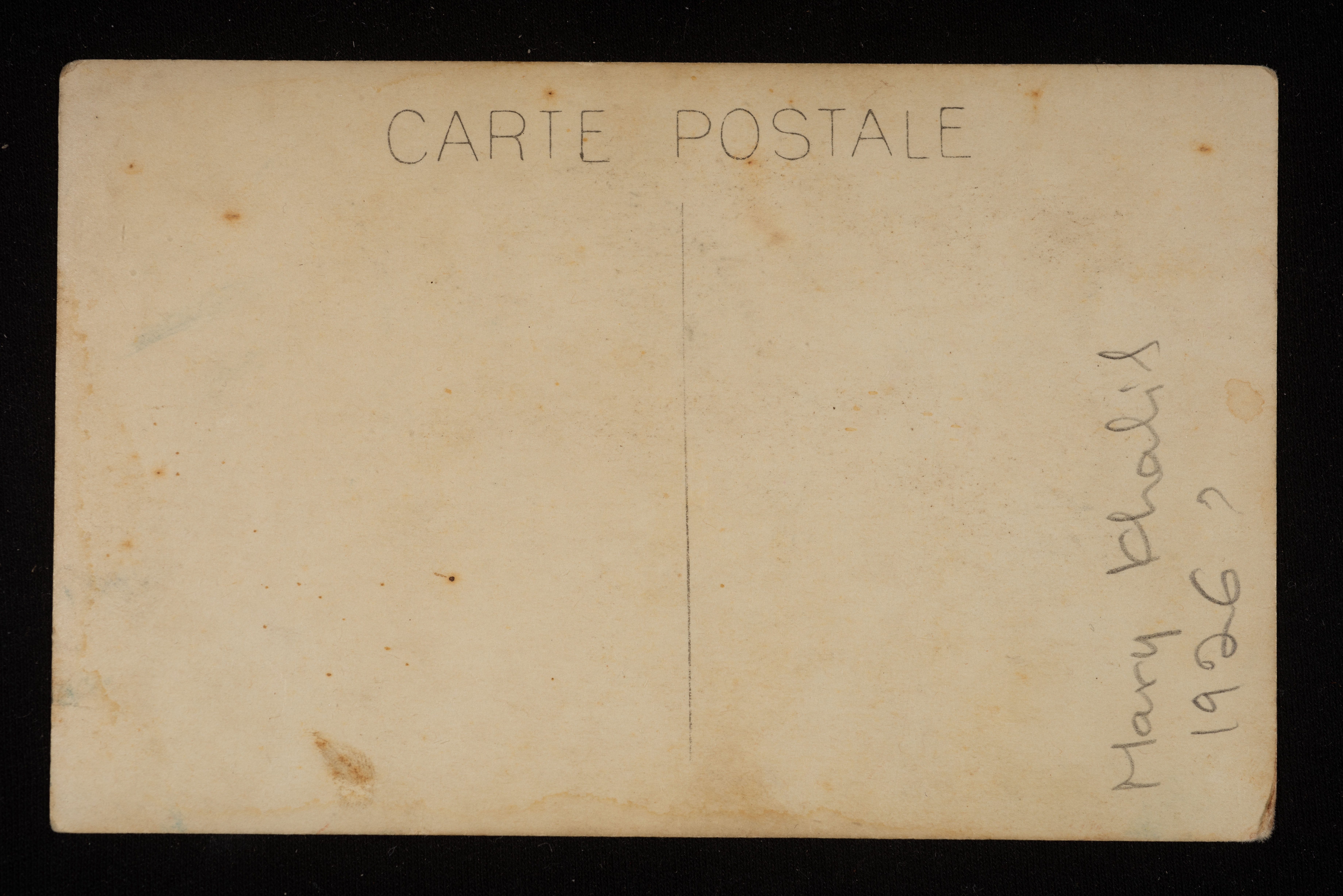 بطاقة بريدية تحتوي على صورة شخصية لأطفال داخل استوديو عُرف منهم ماري خليل، التقطت الصورة عام 1926.