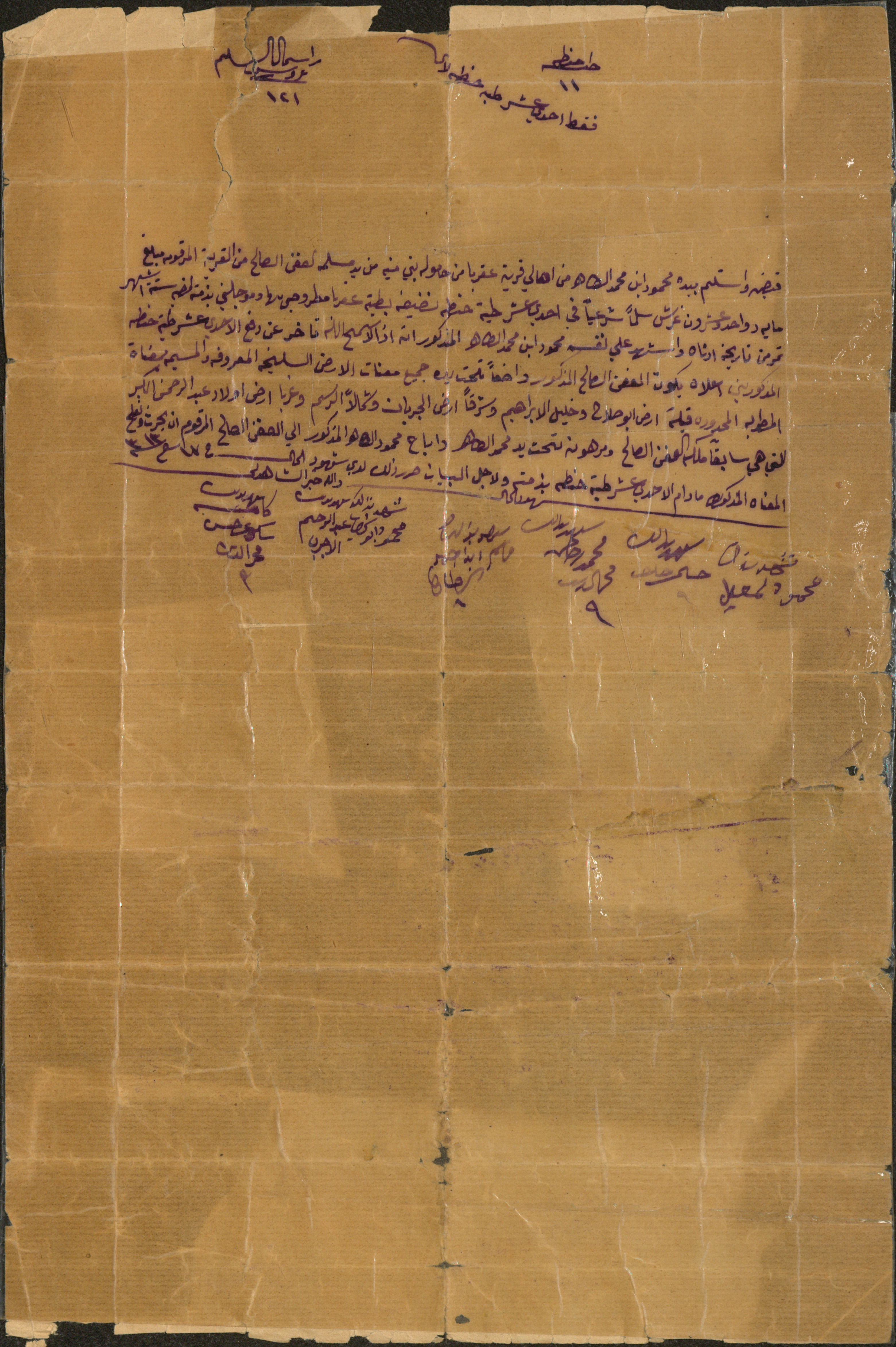 سند قبض لمحمد الصالح من قرية عقربا، حيث استلم من محمود محمد مبلغ 11 قرشاً.