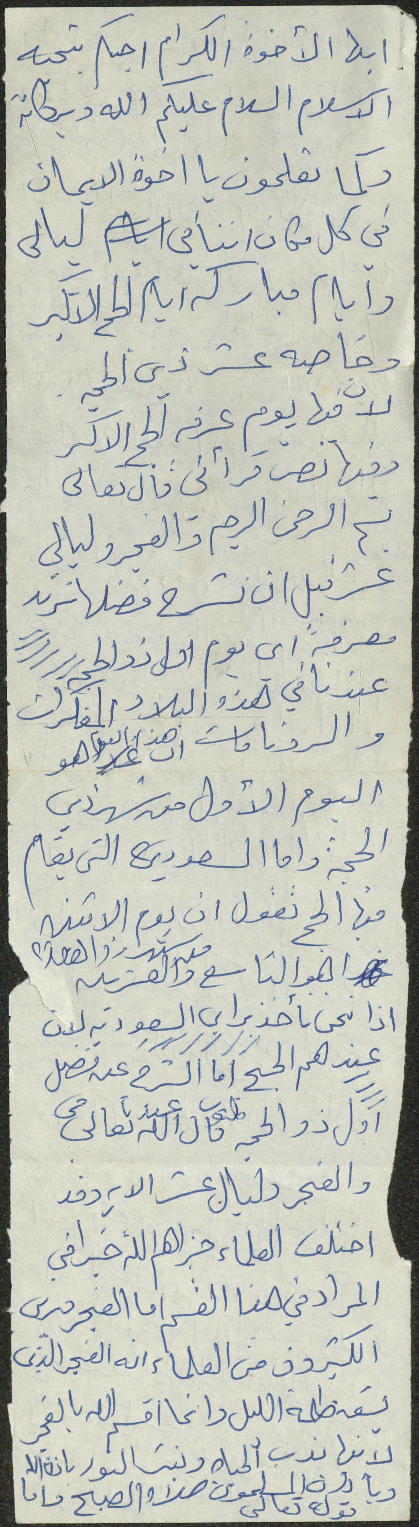 This document shows the text of a Friday Khutba by Sheikh Sa'adeh Hasan Theeb al-Marashdeh, the imam and khatib at Aqraba Mosque from 1962 to 2002, in which he talked about the Day of Arafah and the days of the Great Hajj.
