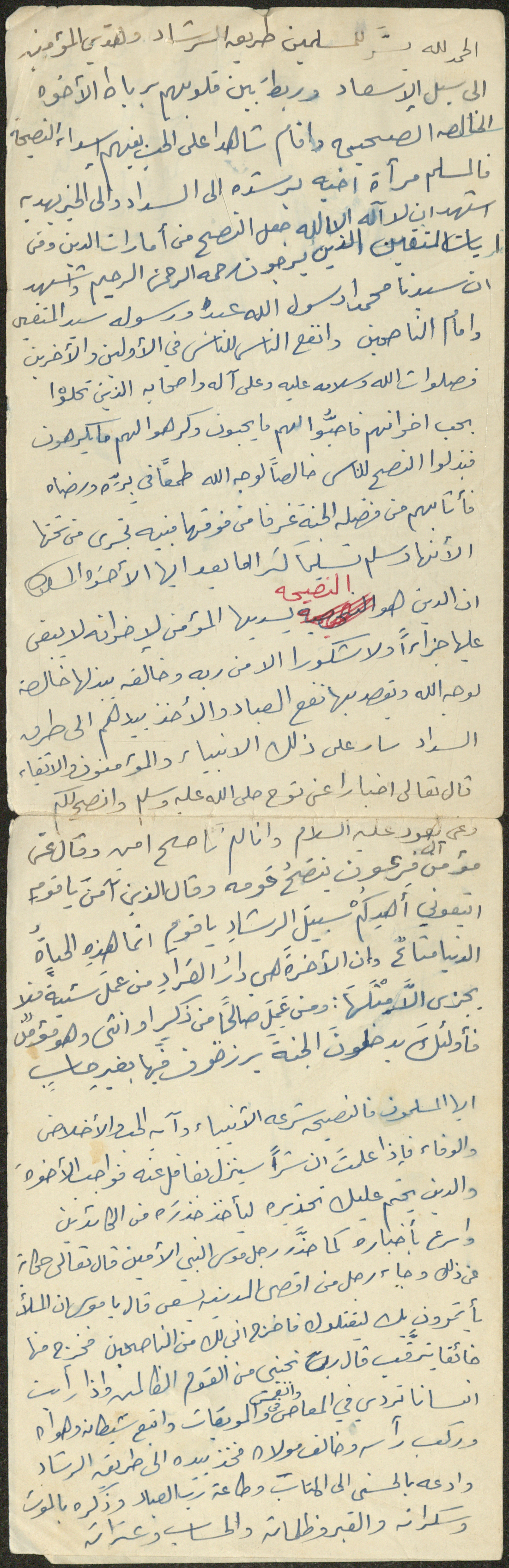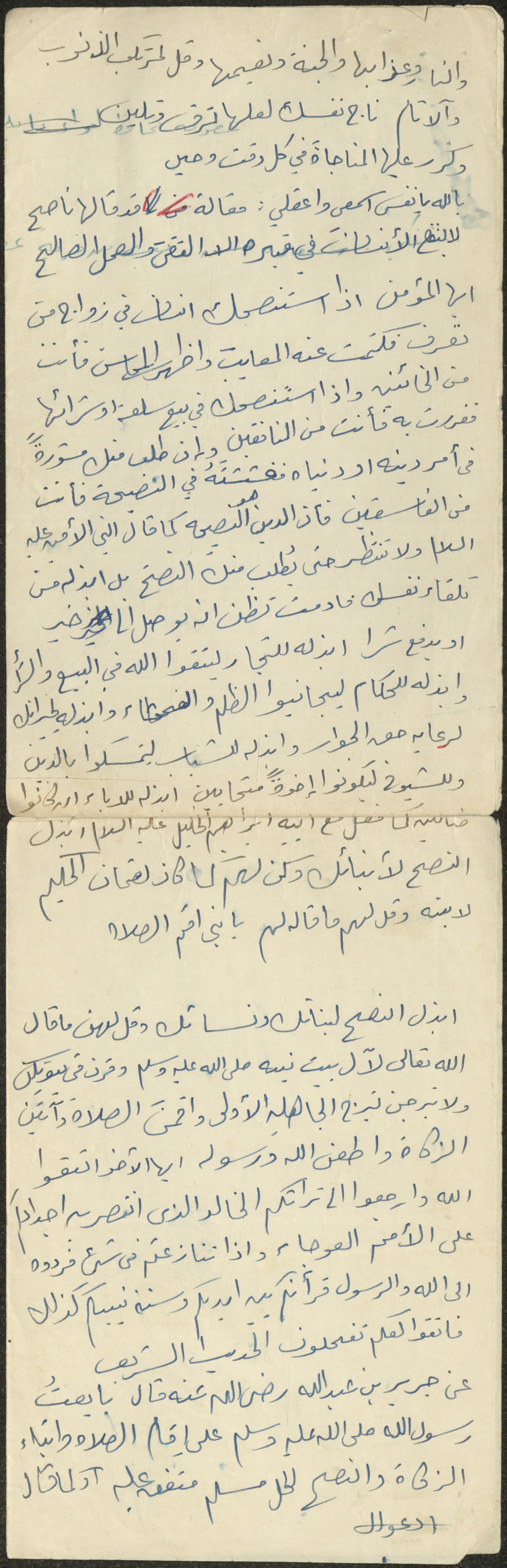 نص خطبة صلاة جمعة للشيخ سعادة حسن ذيب المراشدة، إمام وخطيب مسجد في قرية عقربا ما بين عامي 1962 و2002، تحدث خلالها عن رابطة الأخوة بين المسلمين.
