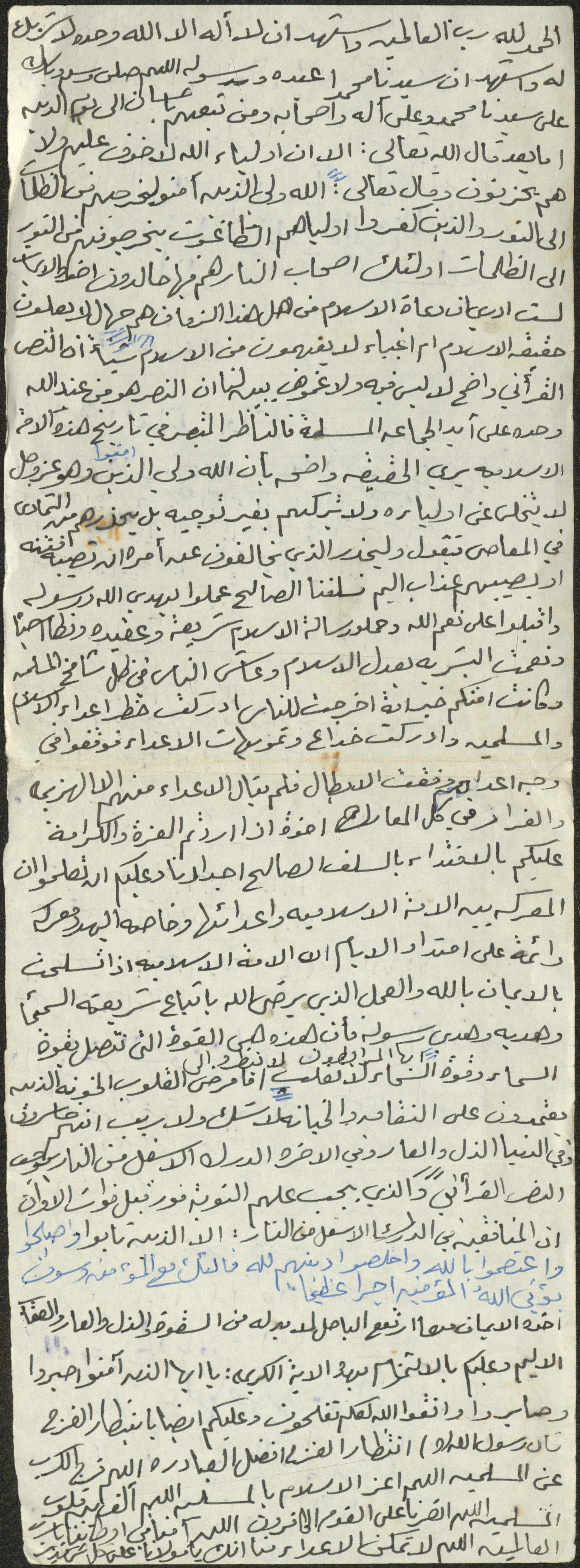 نص خطبة صلاة جمعة للشيخ سعادة حسن ذيب المراشدة، إمام وخطيب مسجد في قرية عقربا ما بين عامي 1962 و2002، تحدث خلالها عن أجر أولياء الله وعاقبة المكذبين.