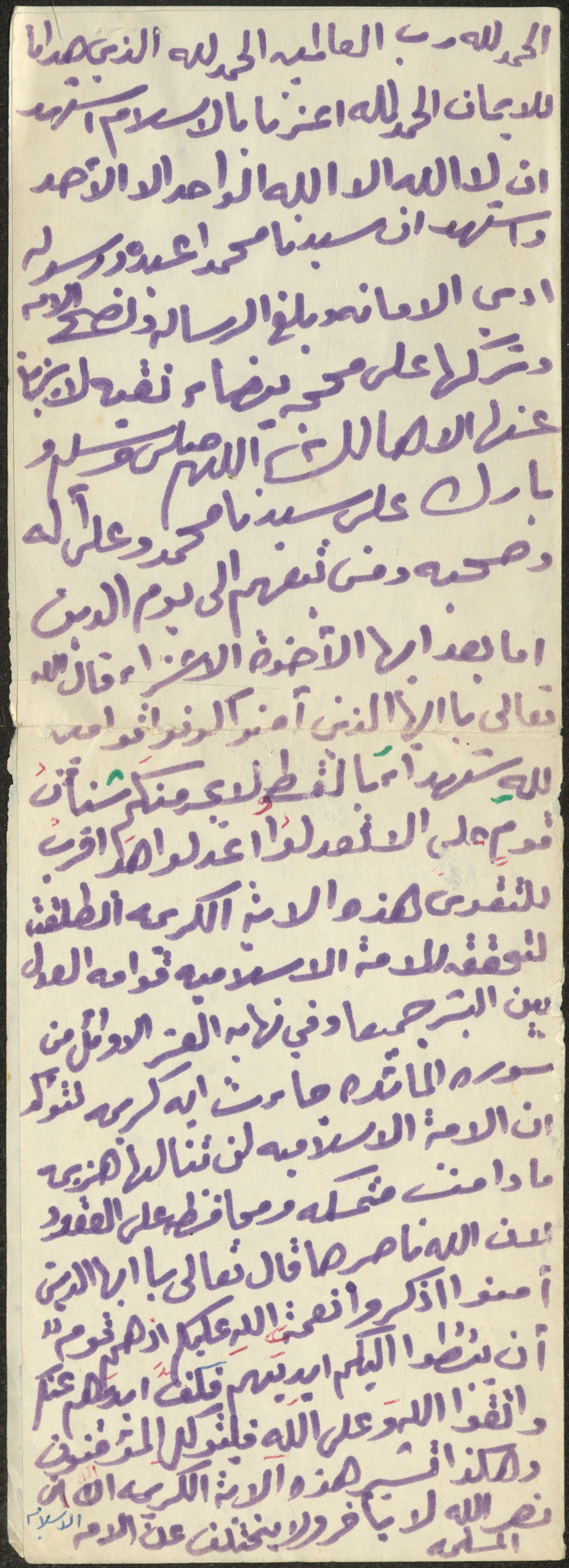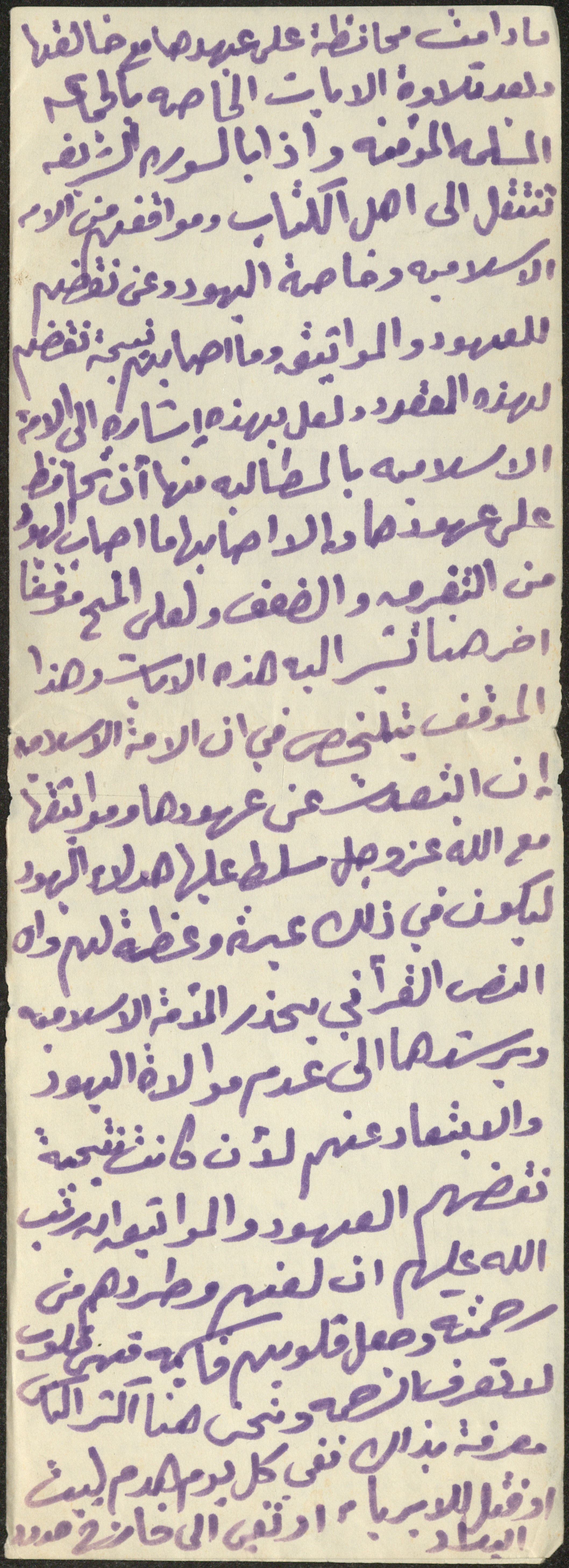 نص خطبة صلاة جمعة للشيخ سعادة حسن ذيب المراشدة، إمام وخطيب مسجد في قرية عقربا ما بين عامي 1962 و2002، أكد خلالها أن الأمة الإسلامية لن تنالها هزيمة ما دامت محافظة على عهدها مع الله.