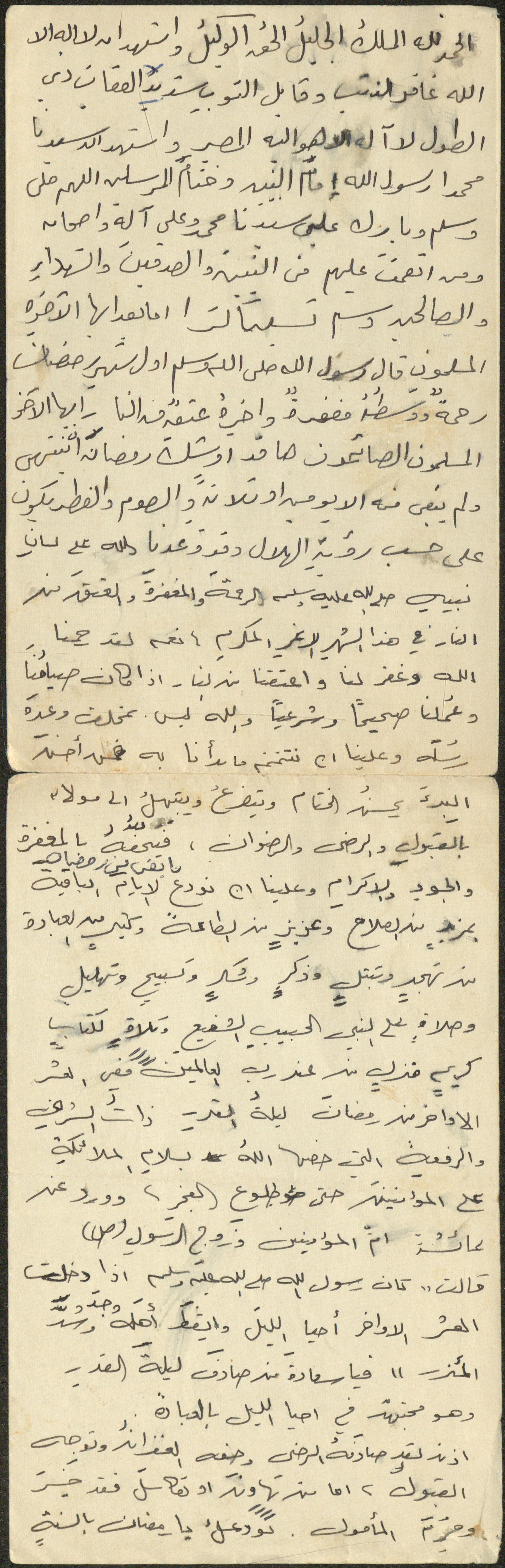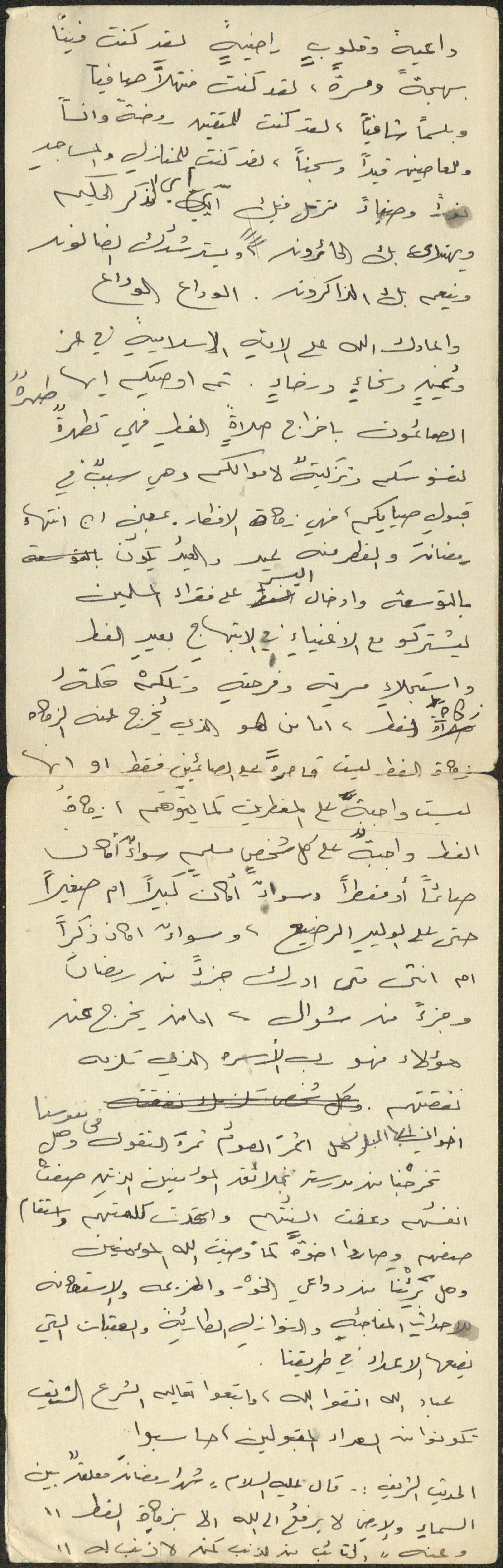 نص خطبة صلاة جمعة للشيخ سعادة حسن ذيب المراشدة، إمام وخطيب مسجد في قرية عقربا ما بين عامي 1962 و2002، أكد خلالها على فضائل شهر رمضان.