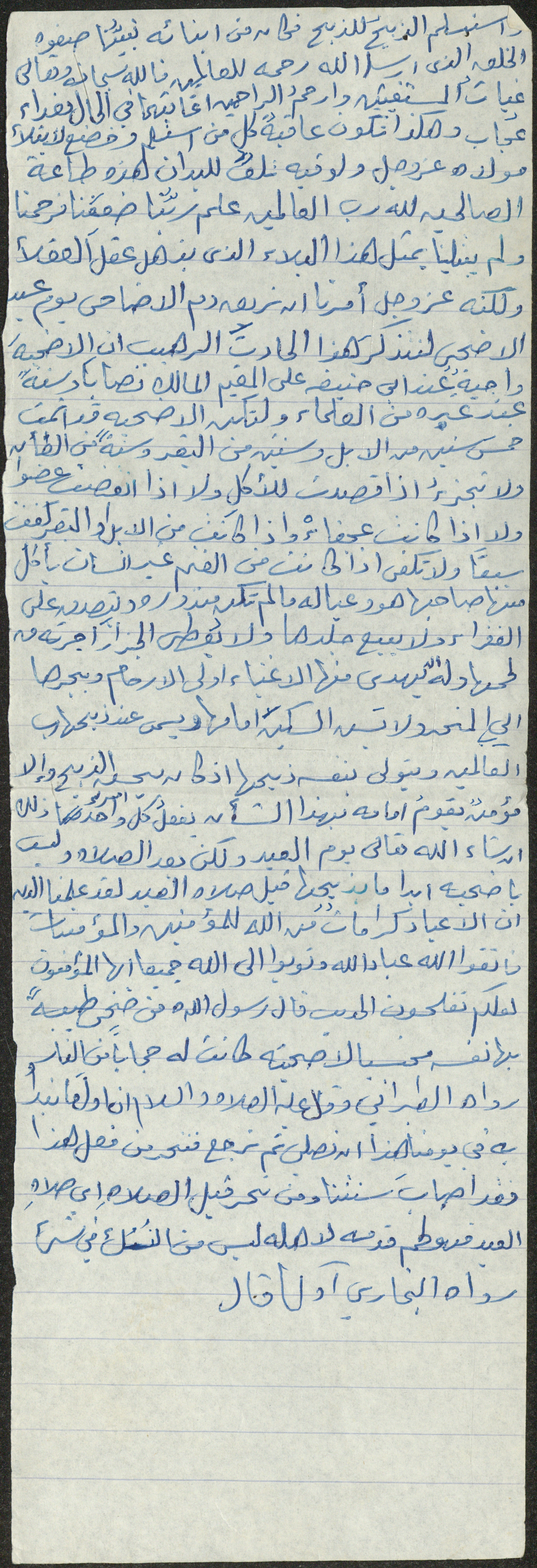 نص خطبة صلاة جمعة للشيخ سعادة حسن ذيب المراشدة، إمام وخطيب مسجد في قرية عقربا ما بين عامي 1962 و2002، أكد خلالها على ثواب أداء فريضة الحج وشروطها.