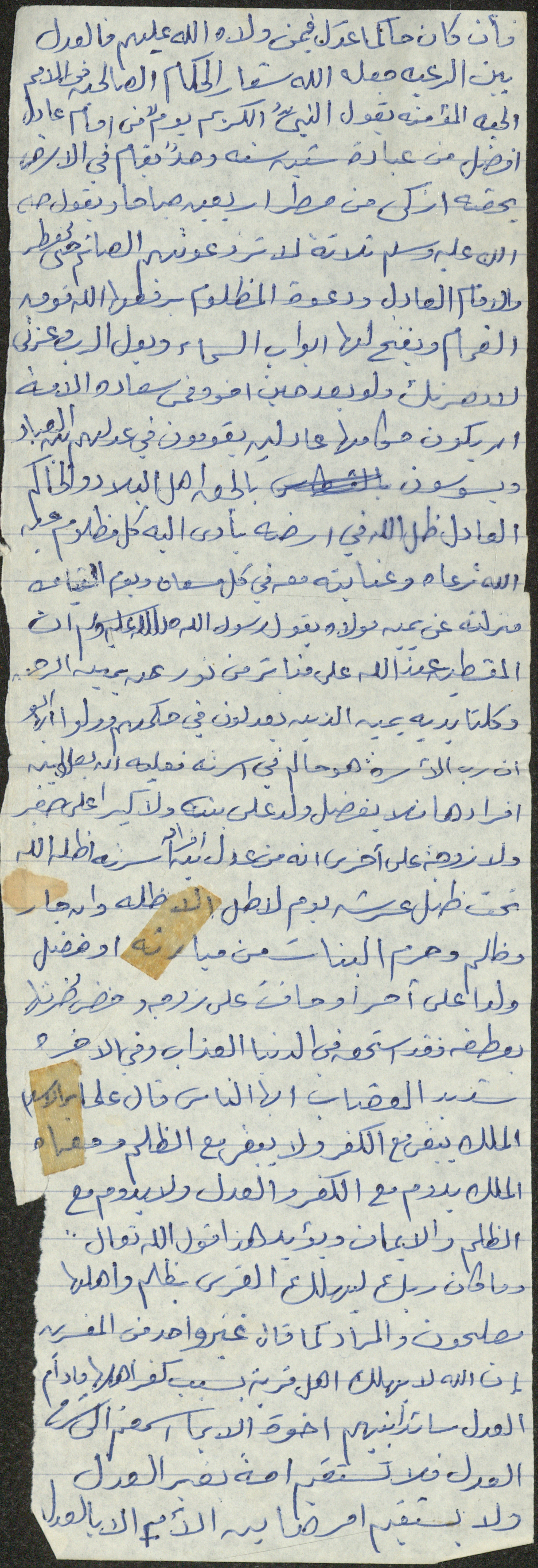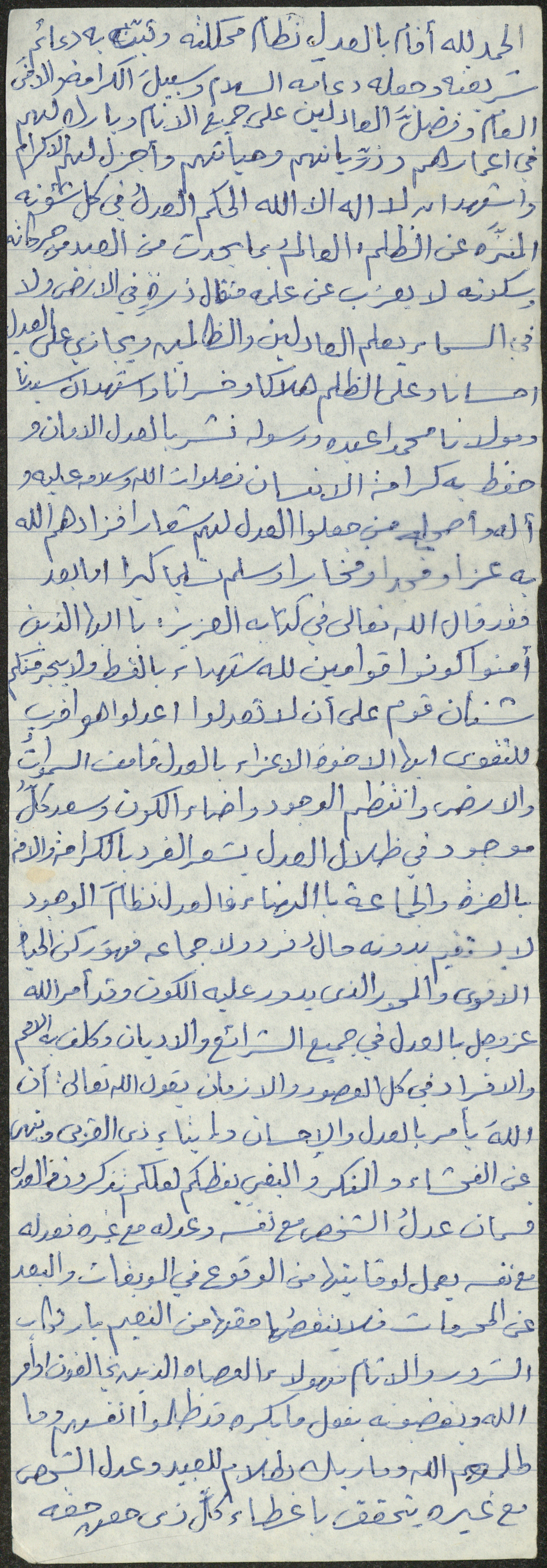 نص خطبة صلاة جمعة للشيخ سعادة حسن ذيب المراشدة، إمام وخطيب مسجد في قرية عقربا ما بين عامي 1962 و2002، تحدث فيها عن عدل الله مع عباده المؤمنين.