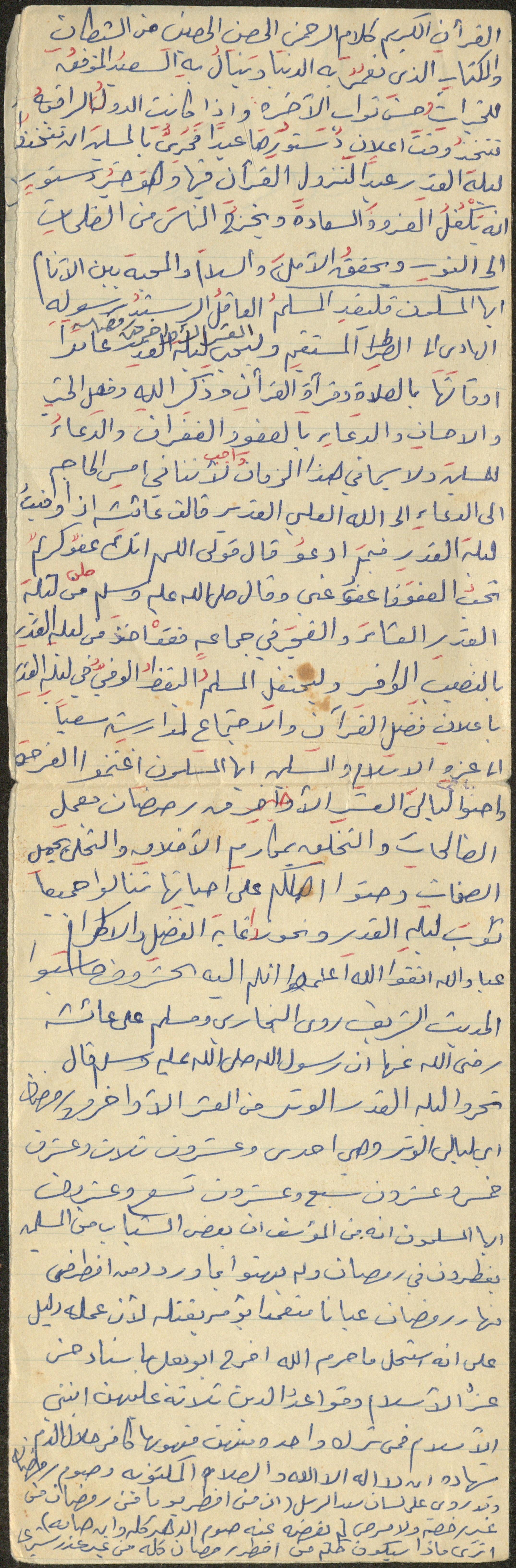 نص خطبة صلاة جمعة للشيخ سعادة حسن ذيب المراشدة، إمام وخطيب مسجد في قرية عقربا ما بين عامي 1962 و2002، تحدث فيها عن مكانة ليلة القدر.